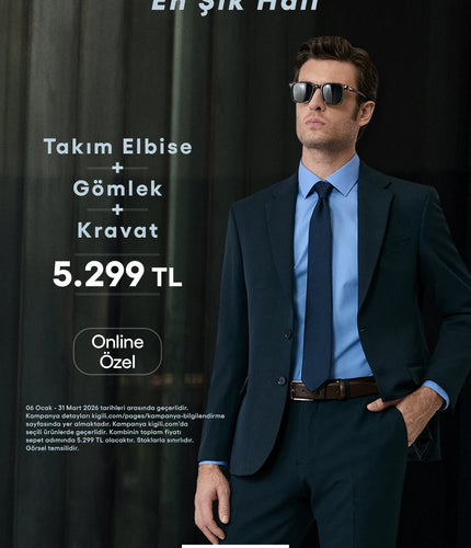 Kiğılı, birbirinden şık takım elbise modelleri ile her ortamda stilinizi sergilemenize olanak tanıyor. Klasik çizgisinden uzaklaşmak istemeyenler Kiğılı’nın klasik takım elbise tasarımlarından vazgeçmiyor. Daha sportif bir tarza sahipseniz slim fit takım elbise modelleri tam size göre. Slim fit takım elbise modellerini; dar kesim gömlek, uyumlu kravat ve yaka mendili ile tamamlayarak bulunduğunuz her ortamda tüm gözleri üzerinize çekebilirsiniz. Takım elbise kategorisi altında klasik ve slim fit takım elbiselerin yanı sıra spor takım elbise, yelekli takım elbise, smokin & damatlık, kruvaze takım elbise ve king size takım elbise modelleri de sizi bekliyor.