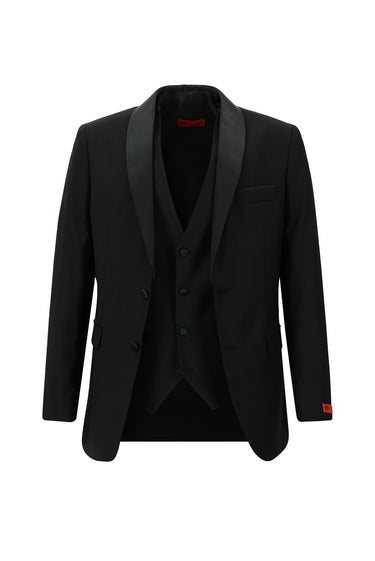 Siyah Slim Fit Dar Kesim Şal Yaka Yelekli Smokin & Damatlık