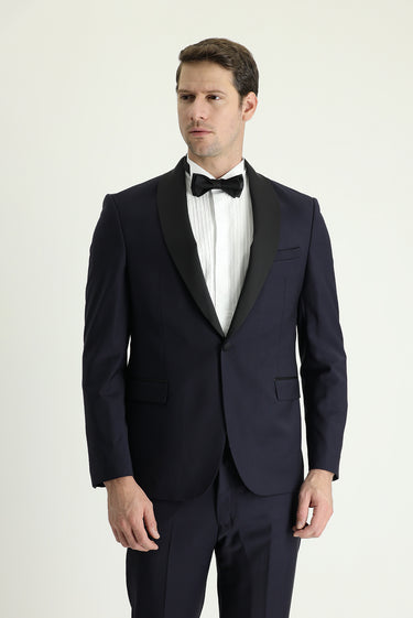 Koyu Lacivert Slim Fit Dar Kesim Şal Yaka Smokin & Damatlık