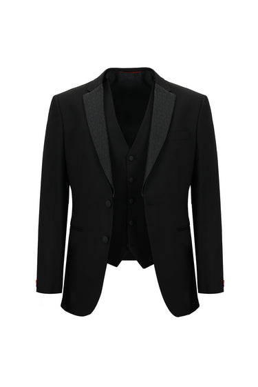 Siyah Slim Fit Dar Kesim Sivri Yaka Yelekli Smokin & Damatlık