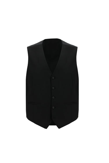 Siyah Slim Fit Dar Kesim Mono Yaka Yelekli Smokin & Damatlık