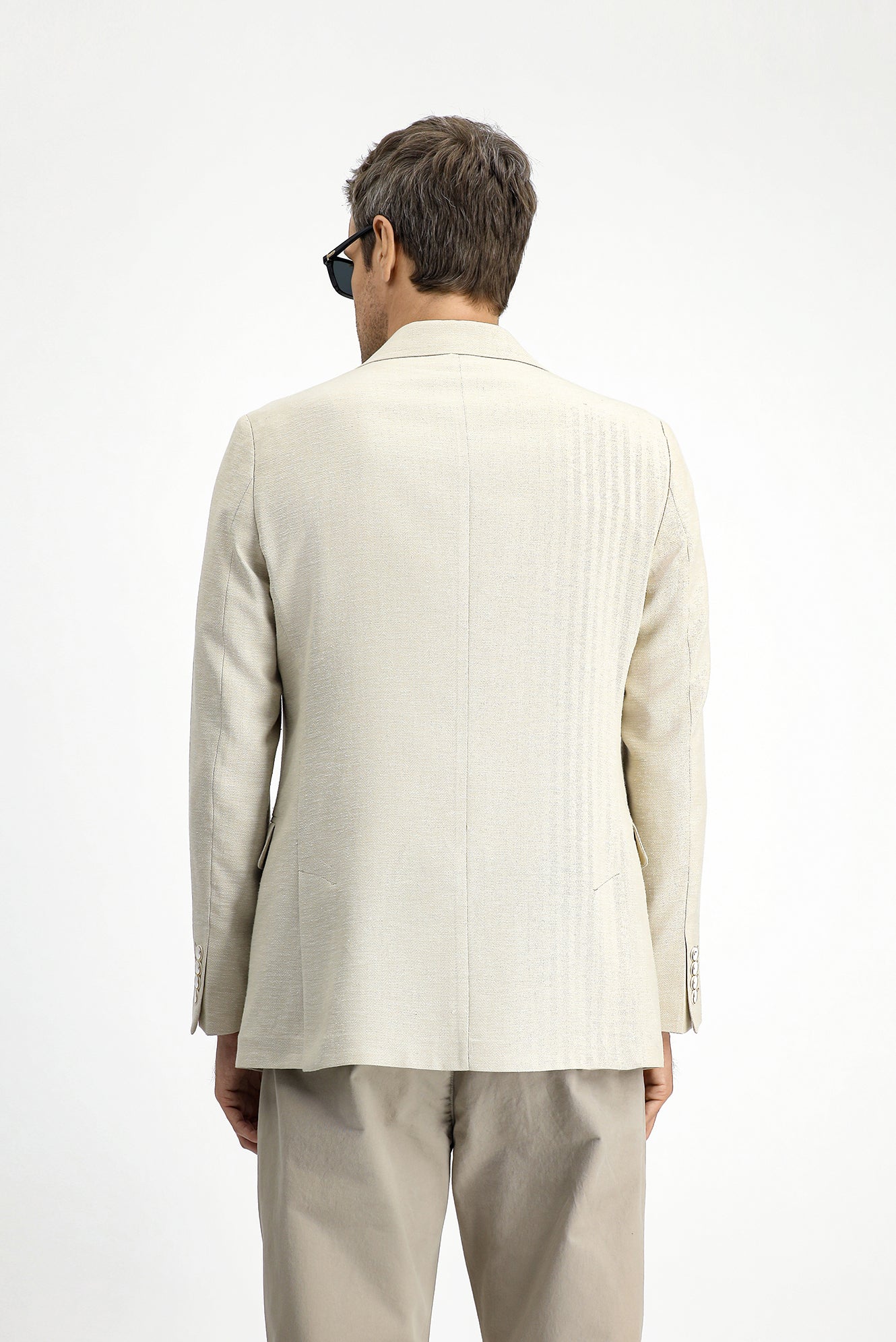 Light Beige 4-Drop Relaxed Fit Classic Patterned Linen Blend Jacket