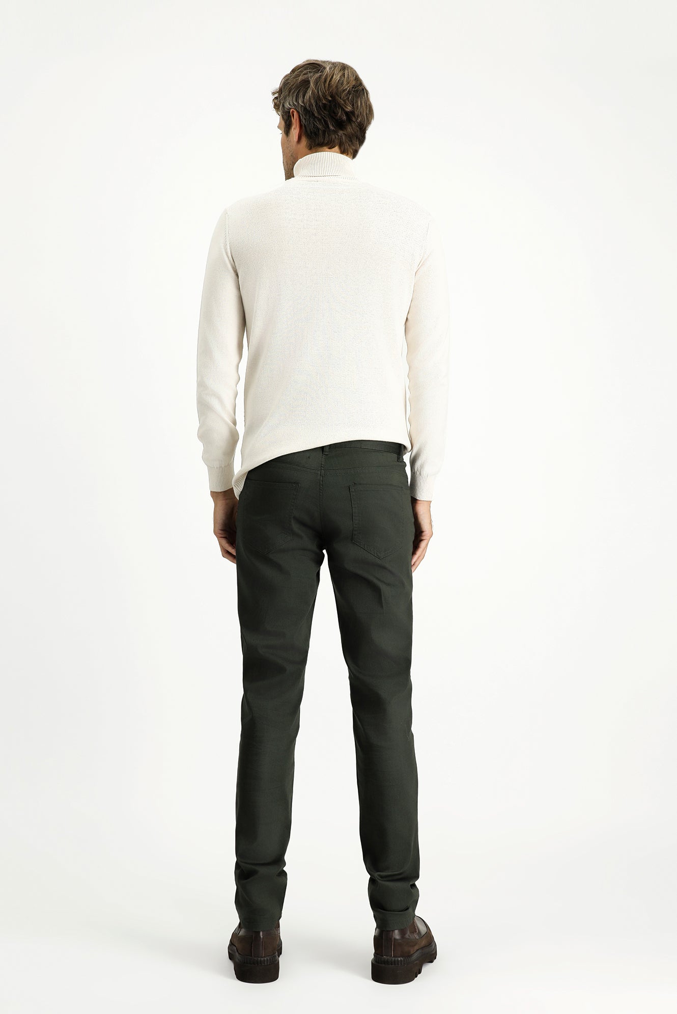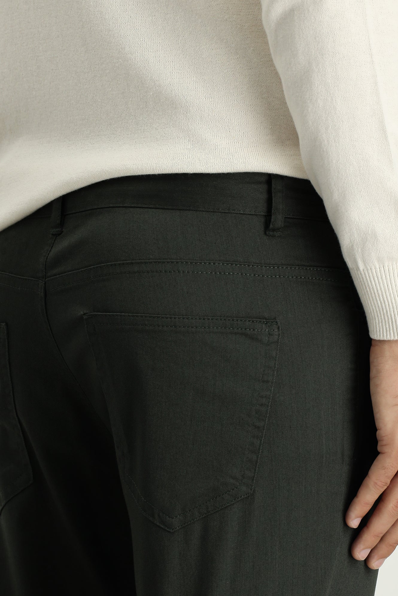 Dark Khaki 7 Drop Slim Fit Narrow Cut Lycra Canvas / Chino Pants