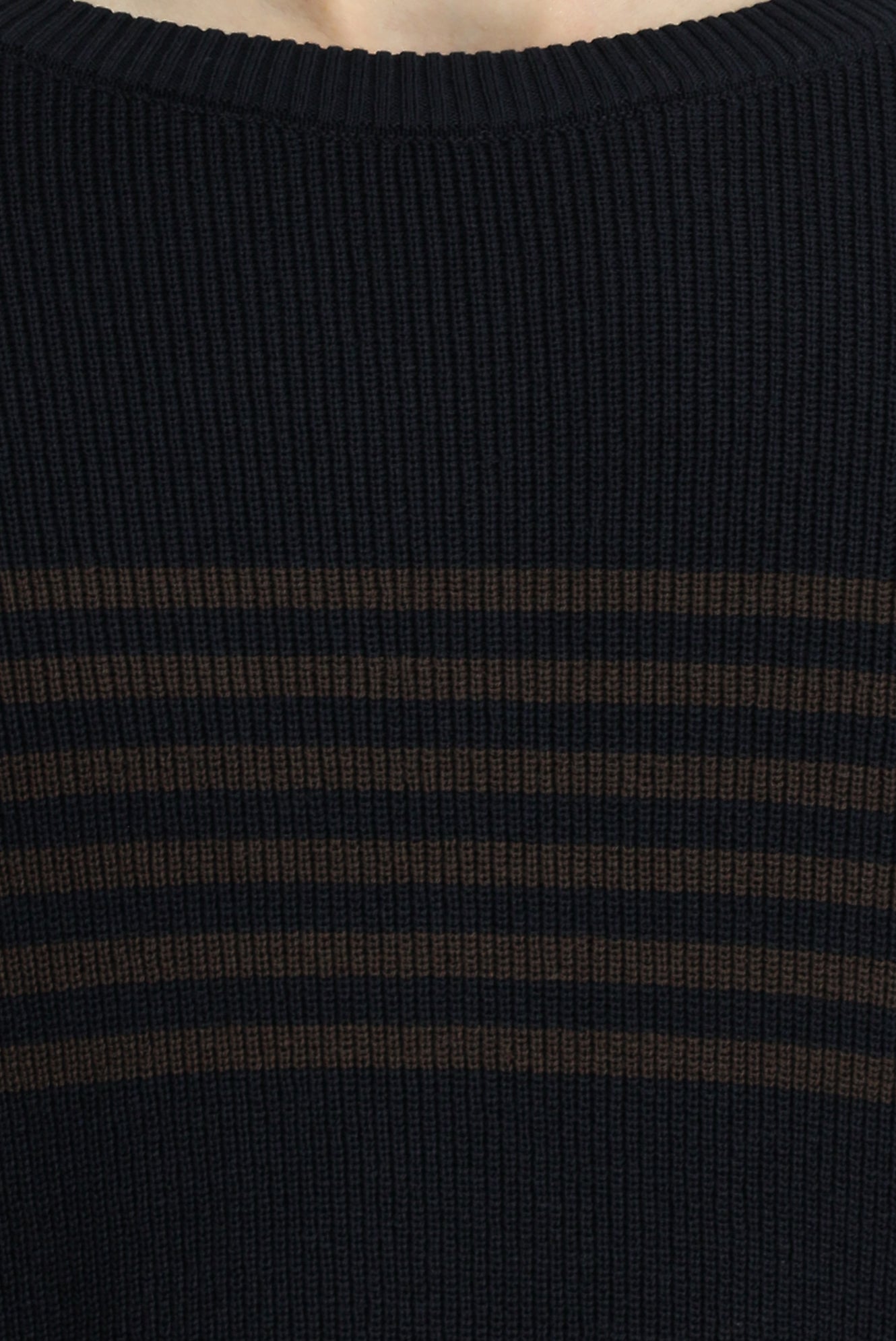 Dark Navy Crew Neck Regular Fit Striped Knit Sweater