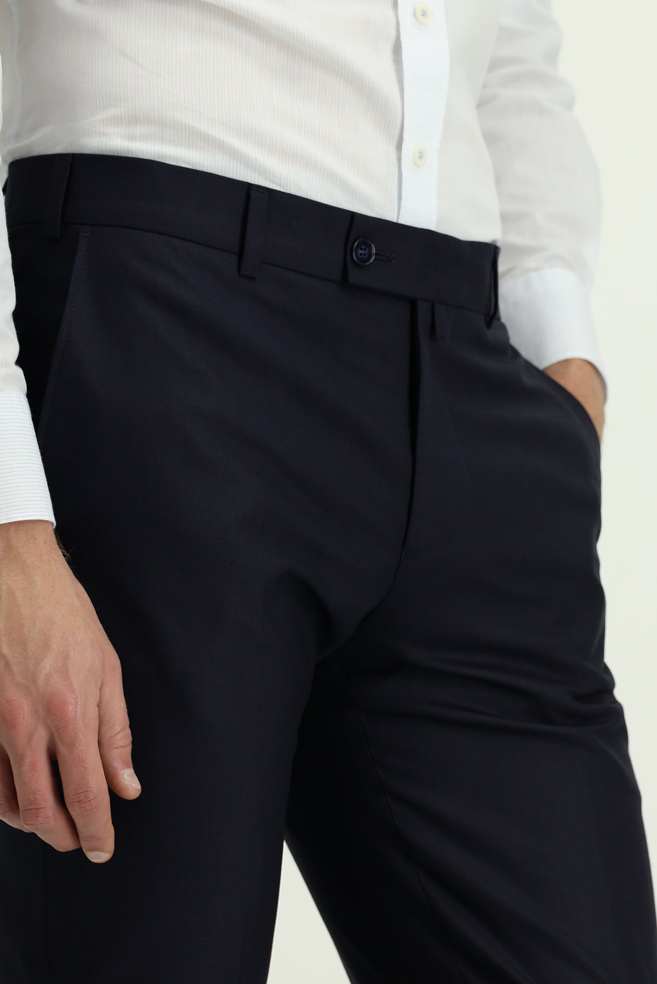 Dark Navy 4 Drop Relaxed Fit Classic Fabric Trousers