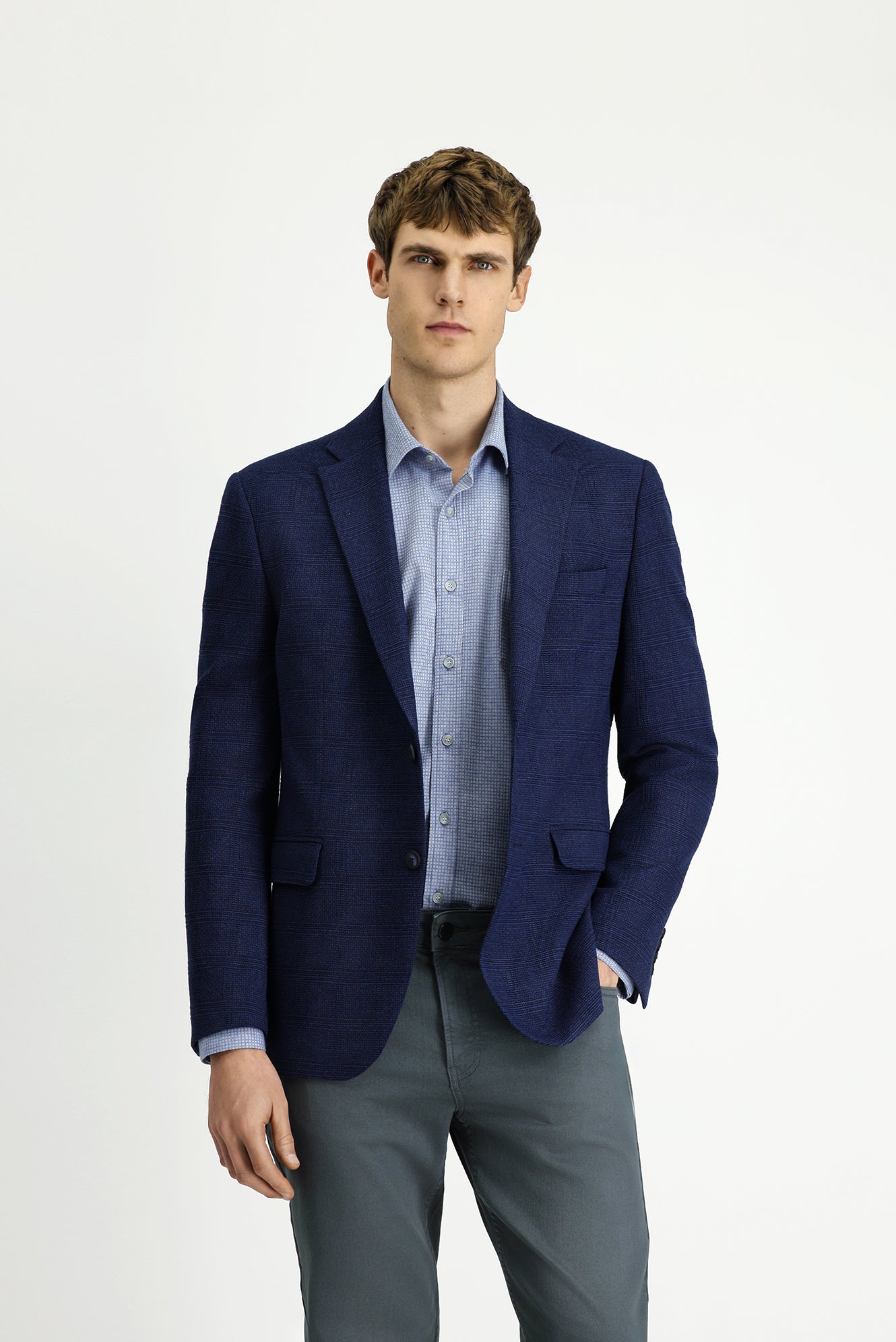 Dark Navy 4-Drop Relaxed Fit Classic Plaid Jacket
