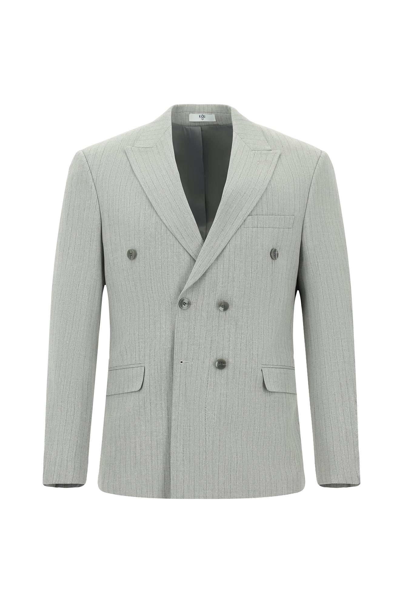 Light Grey 6 Drop Regular Fit Standard Cut Striped Double-Breasted Suit