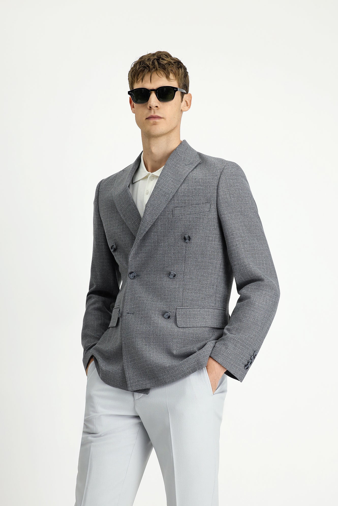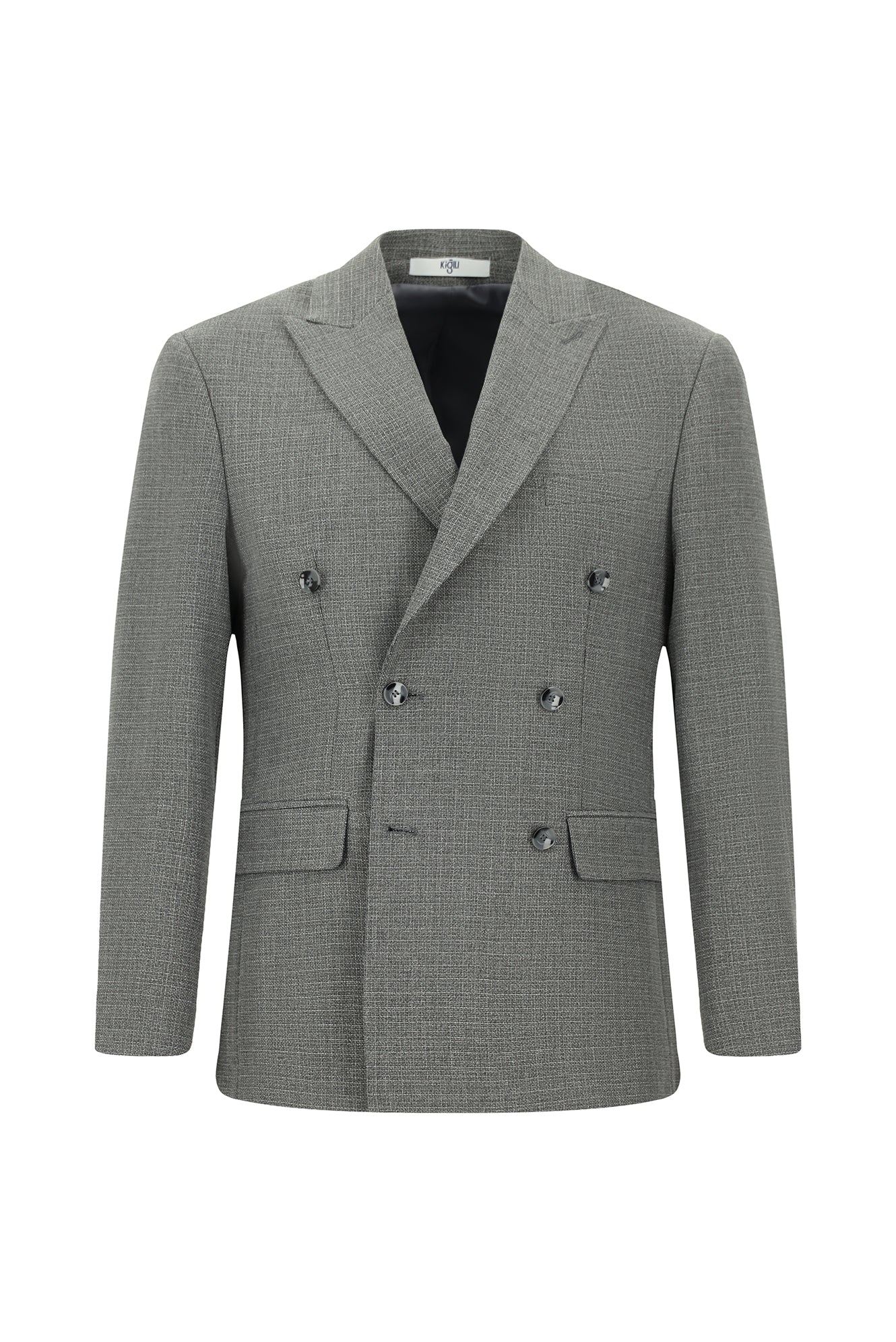 Medium Grey 6 Drop Regular Fit Patterned Double-Breasted Jacket