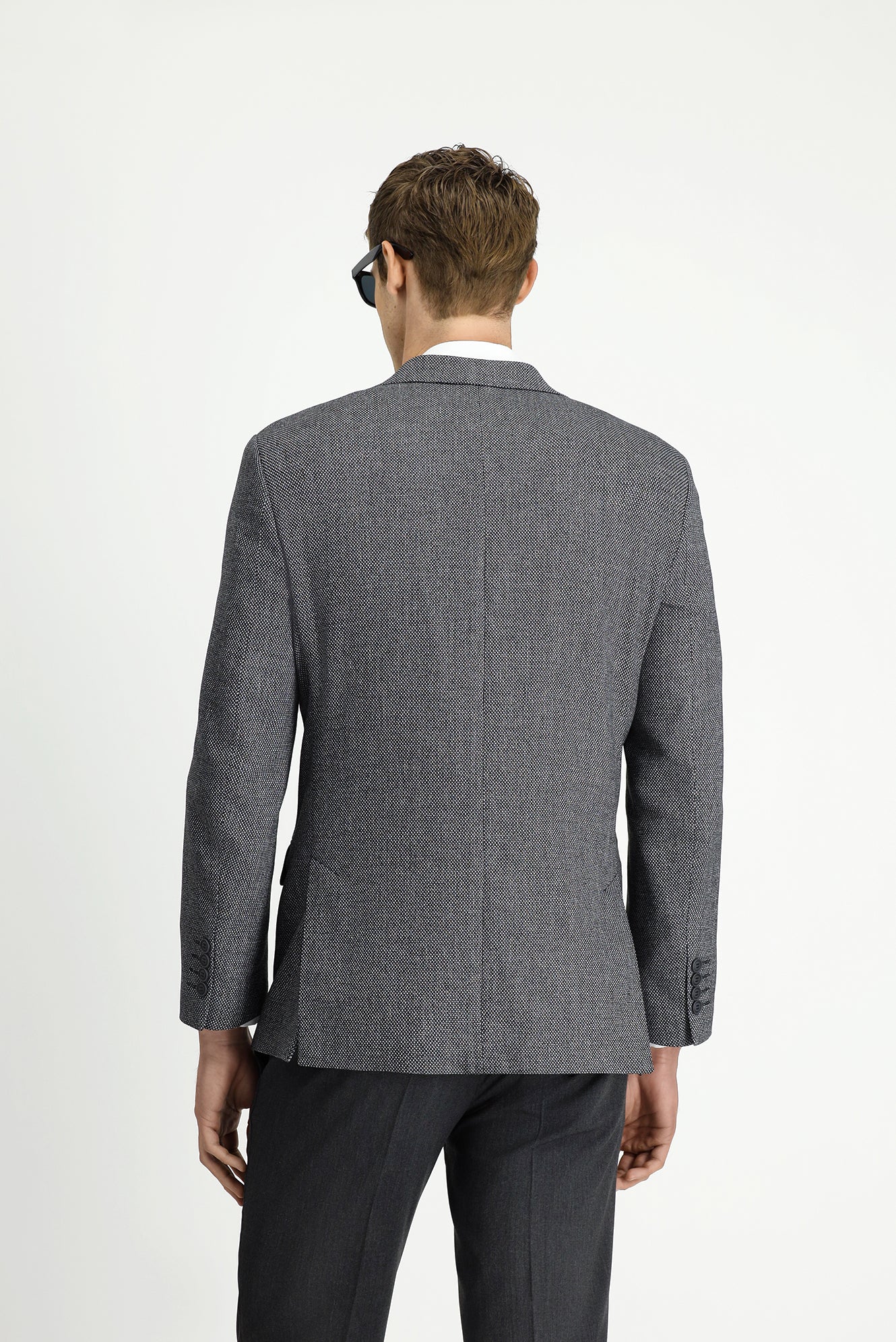 Black 4-Drop Relaxed Fit Classic Linen Blend Patterned Jacket