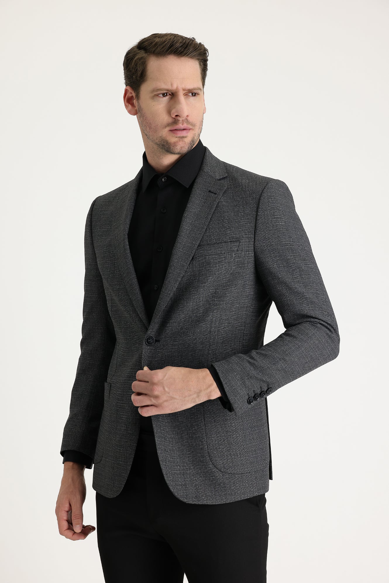 Açık Antrasit Regular Fit Desenli Spor Ceket