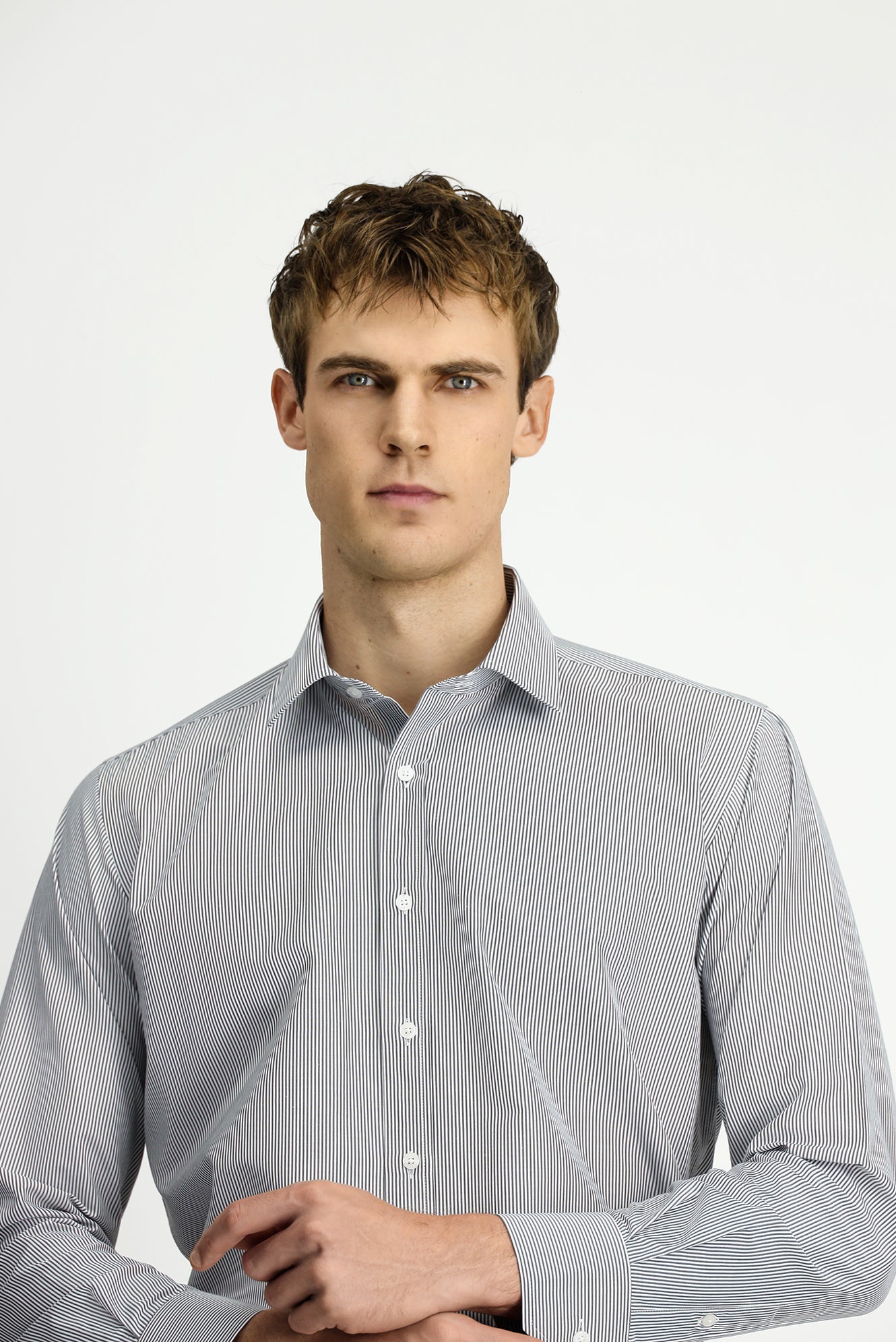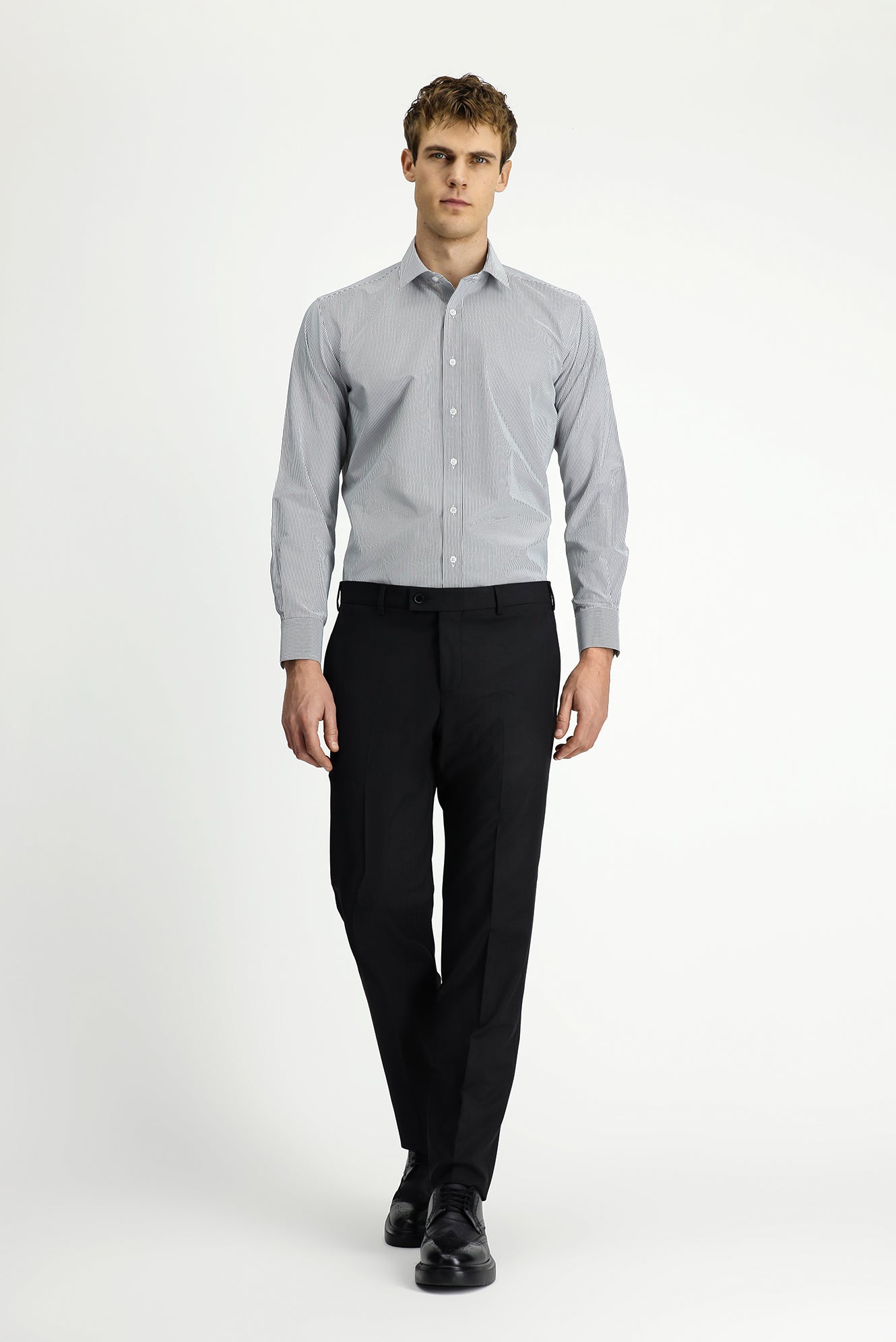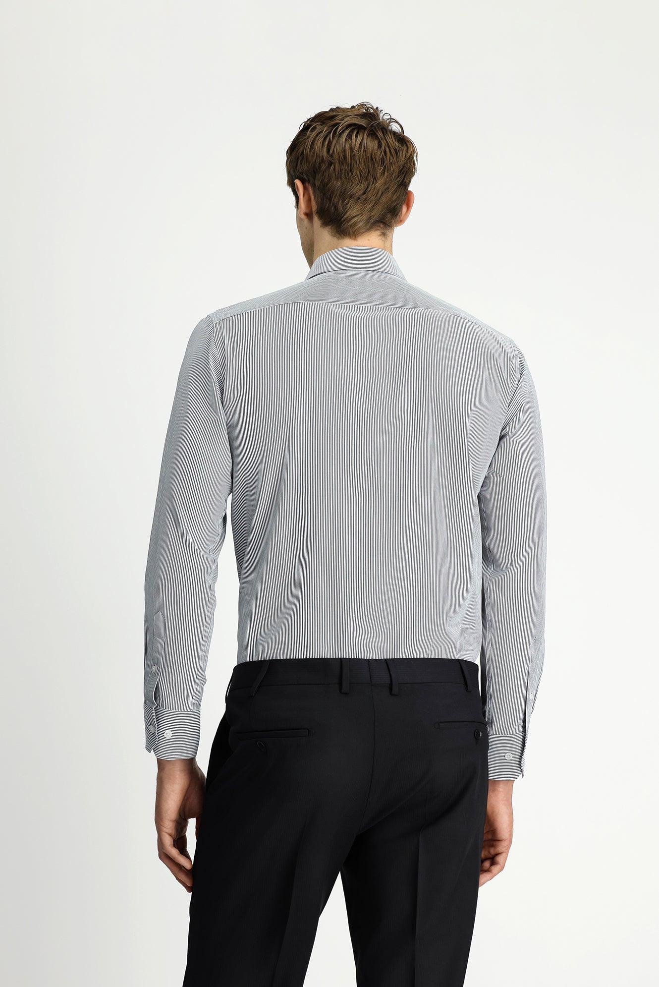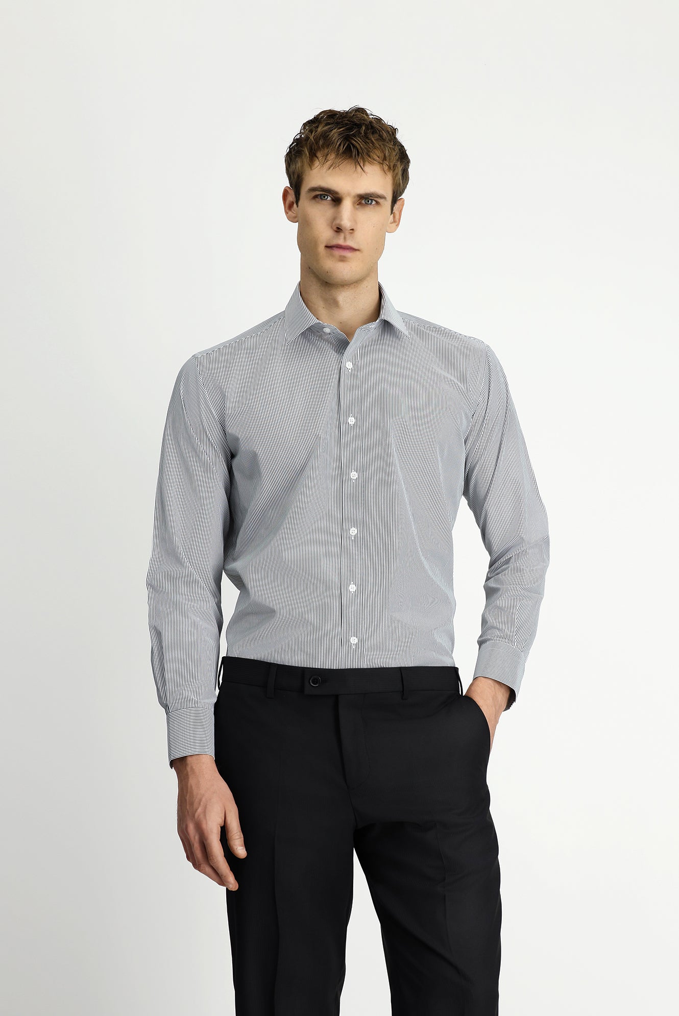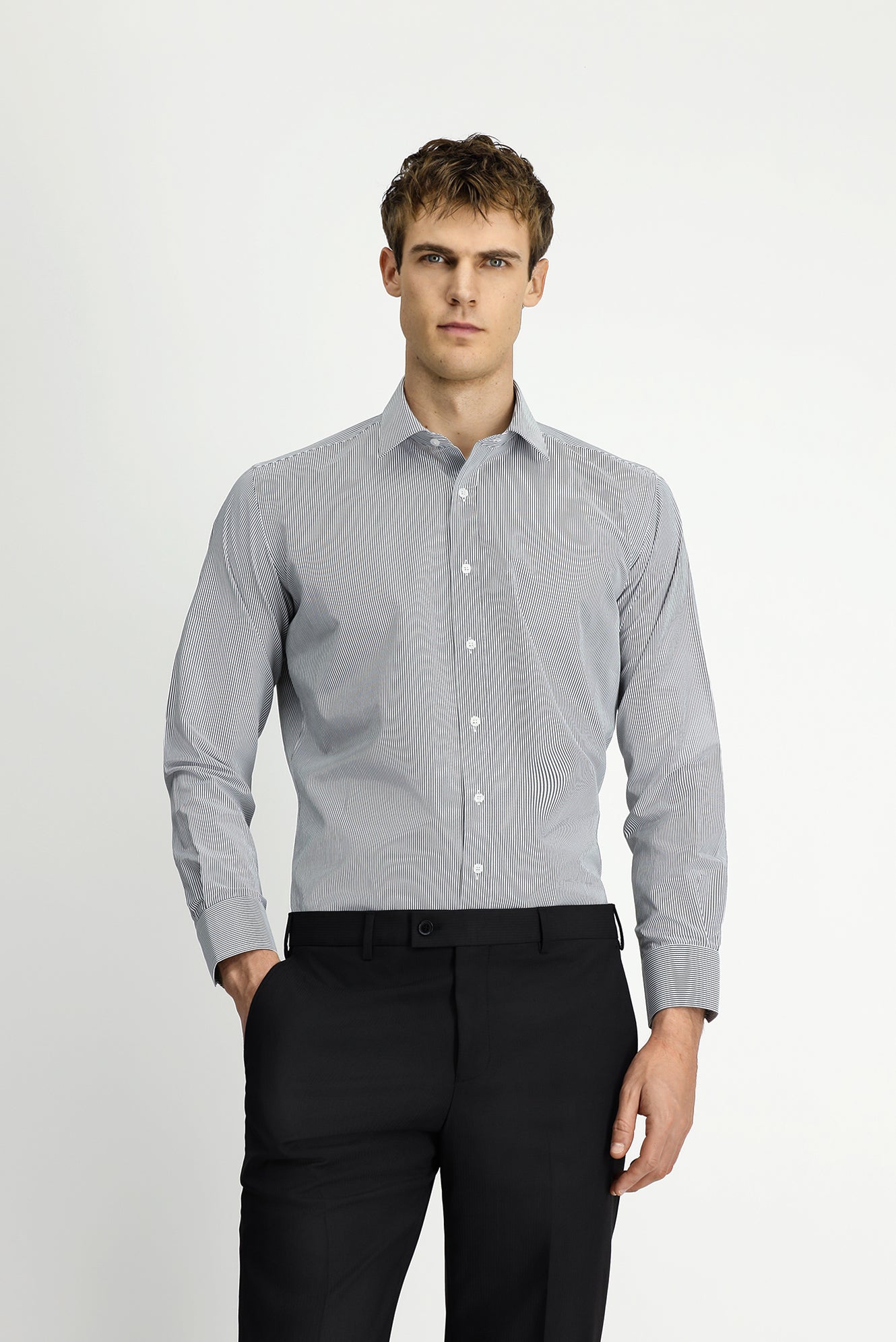Açık Antrasit Uzun Kol Klasik Çizgili Pamuklu Kolay Ütülenebilir Gömlek