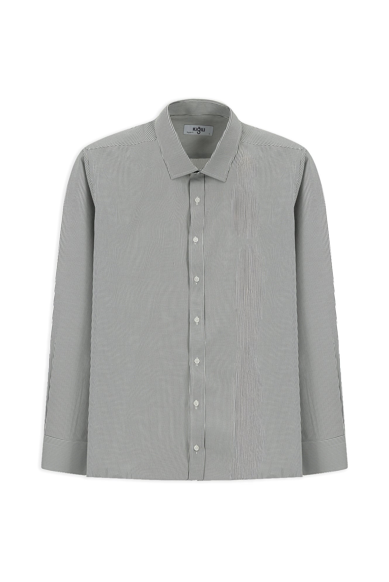 Açık Antrasit Uzun Kol Klasik Çizgili 4 Mevsim Pamuklu Kolay Ütülenebilir Gömlek