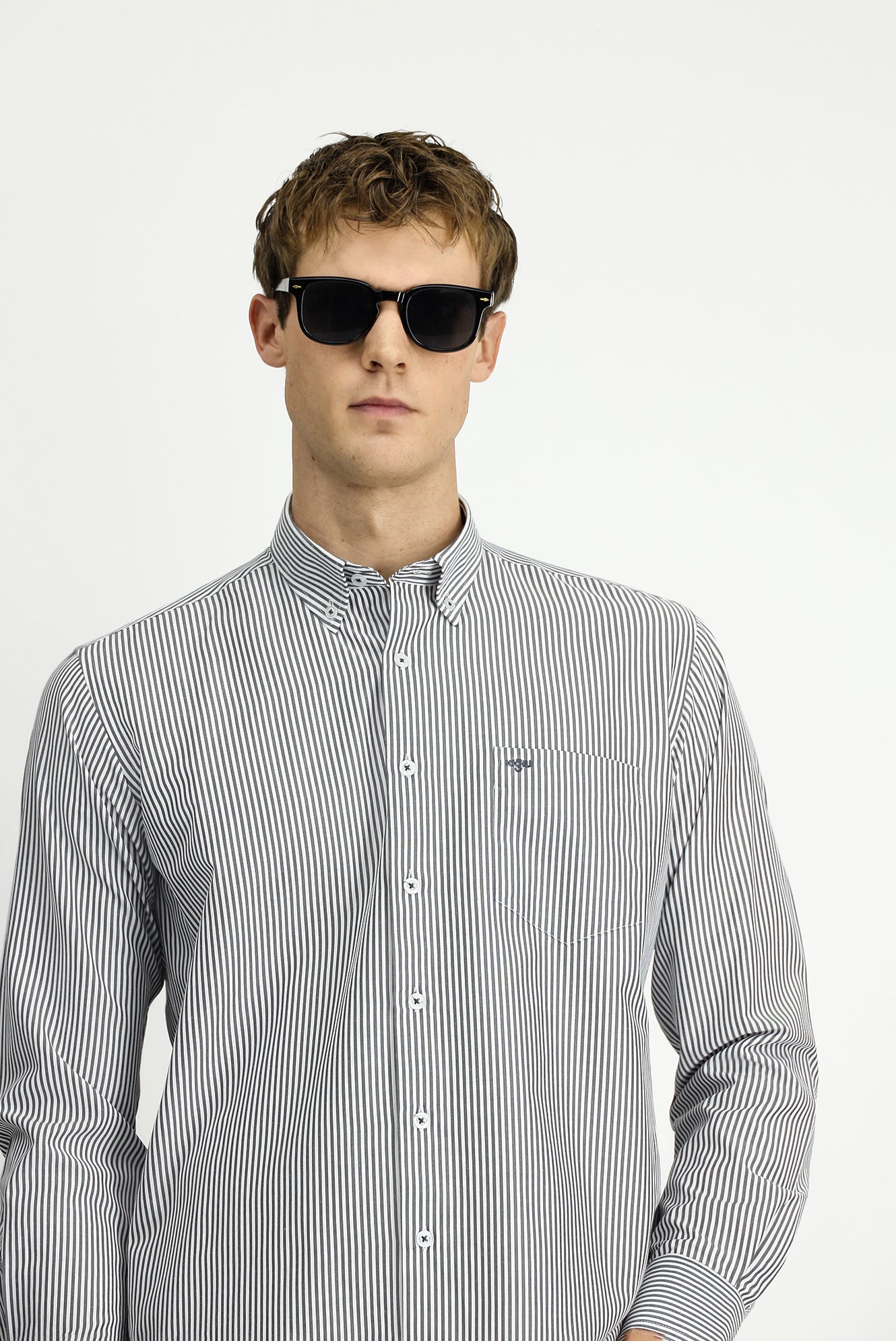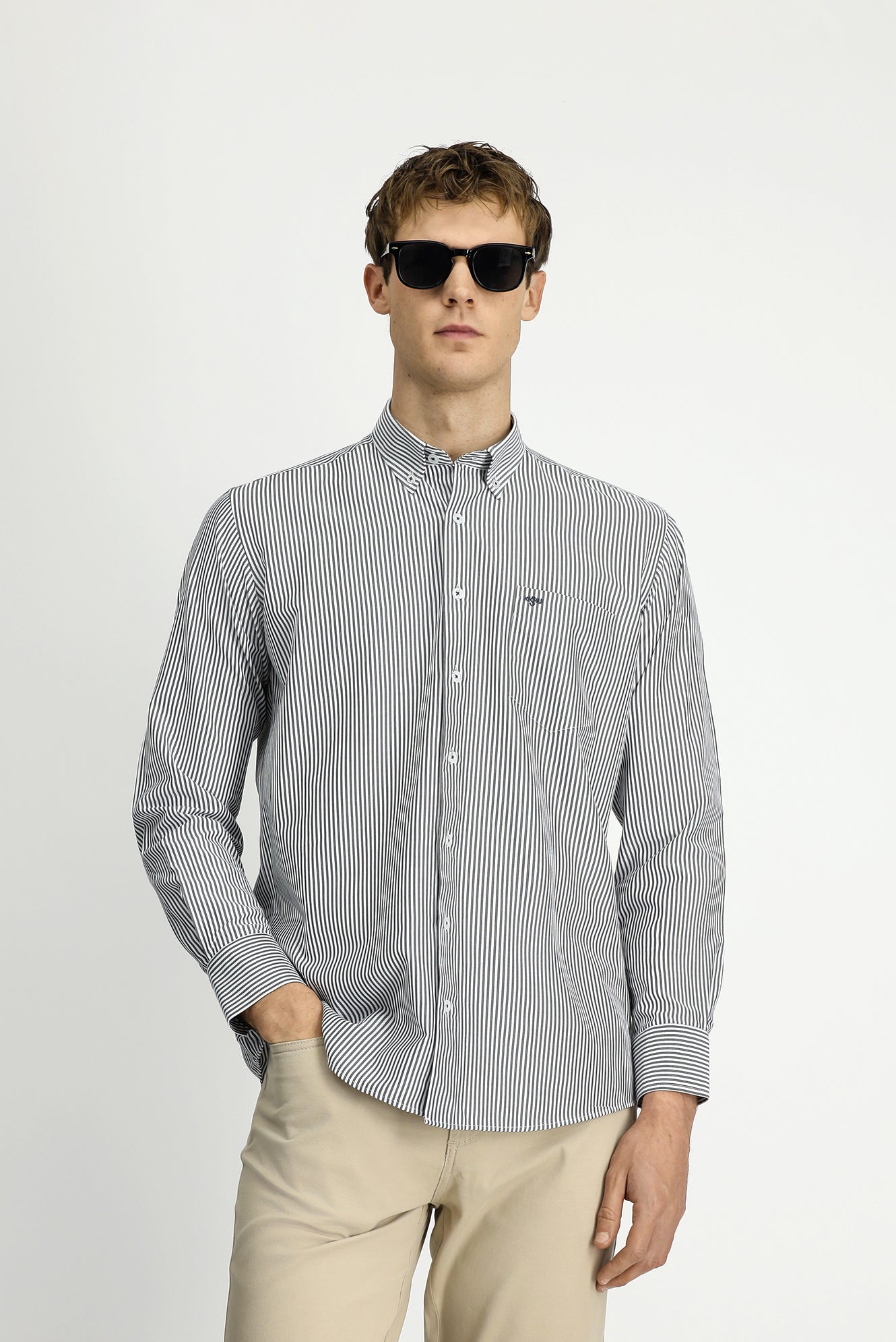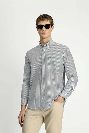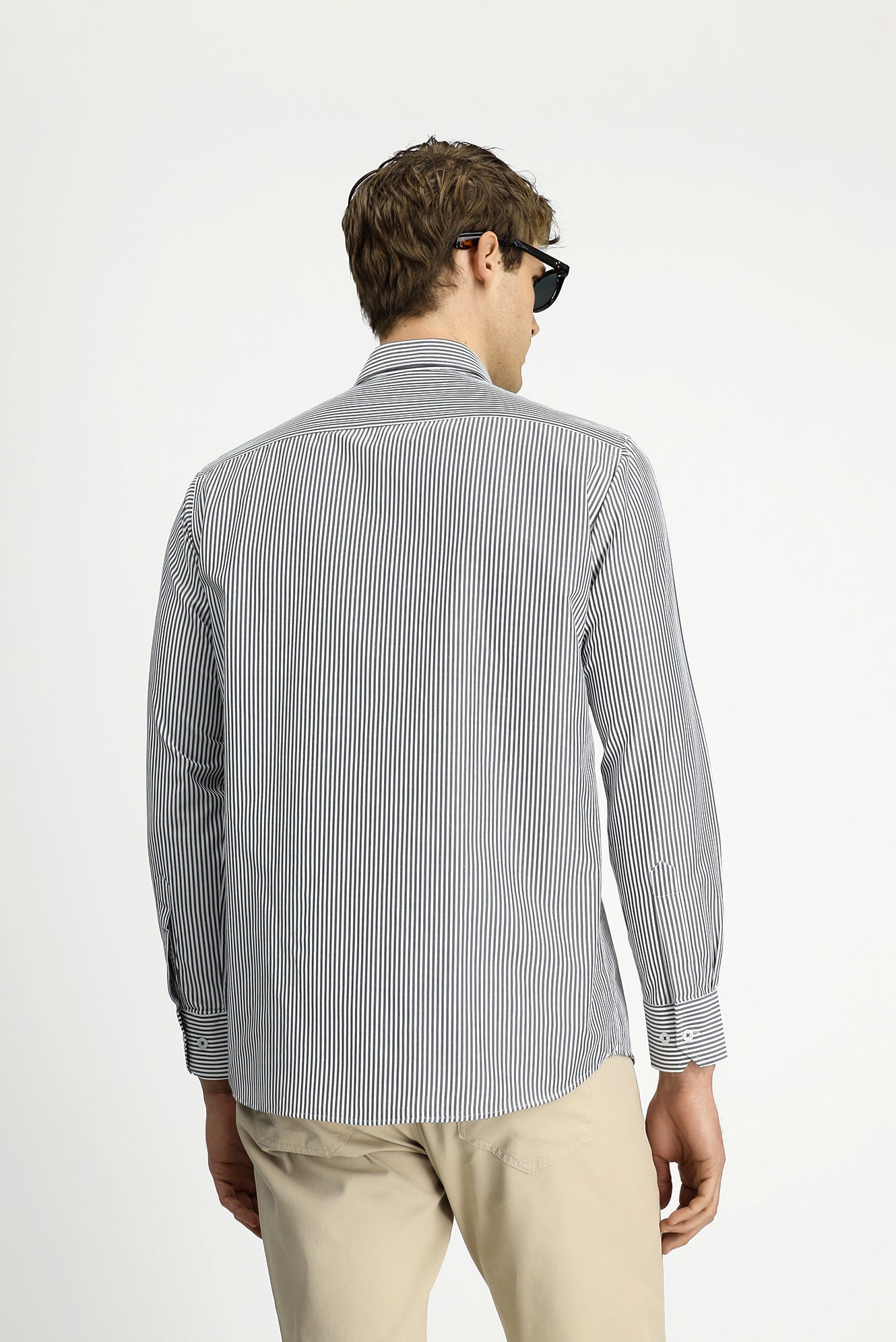 Açık Antrasit Uzun Kol Regular Fit Çizgili Düğmeli Yaka Pamuklu Kolay Ütülenebilir Gömlek