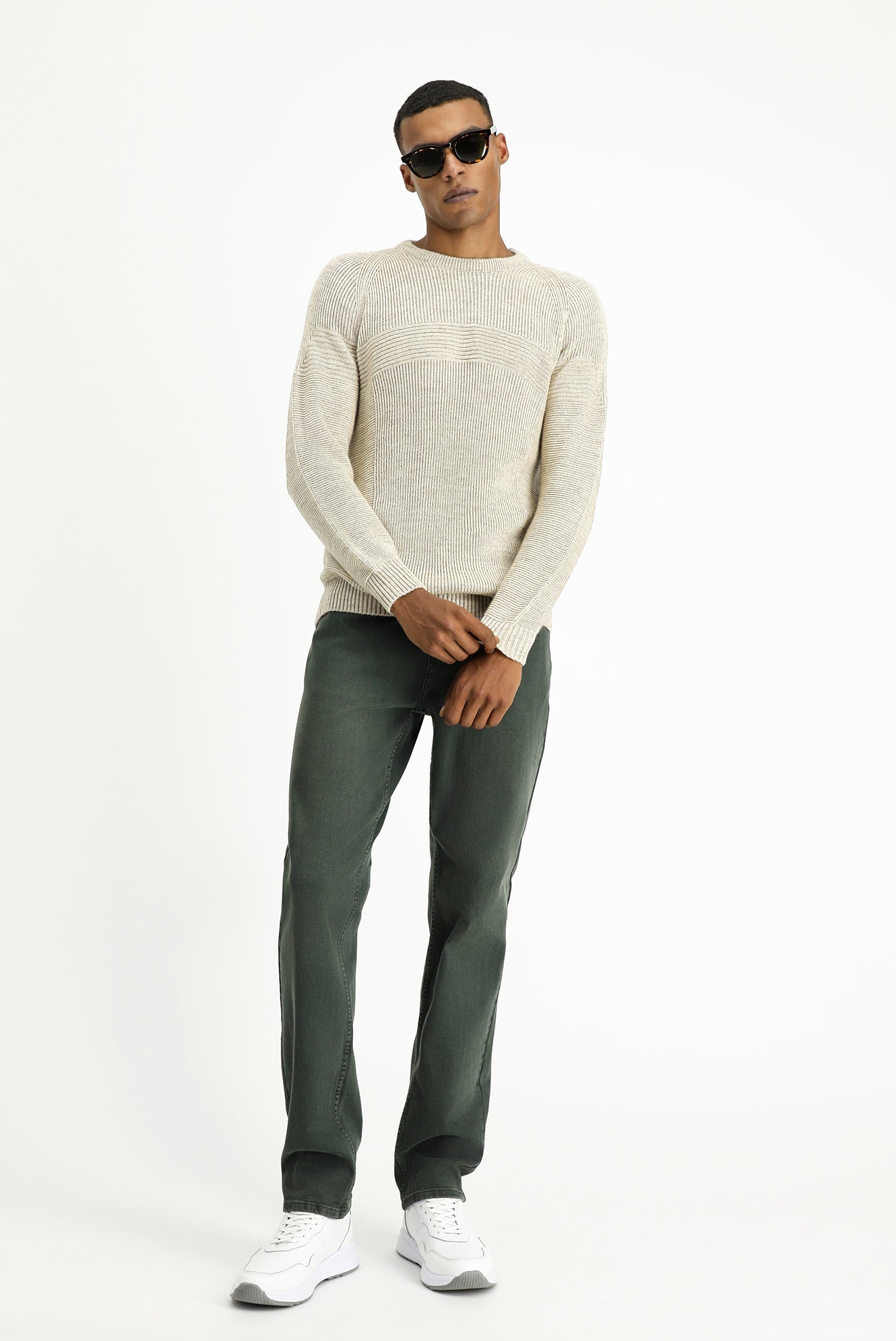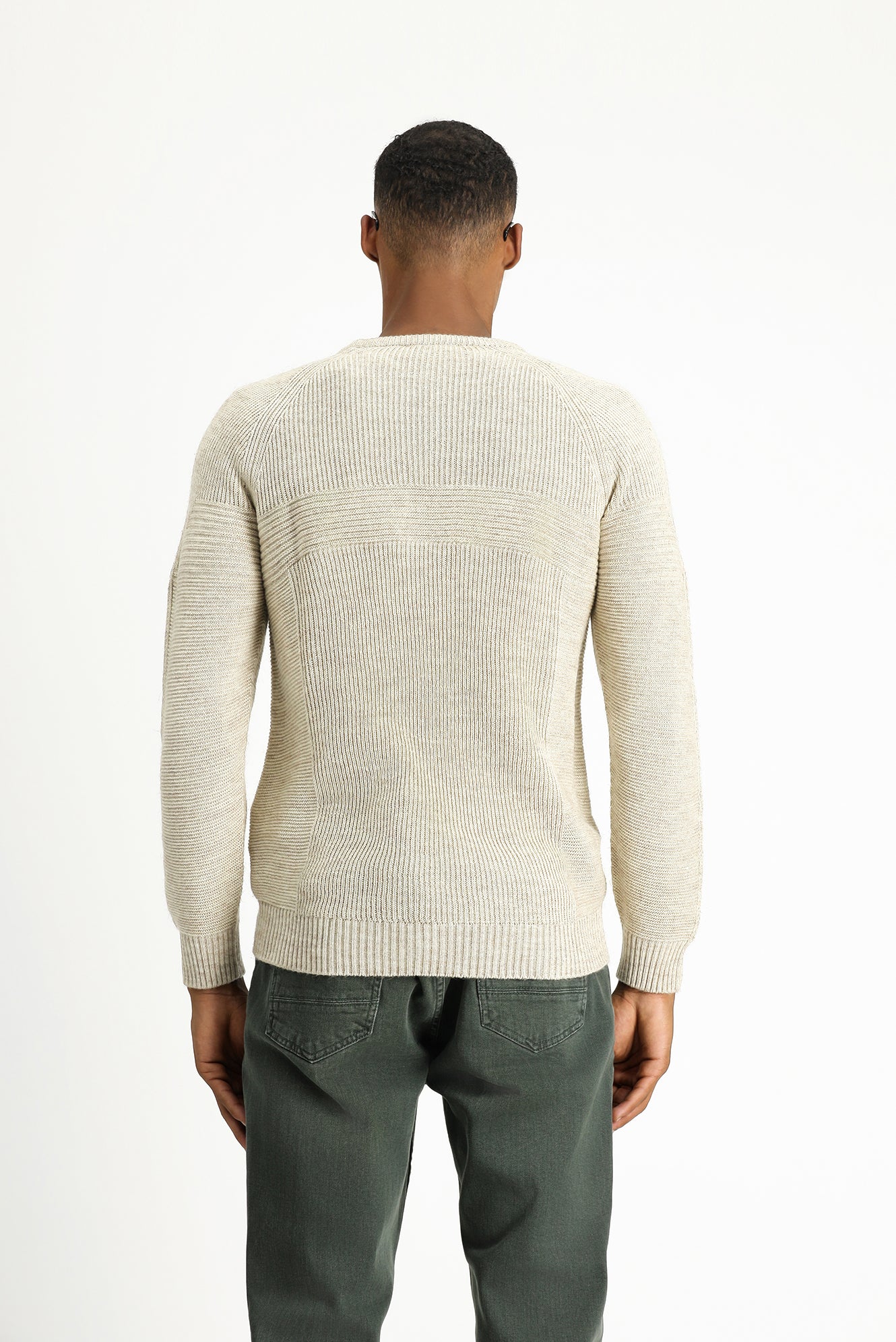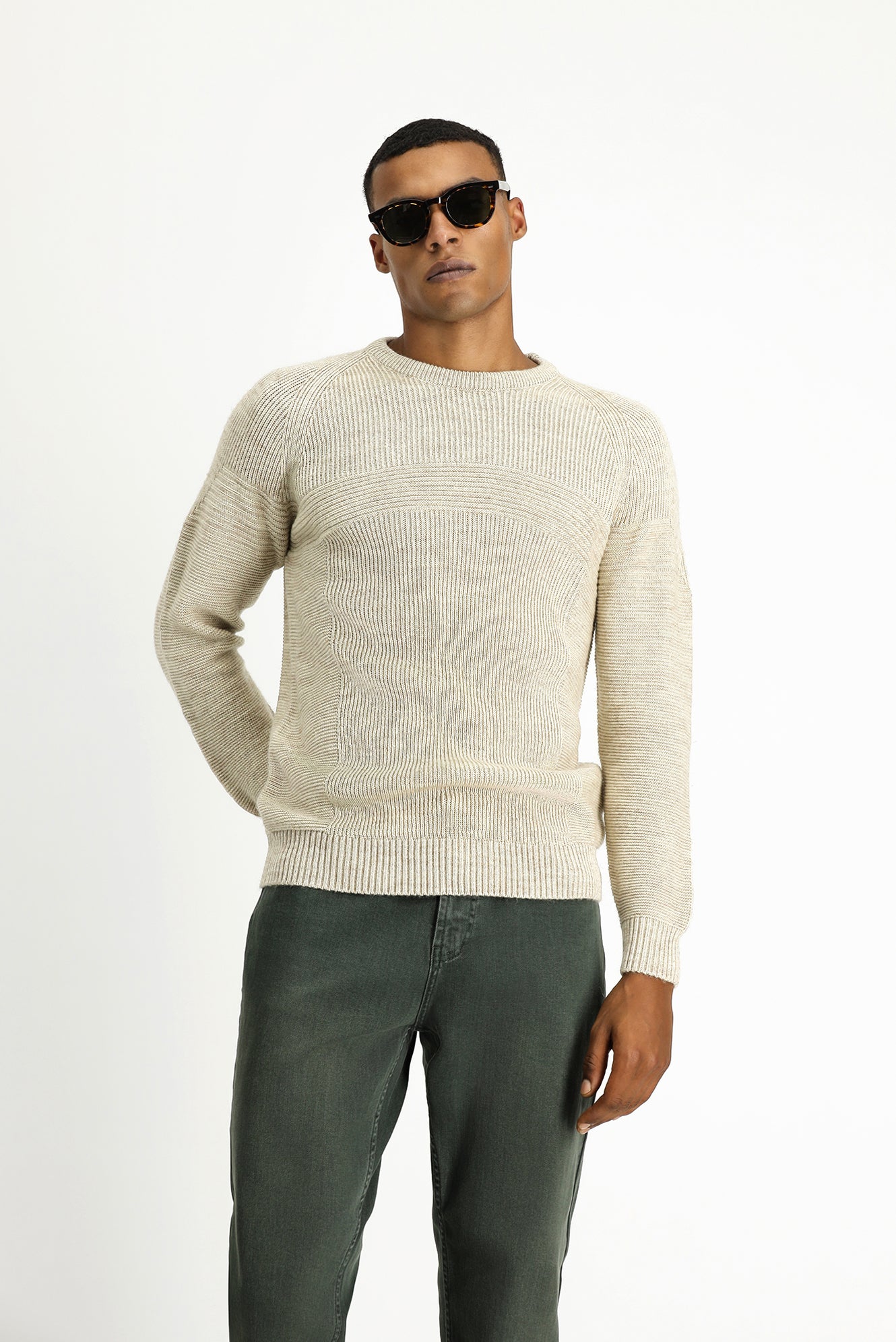 Açık Bej Bisiklet Yaka Regular Fit Dikişsiz Desenli Triko Kazak