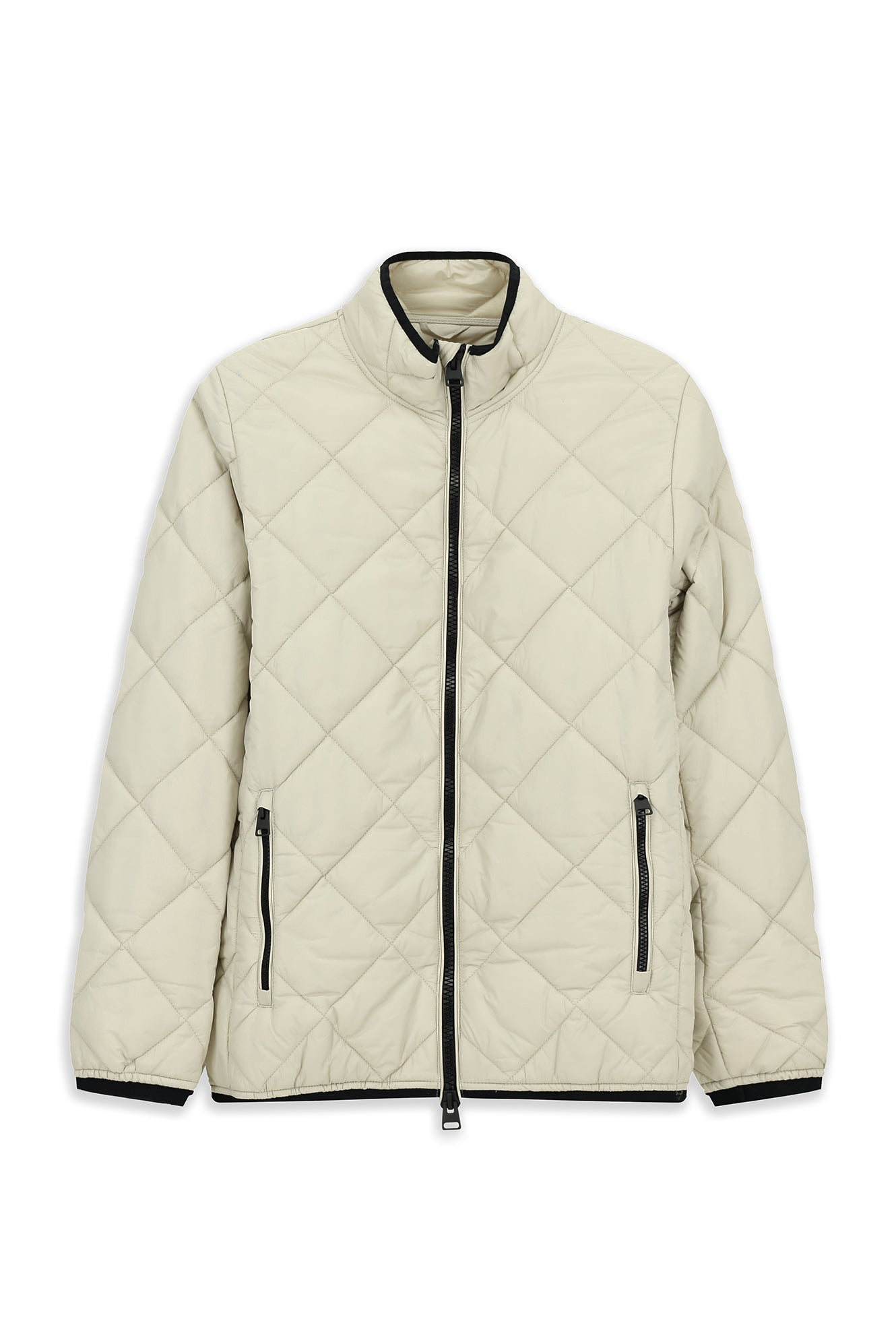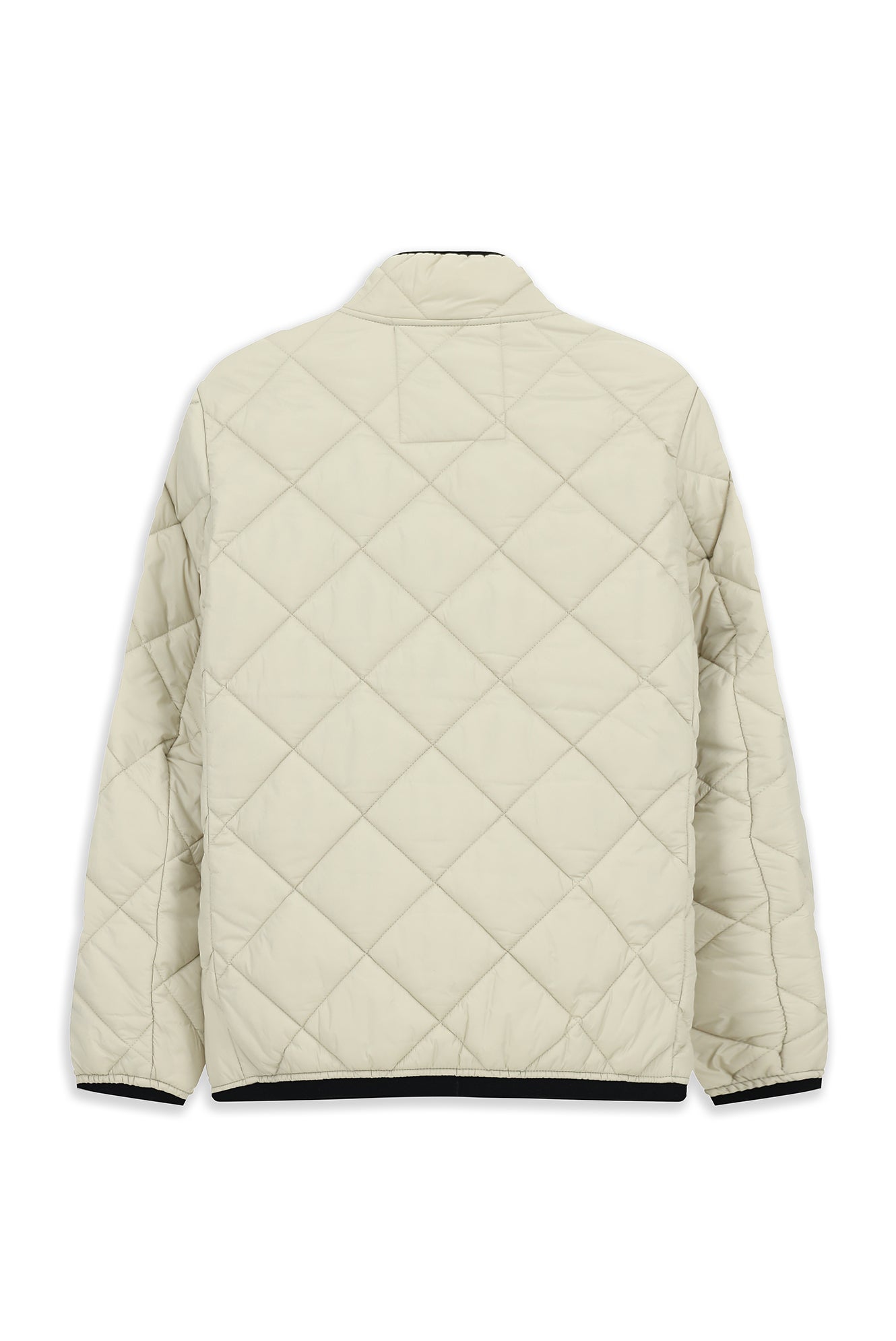 Açık Bej Dik Yaka Fermuarlı Cepli Rüzgar Geçirmez Kapitone Spor Mont