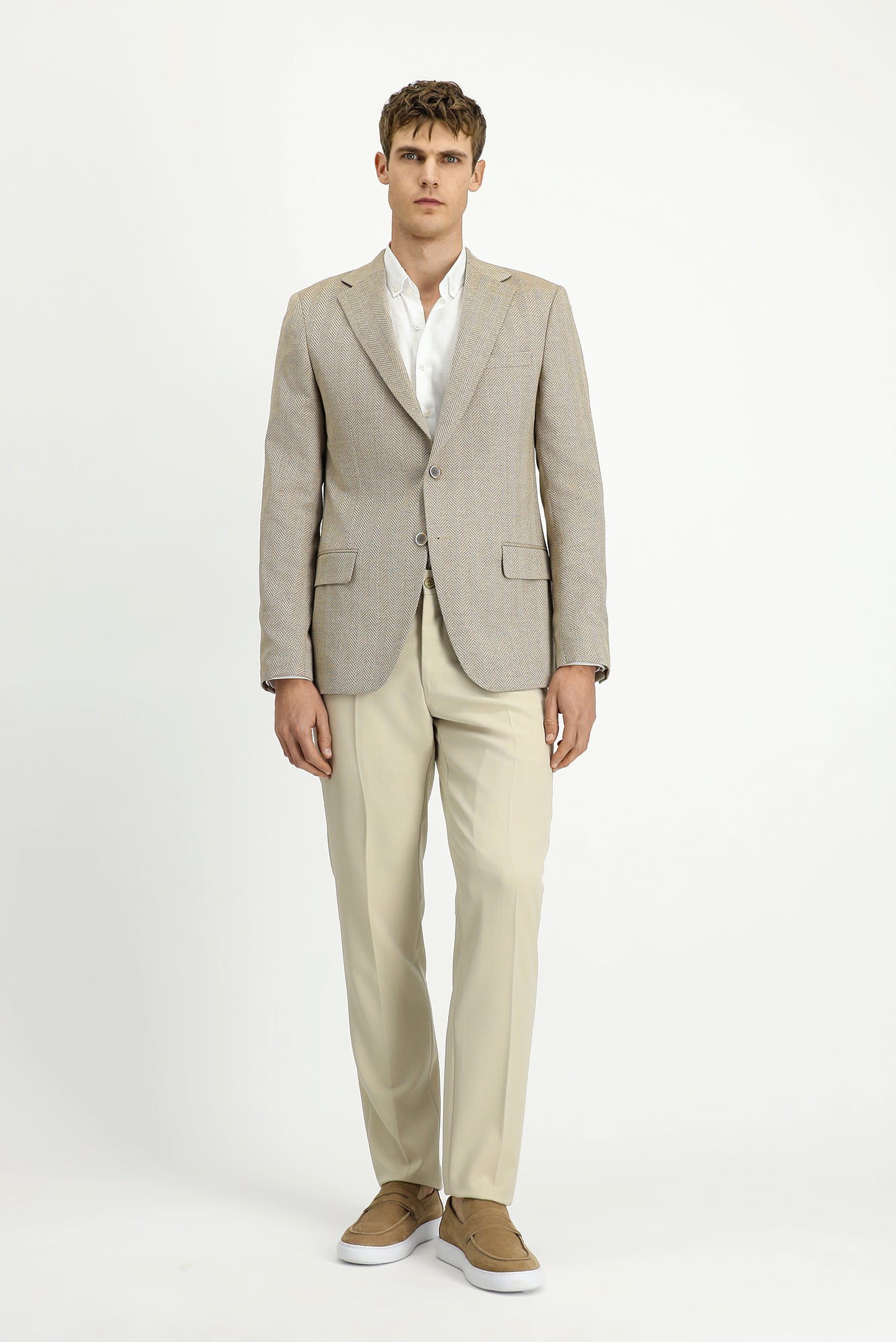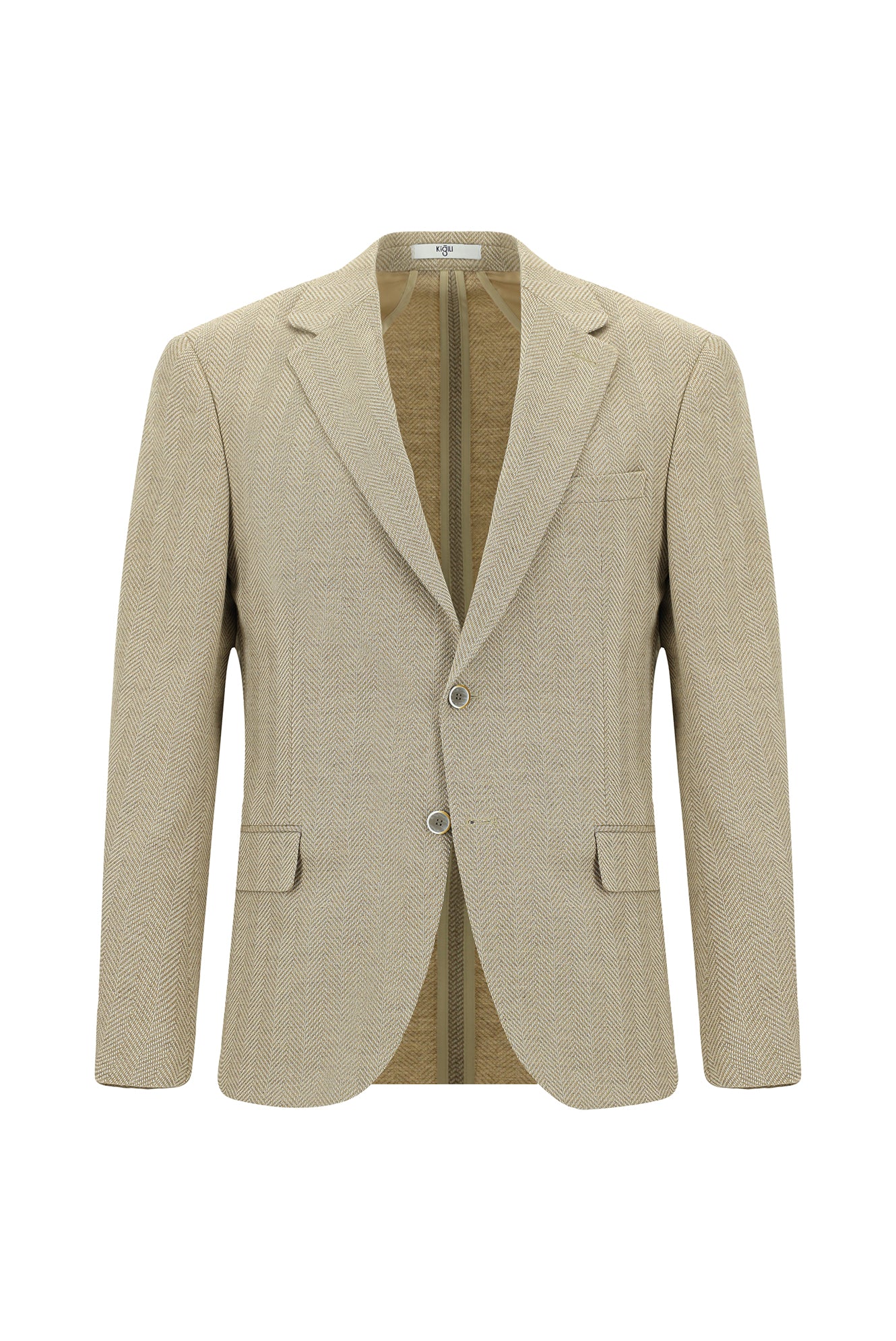 Açık Bej Muscle Fit Yünlü Desenli Ceket