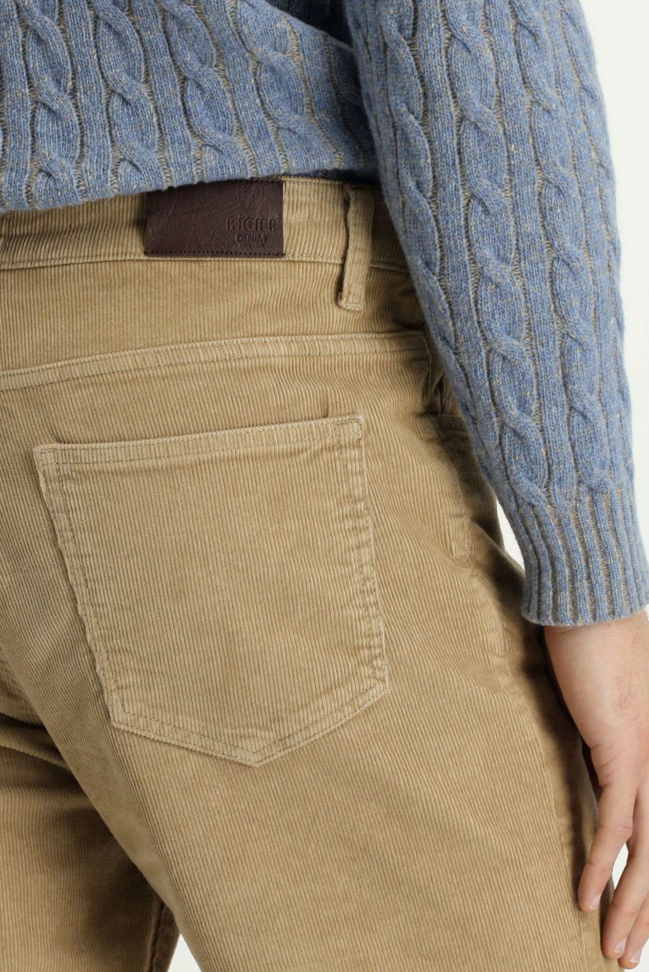 Açık Bej 6 Drop Regular Fit Standart Kesim Likralı Kadife Pantolon
