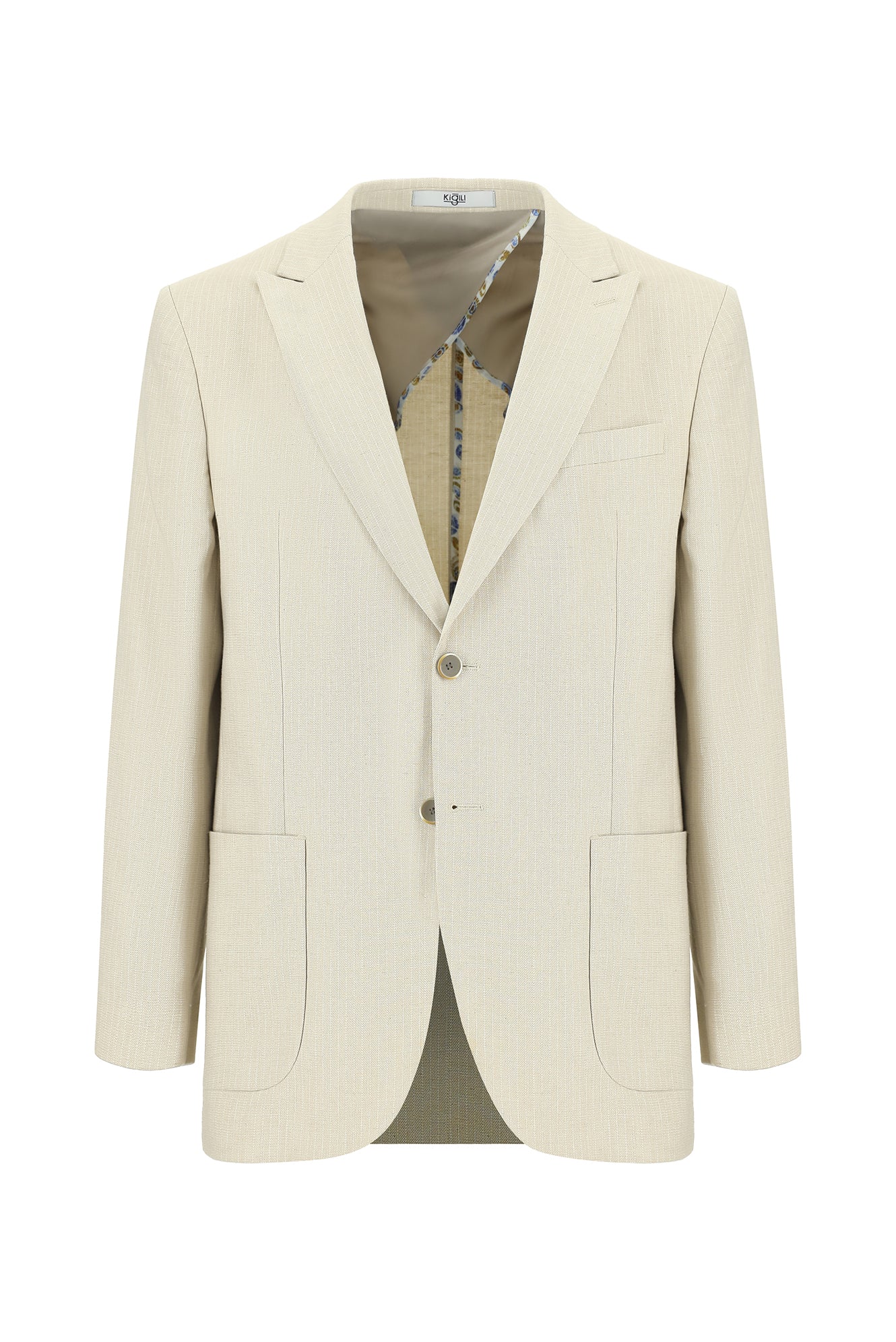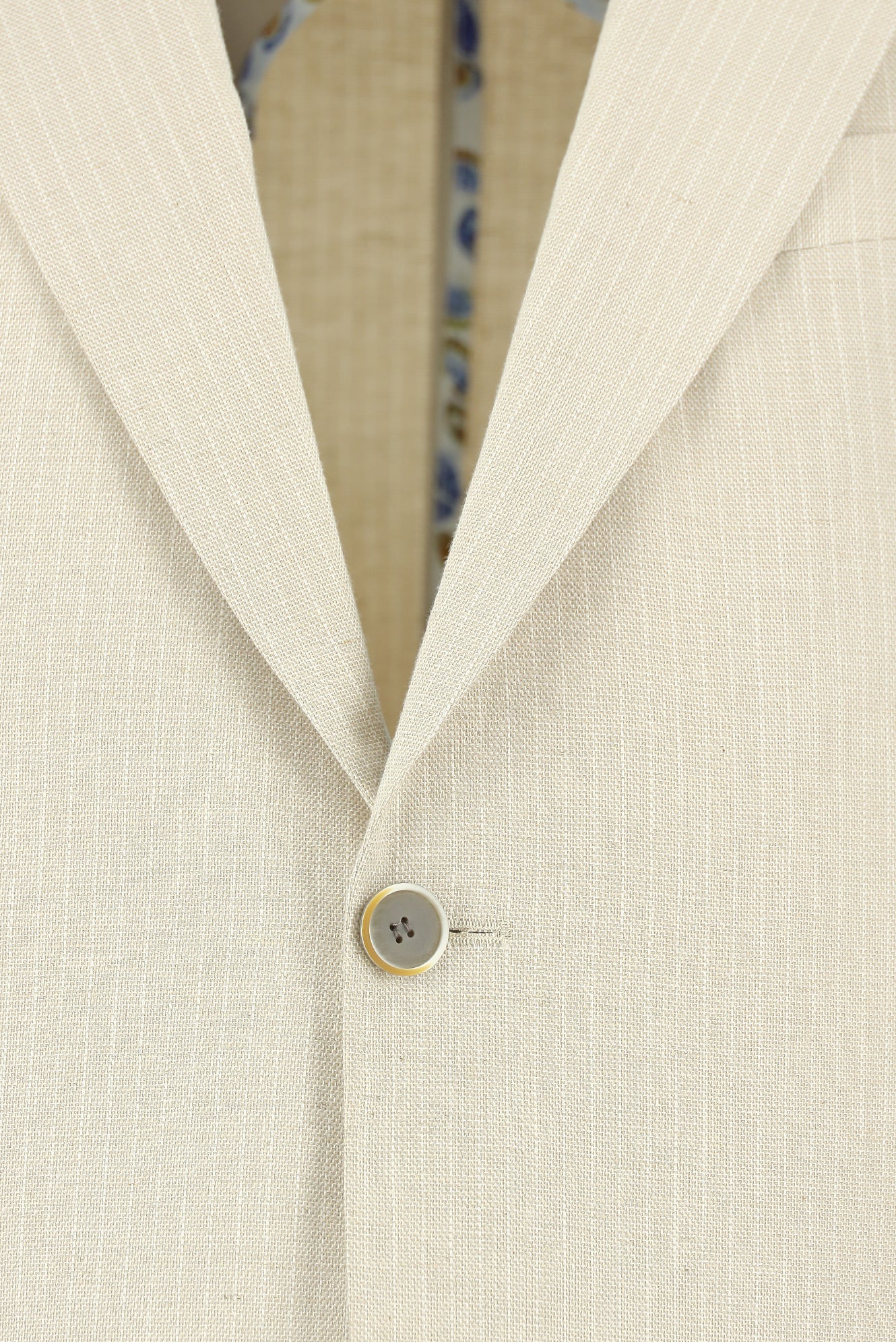 Açık Bej Regular Fit Çizgili Pamuklu Keten Karışımlı Ceket