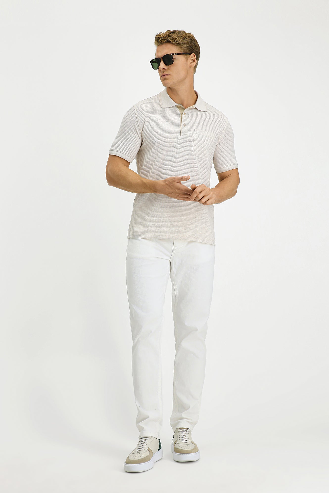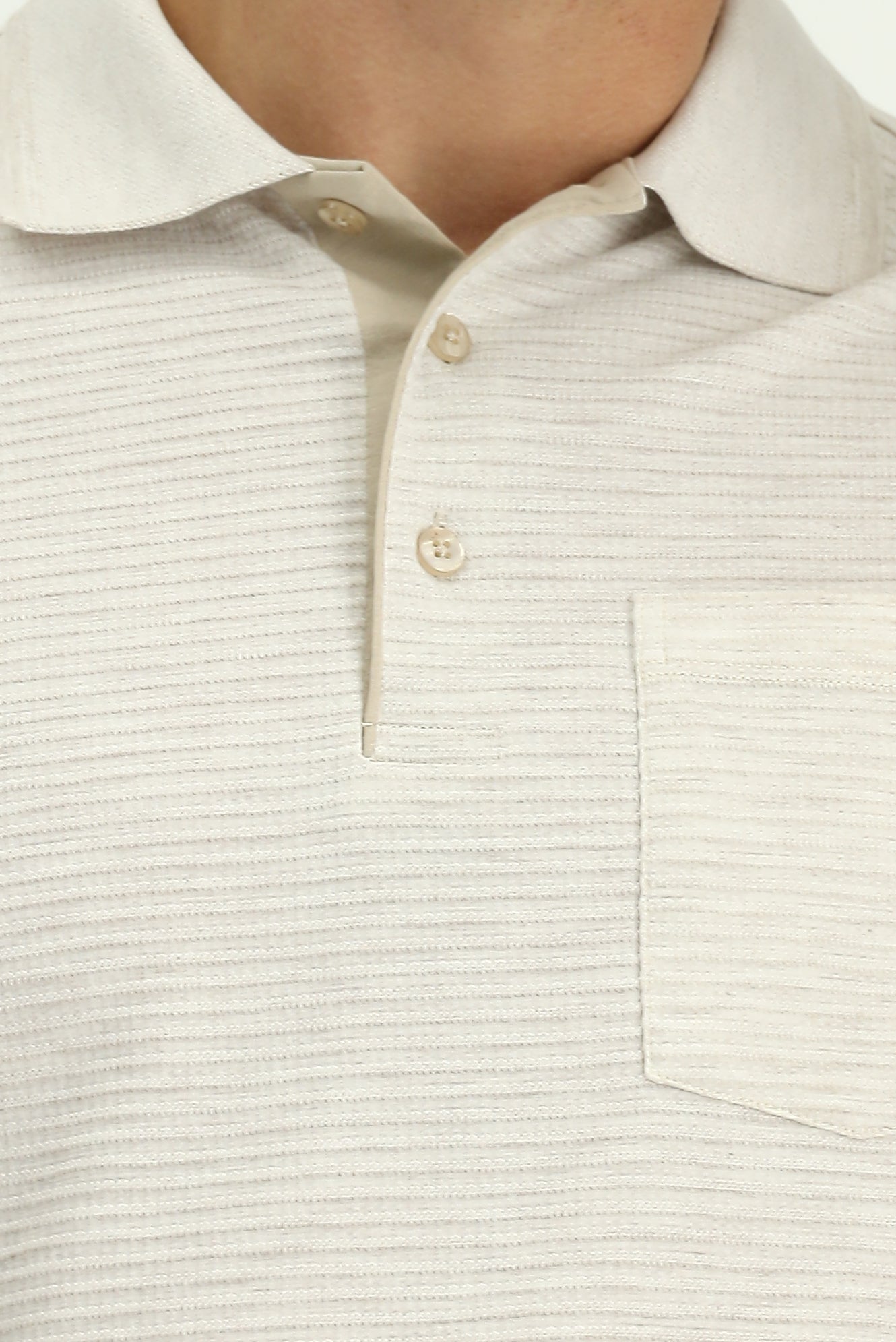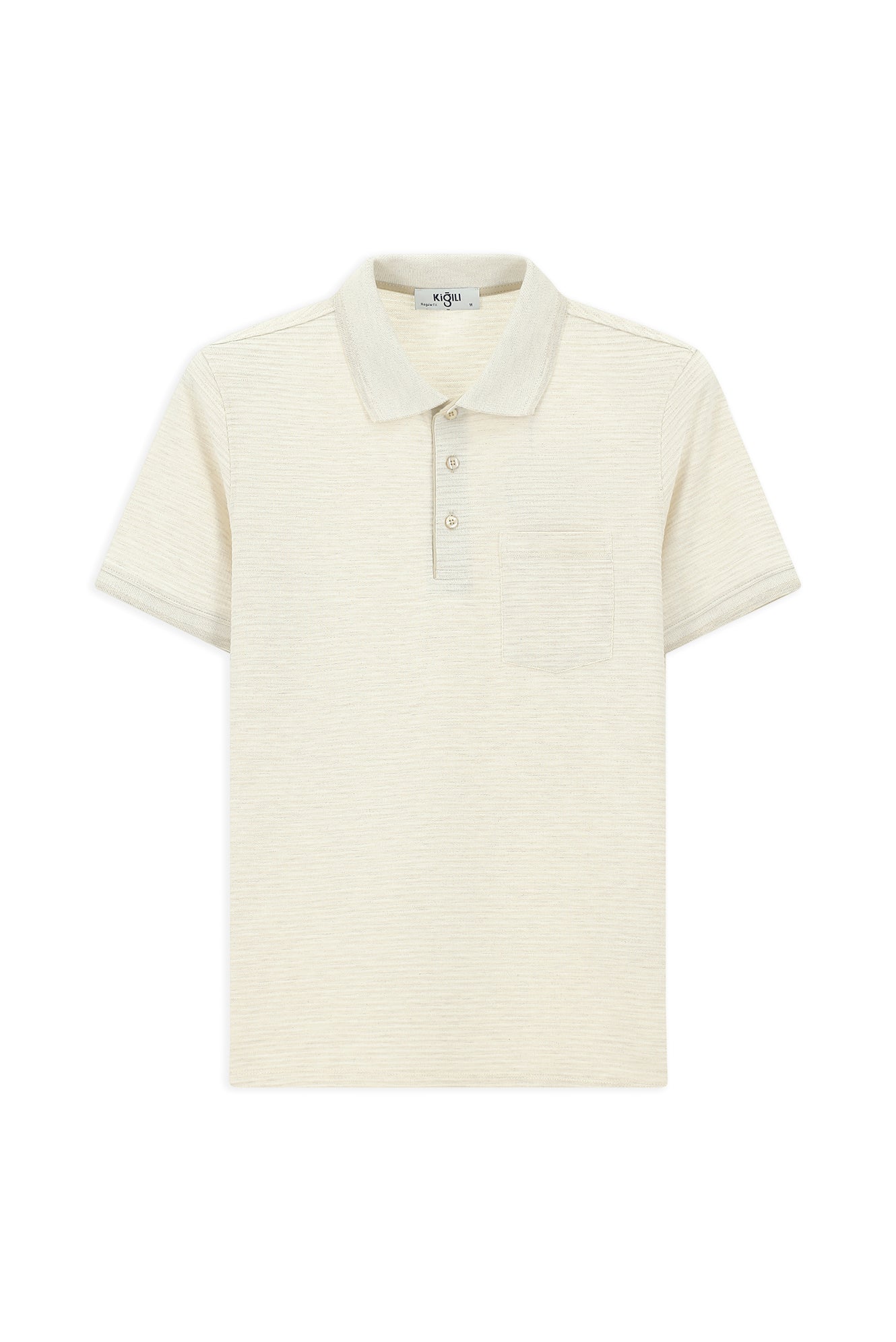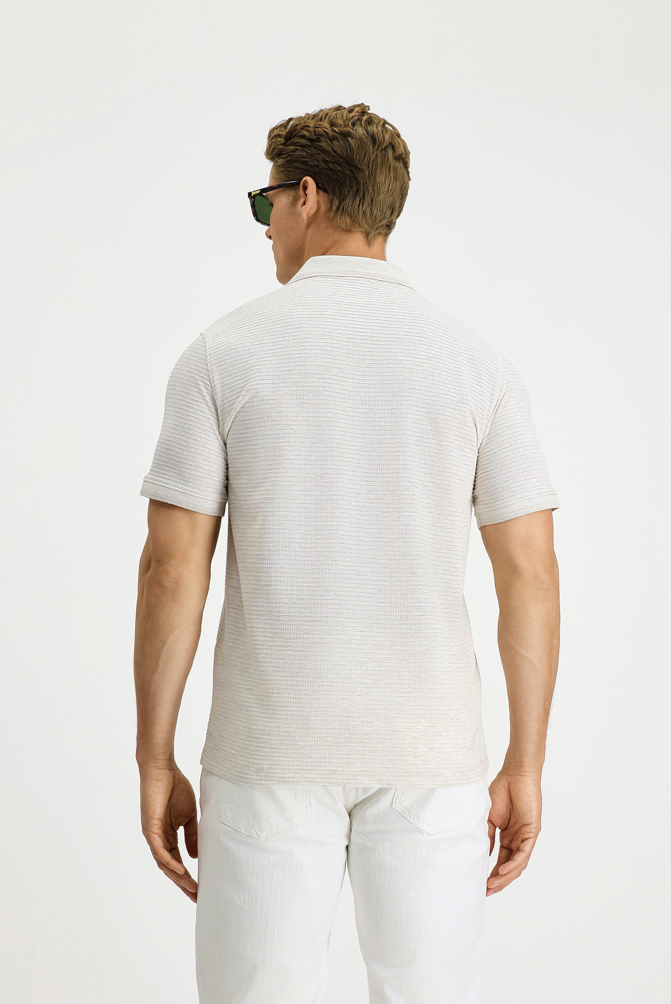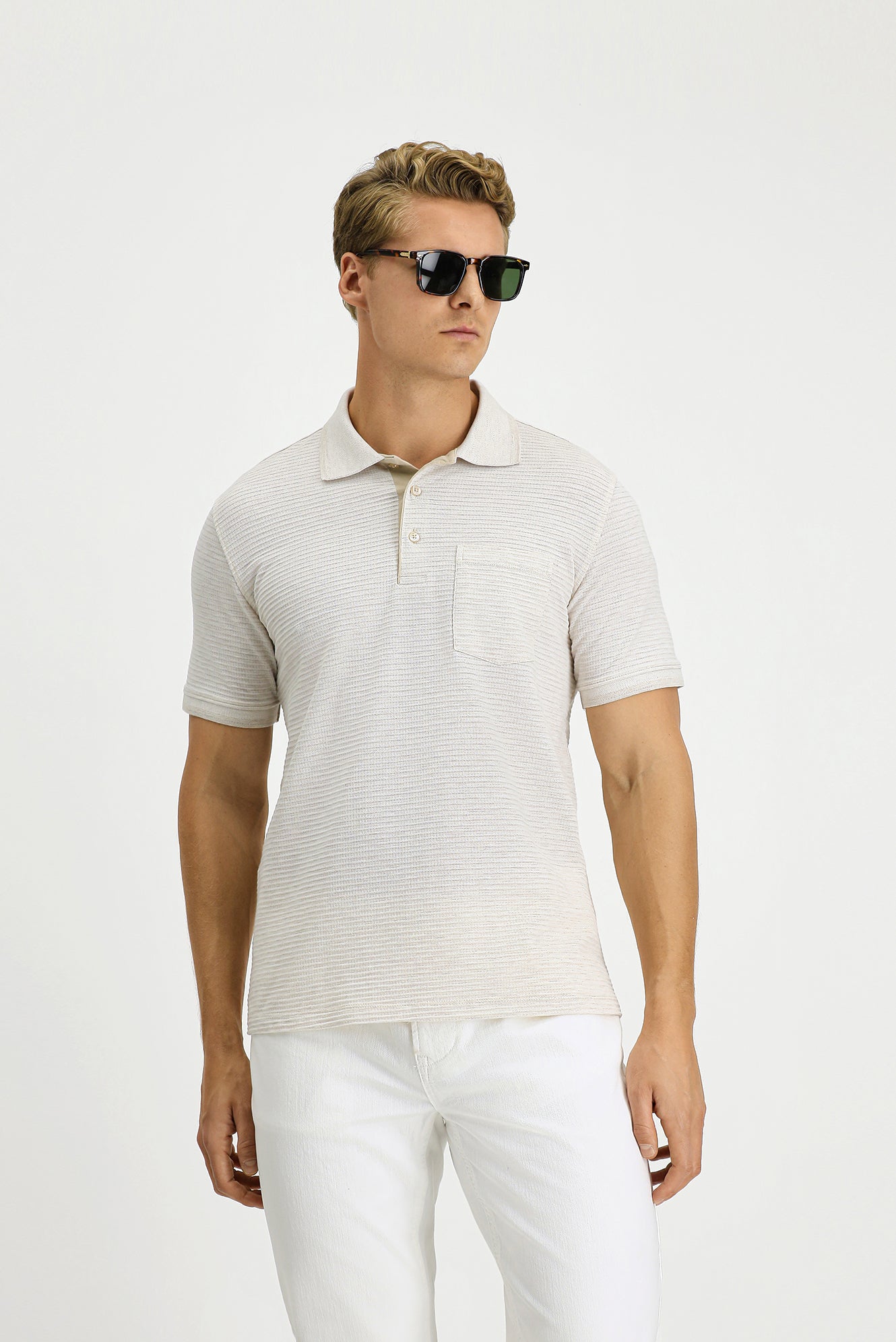 Açık Bej Regular Fit Desenli Likralı Cepli Polo Yaka Tişört