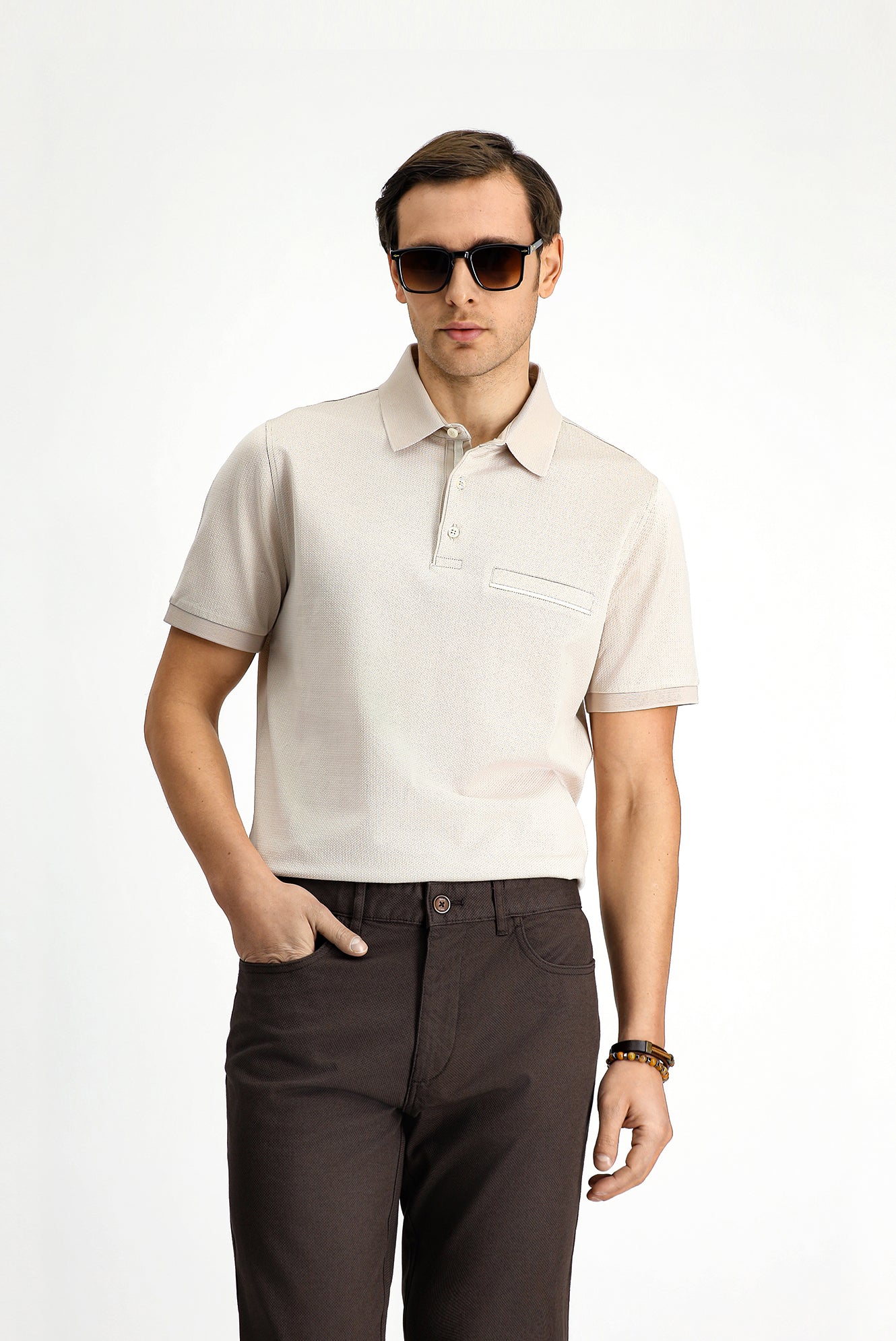 Açık Bej Regular Fit Desenli Pamuklu Cepli Polo Yaka Tişört