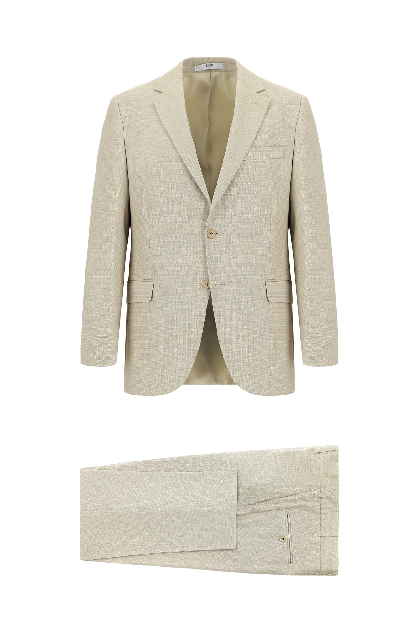 Açık Bej 6 Drop Regular Fit Standart Kesim Klasik Desenli Takım Elbise