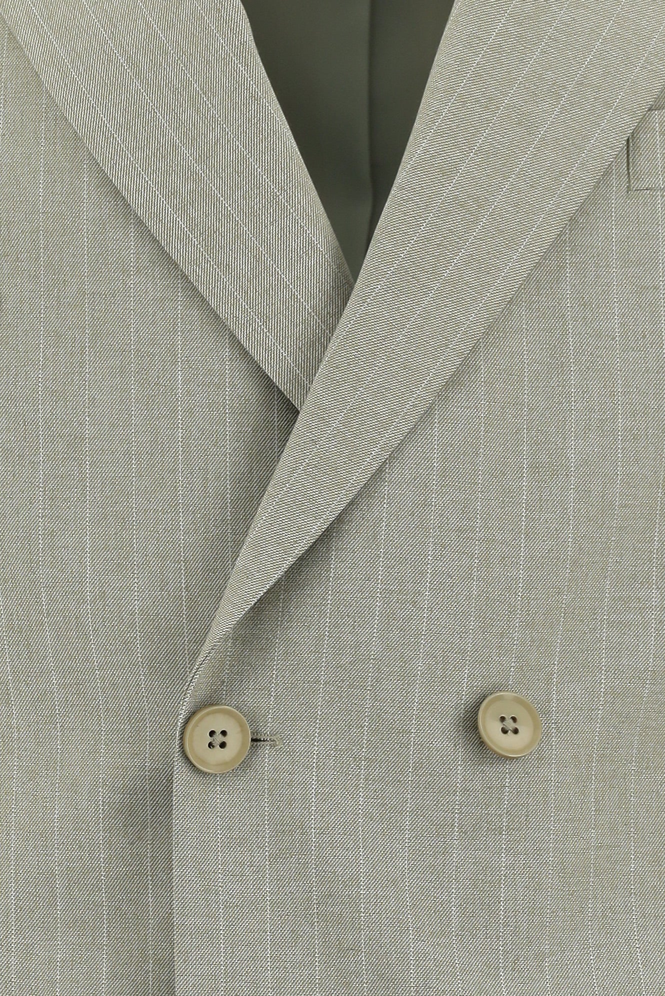 Açık Bej 6 Drop Regular Fit Standart Kesim Kruvaze Çizgili Takım Elbise