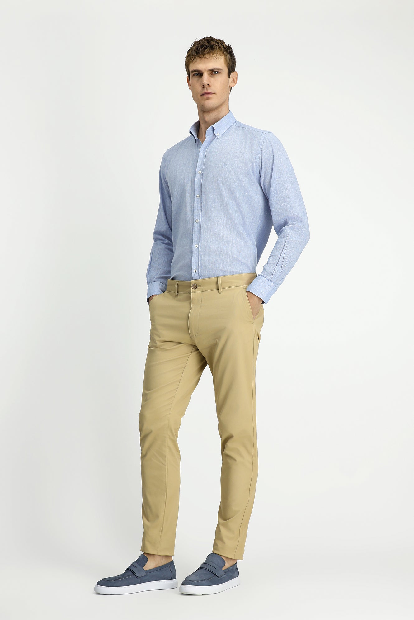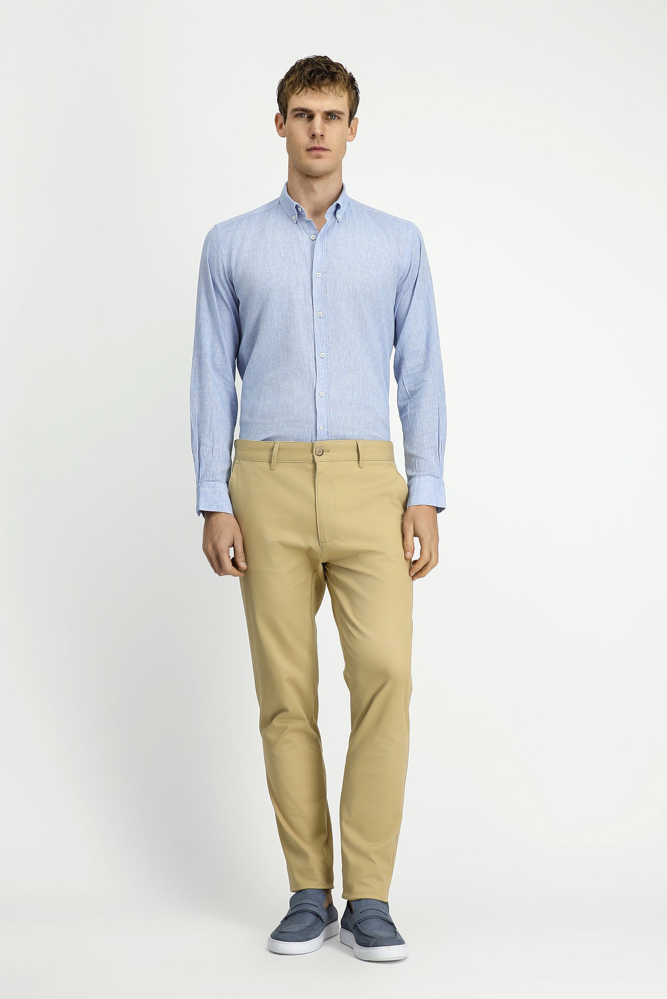 Açık Bej Regular Fit Likralı Kanvas / Chino Pantolon