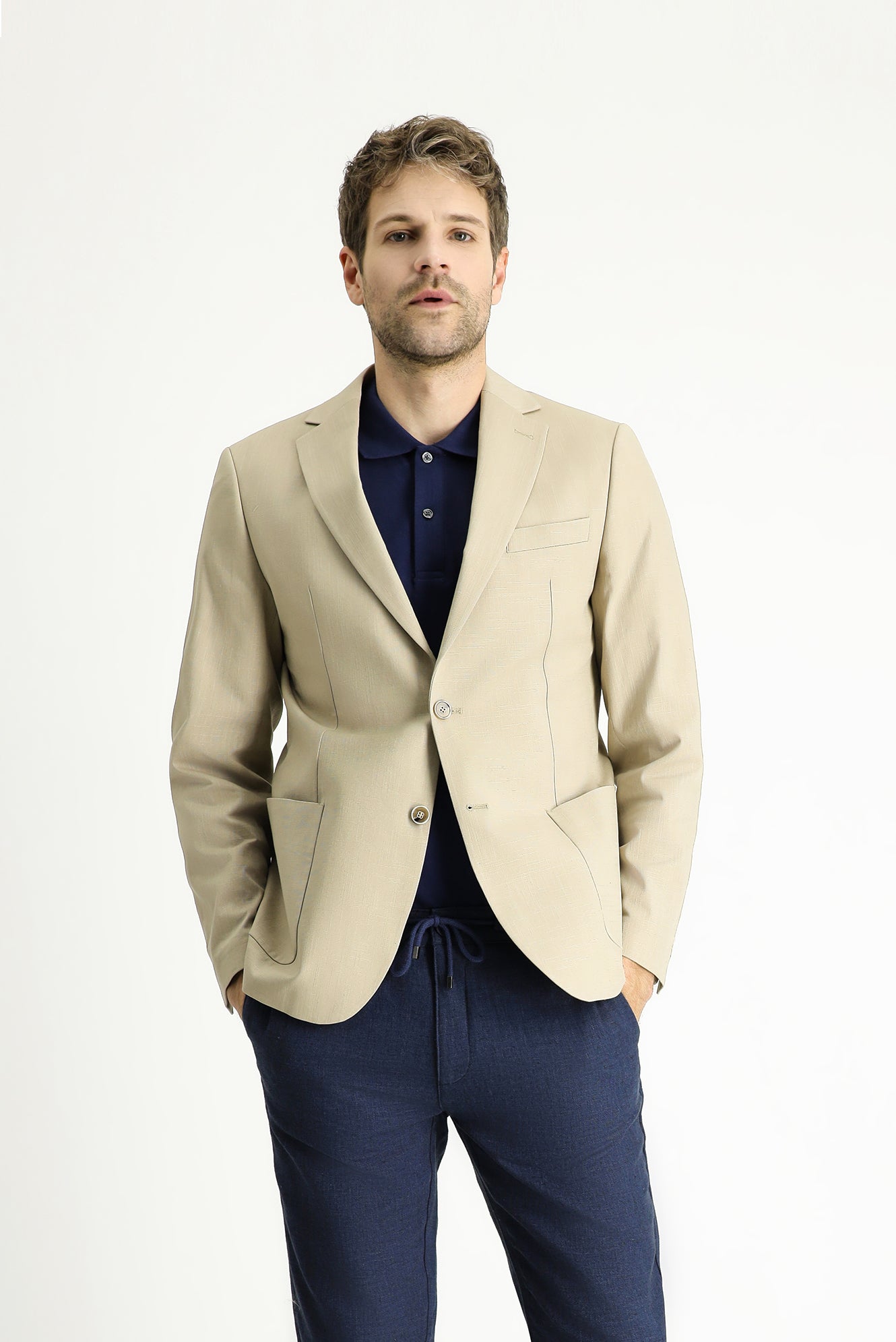 Açık Bej Regular Fit Pamuklu Spor Ceket