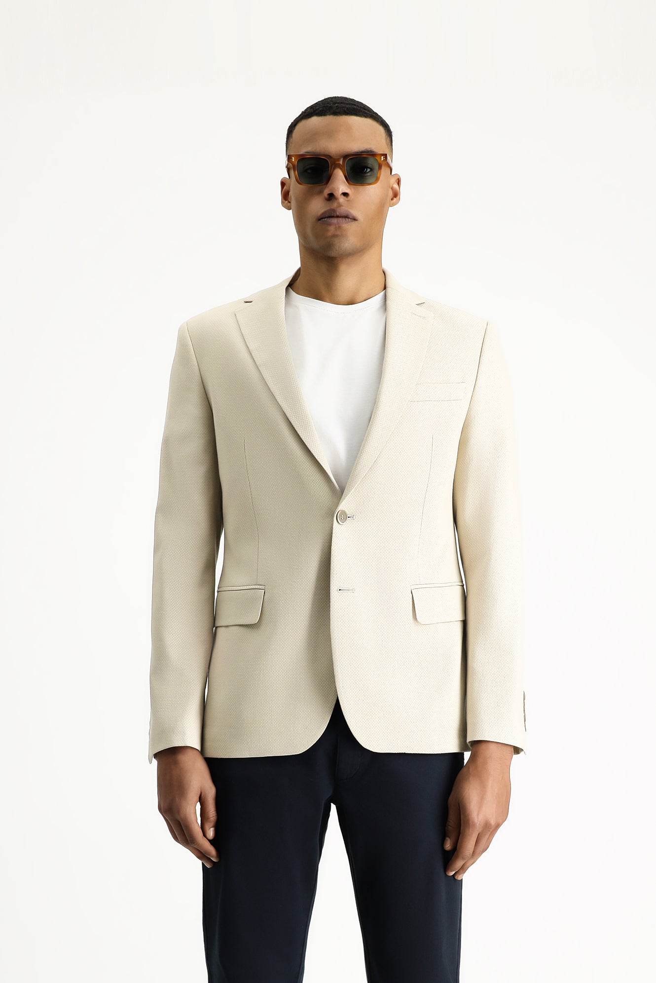 Açık Bej Relaxed Fit Rahat Kesim Klasik Desenli Ceket