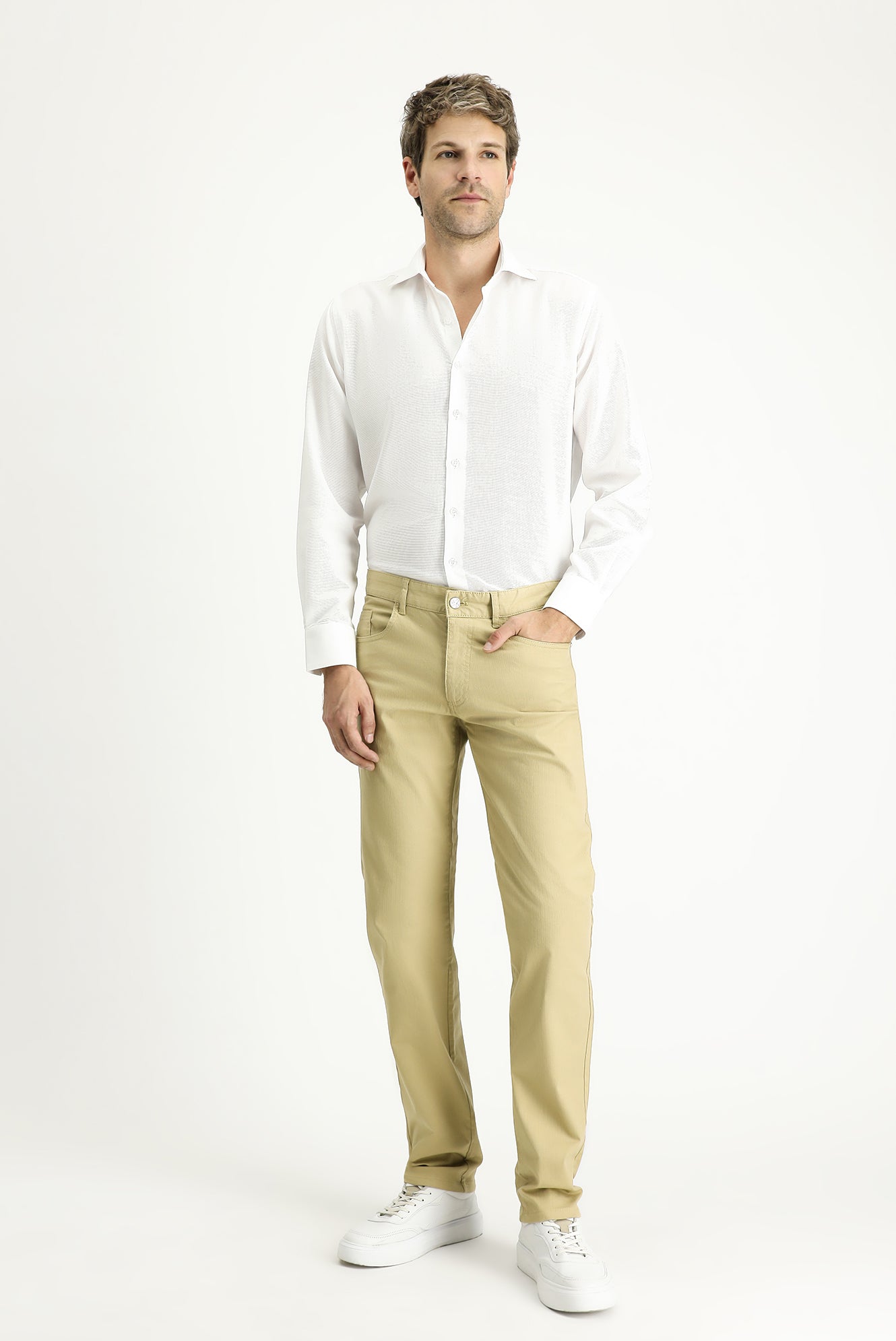 Açık Bej Relaxed Fit Rahat Kesim Likralı Kanvas / Chino Pantolon