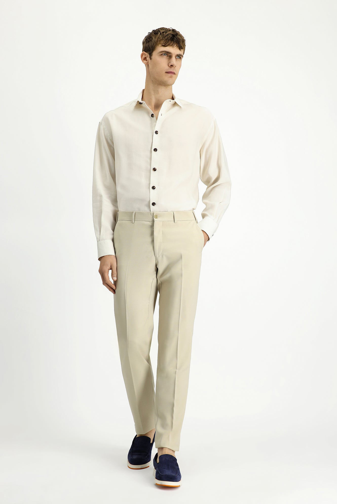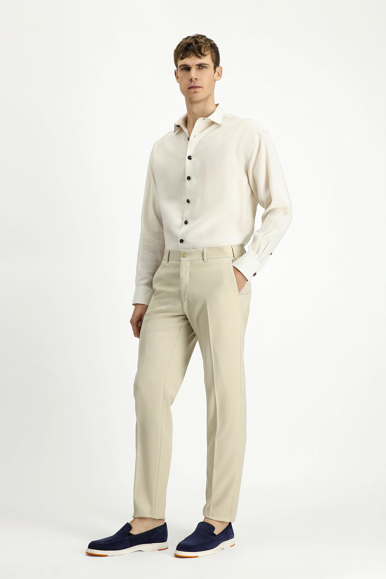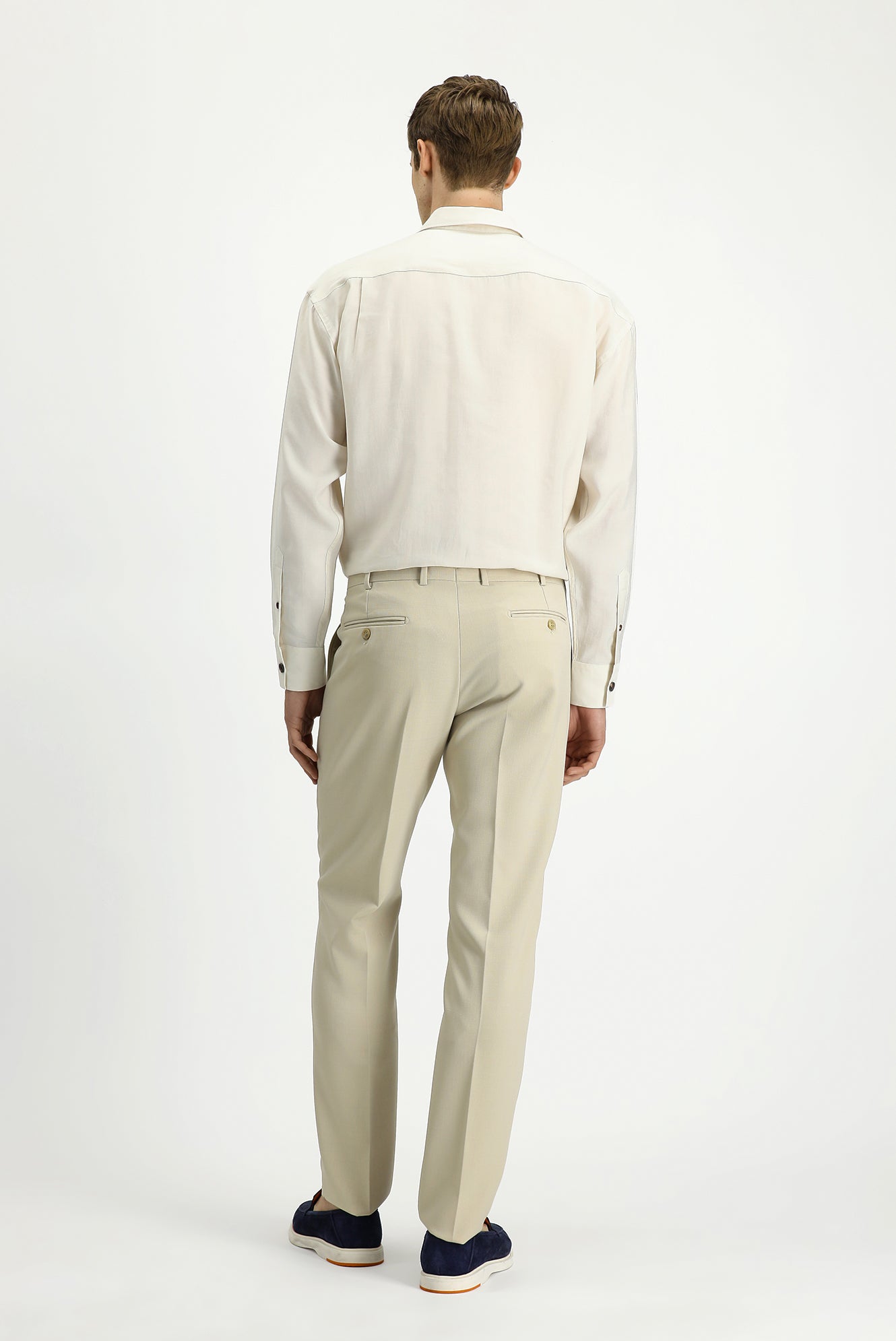 Açık Bej 4 Drop Relaxed Fit Rahat Kesim Likralı Klasik Kumaş Pantolon