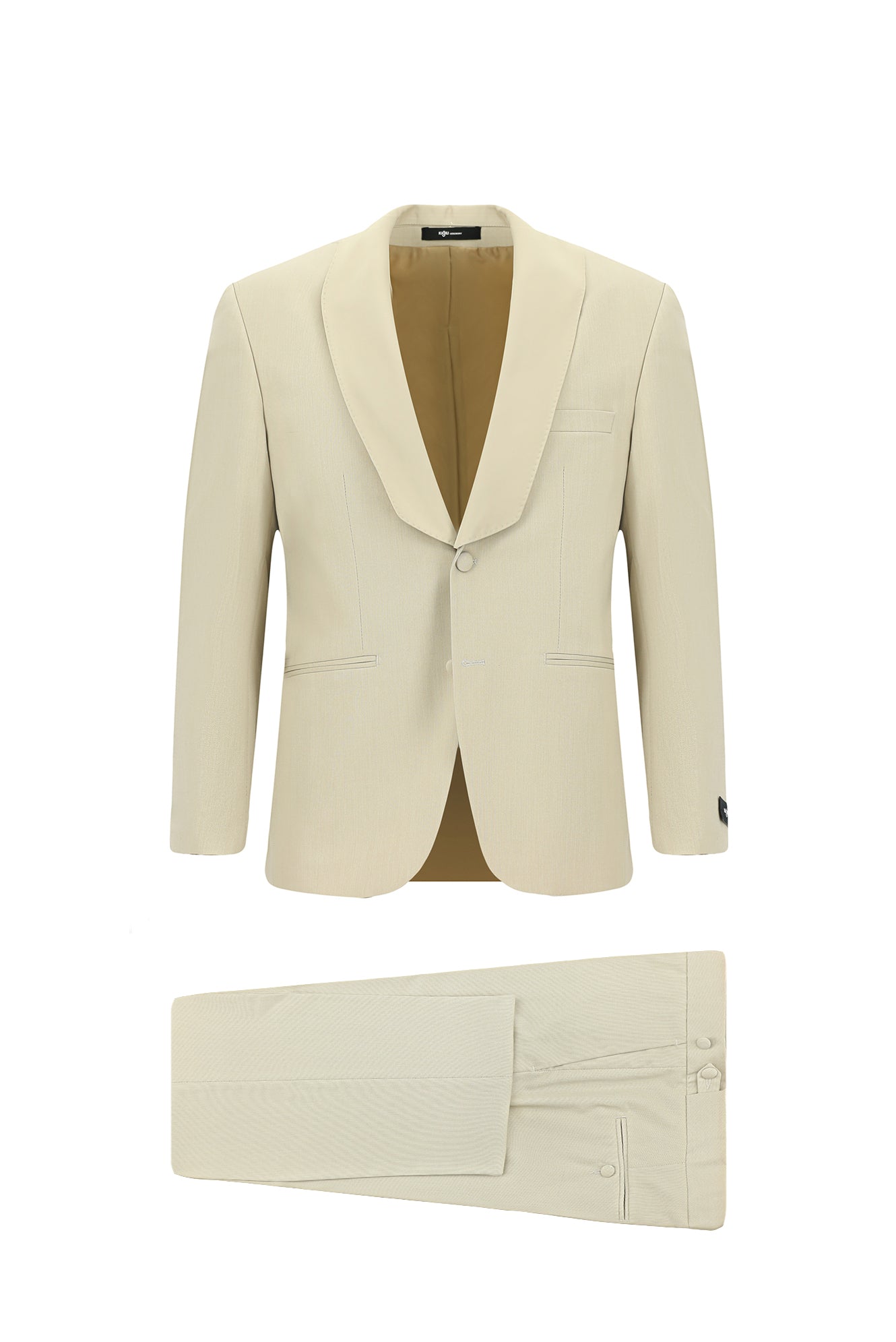Açık Bej 4 Drop Relaxed Fit Rahat Kesim Şal Yaka Smokin & Damatlık