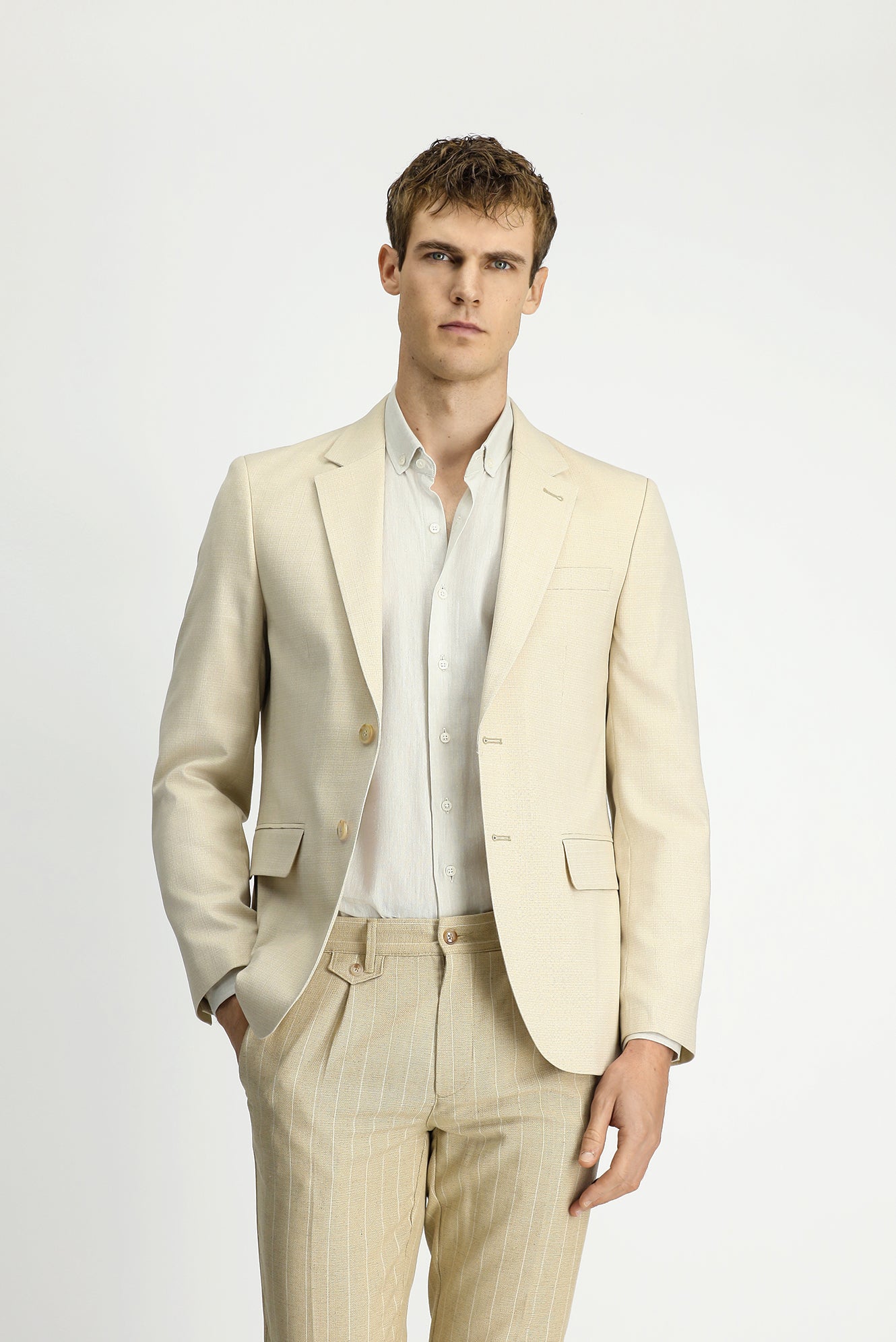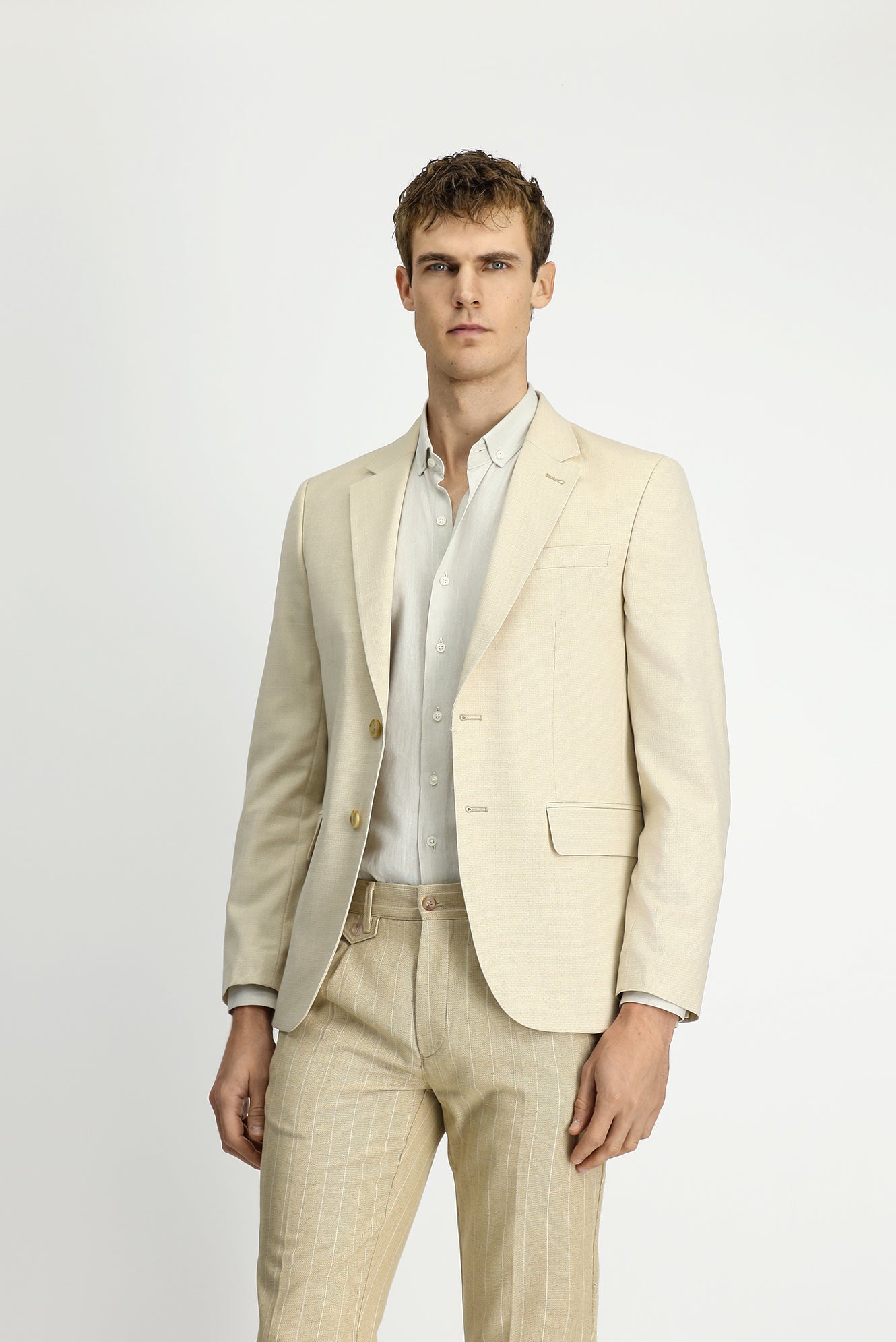 Açık Bej Slim Fit Dar Kesim Klasik Ceket
