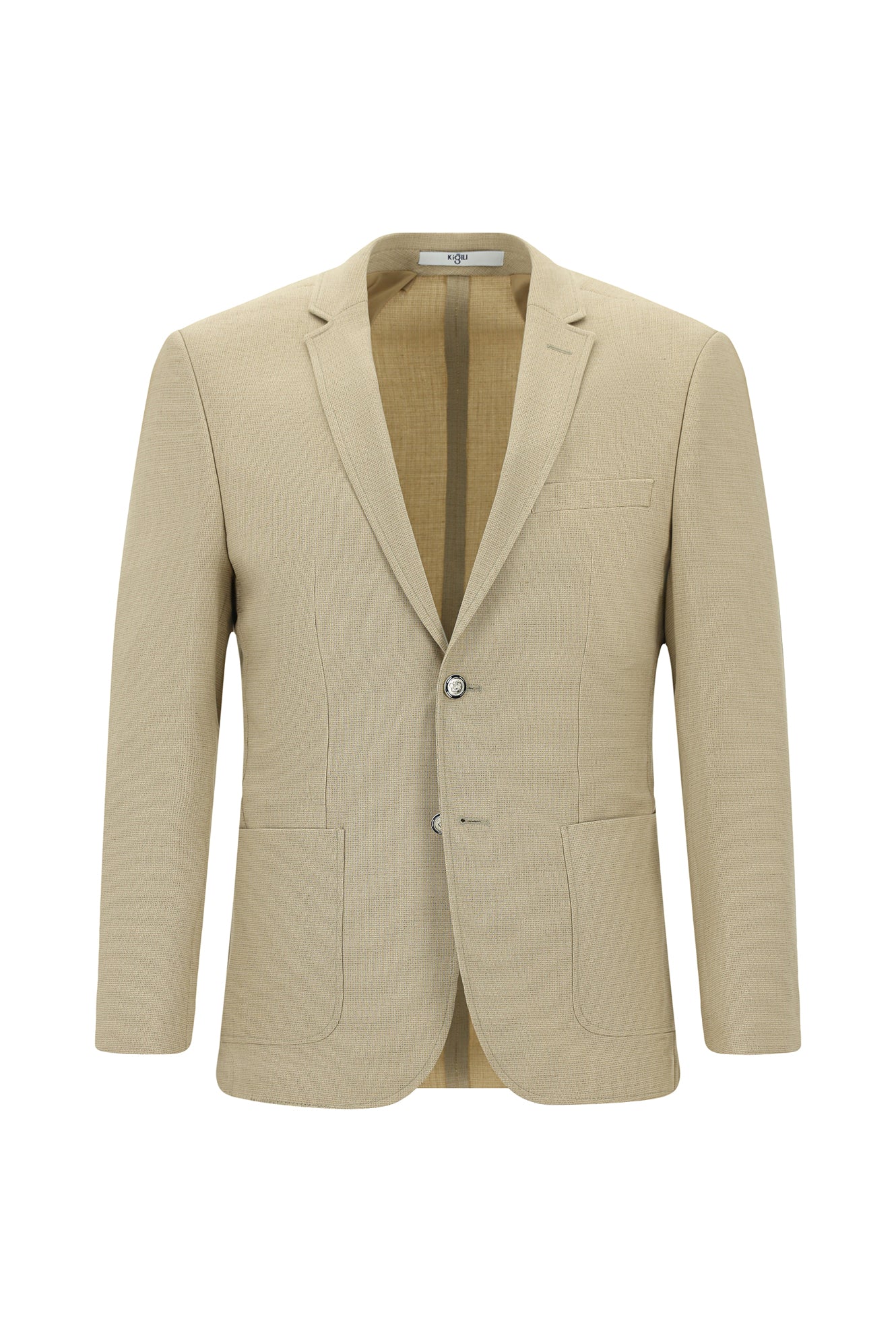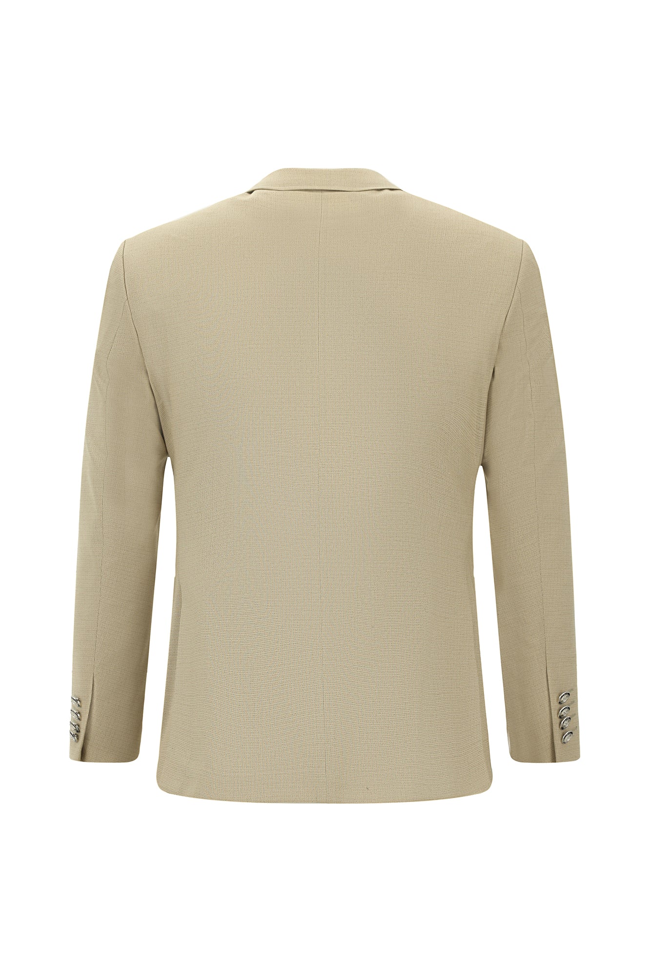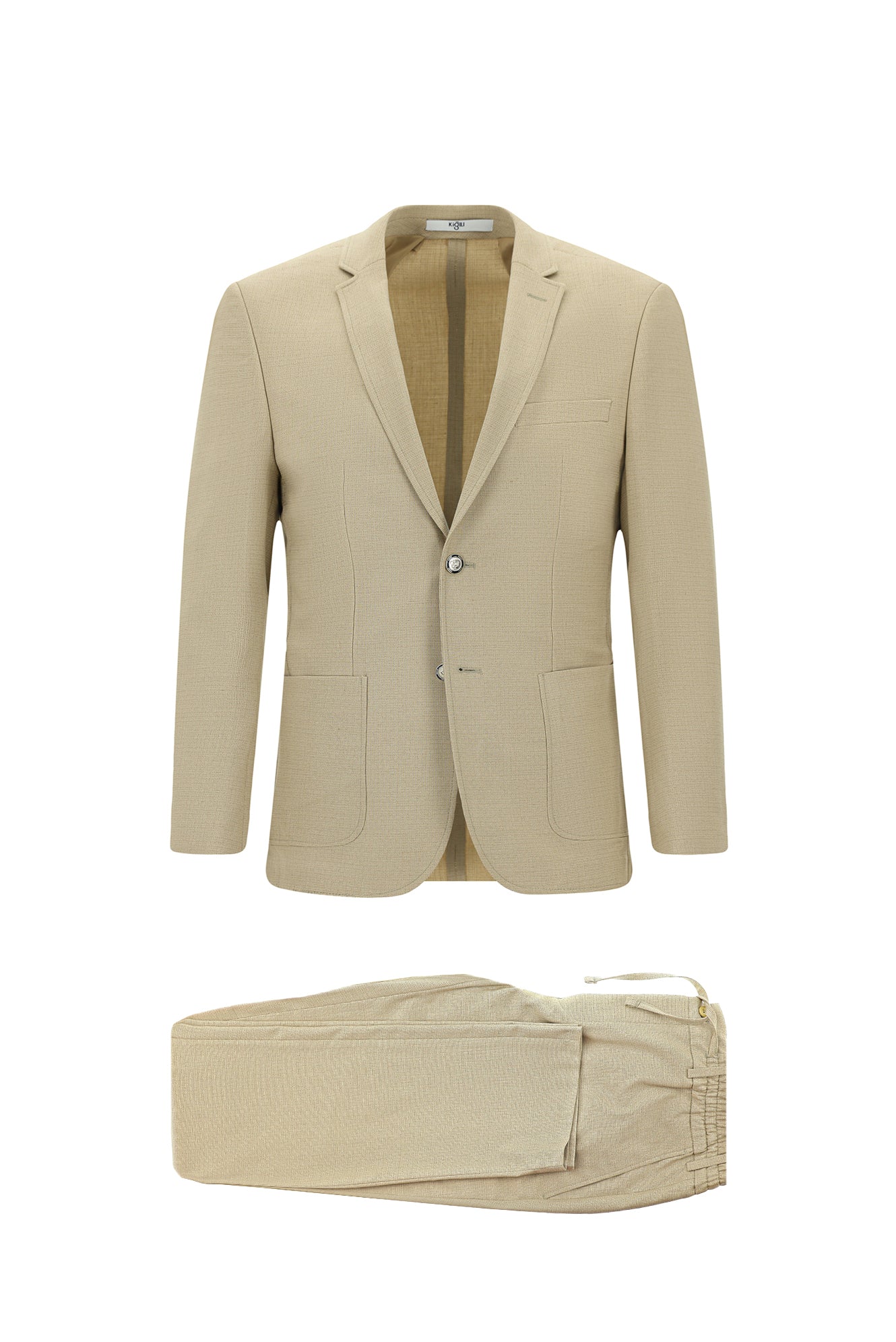 Açık Bej Super Slim Fit Ekstra Dar Kesim Desenli Beli Lastikli İpli Spor Takım Elbise