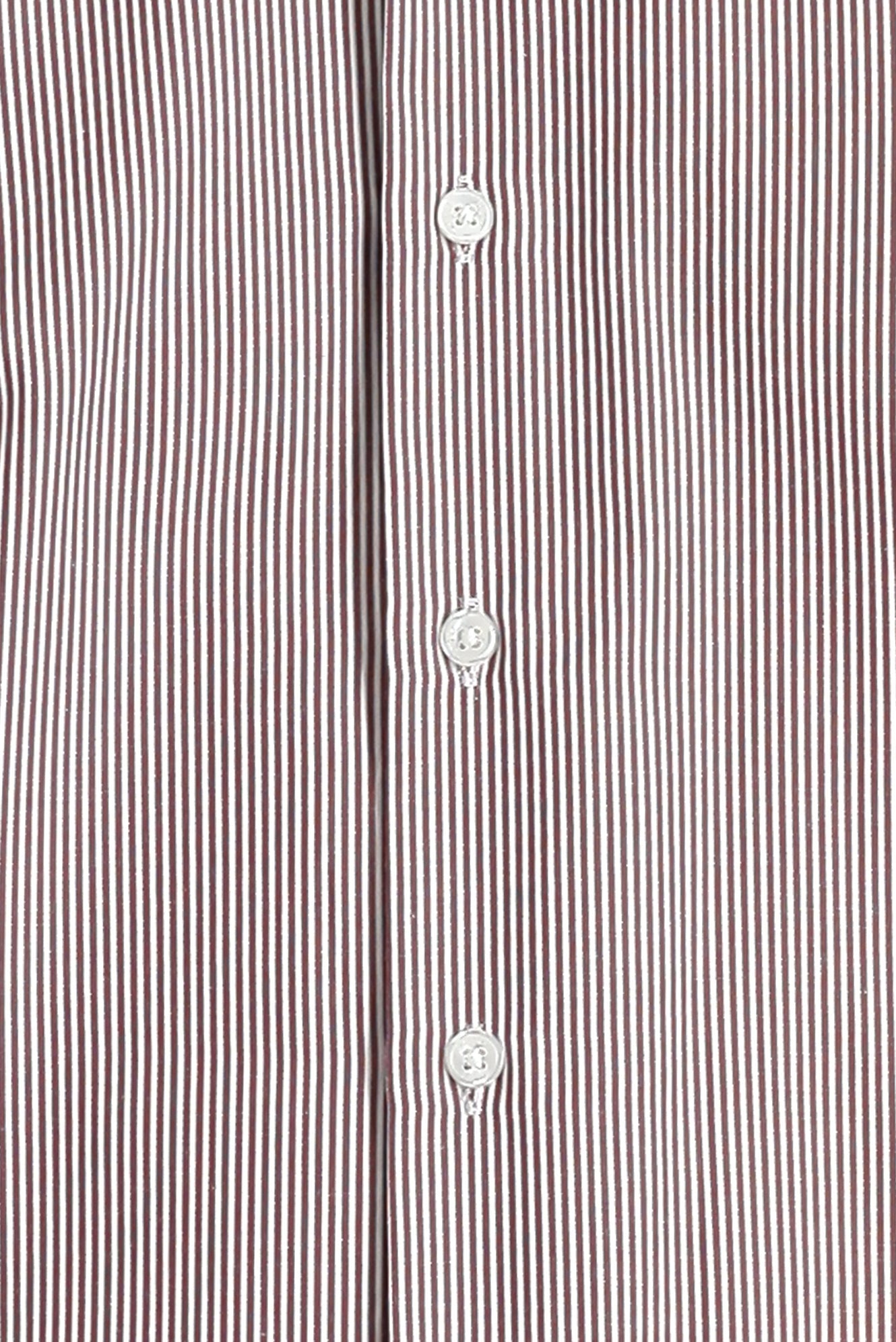 Açık Bordo Uzun Kol Slim Fit Dar Kesim Çizgili Pamuklu Kolay Ütülenebilir Gömlek