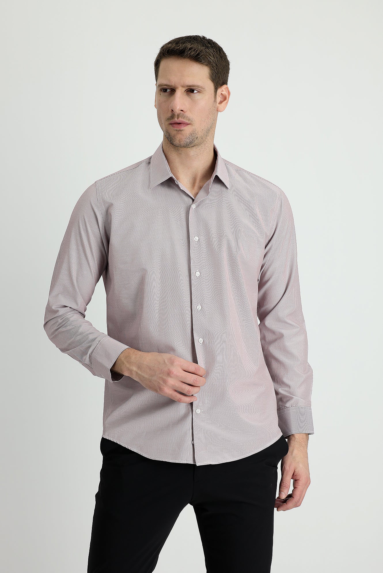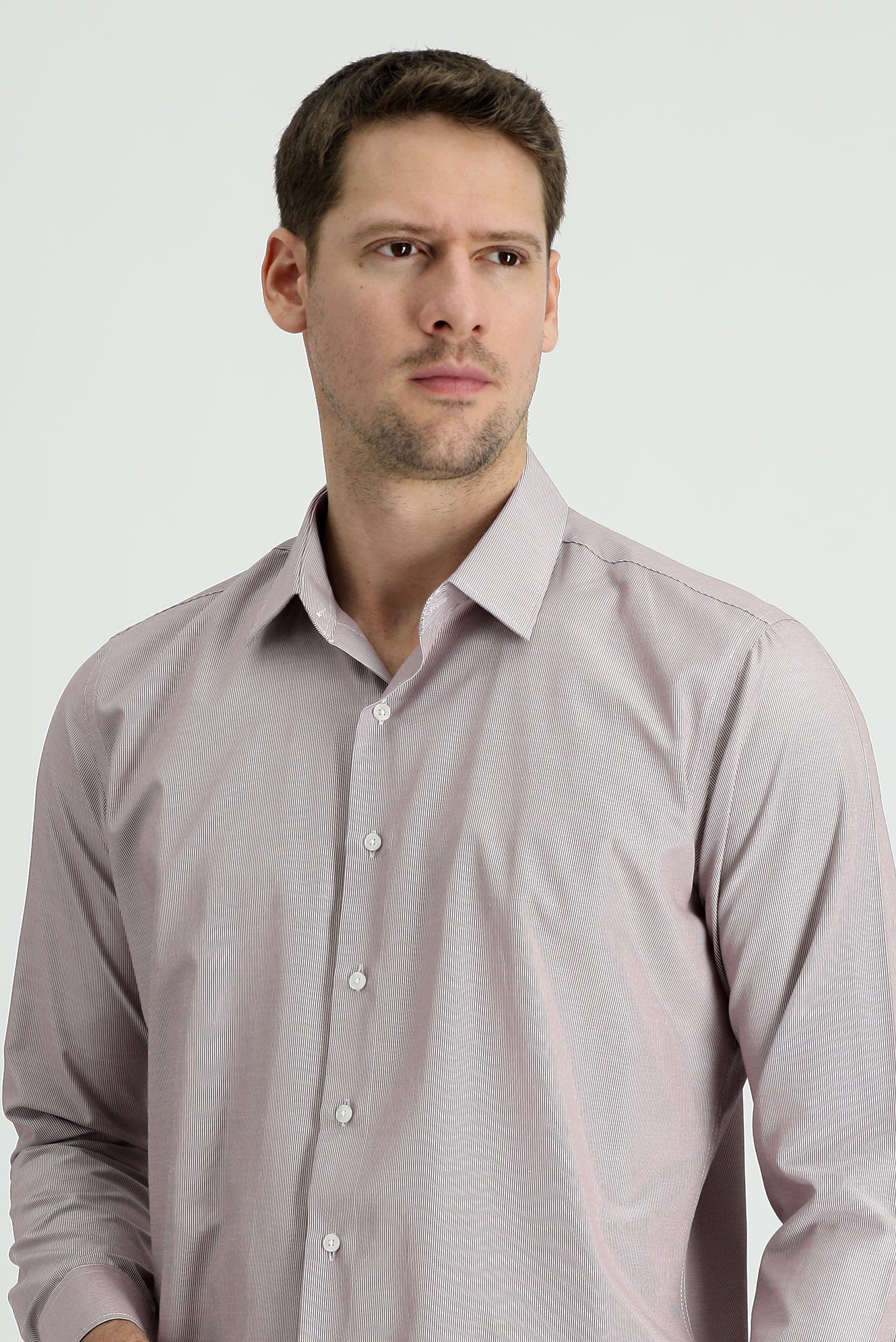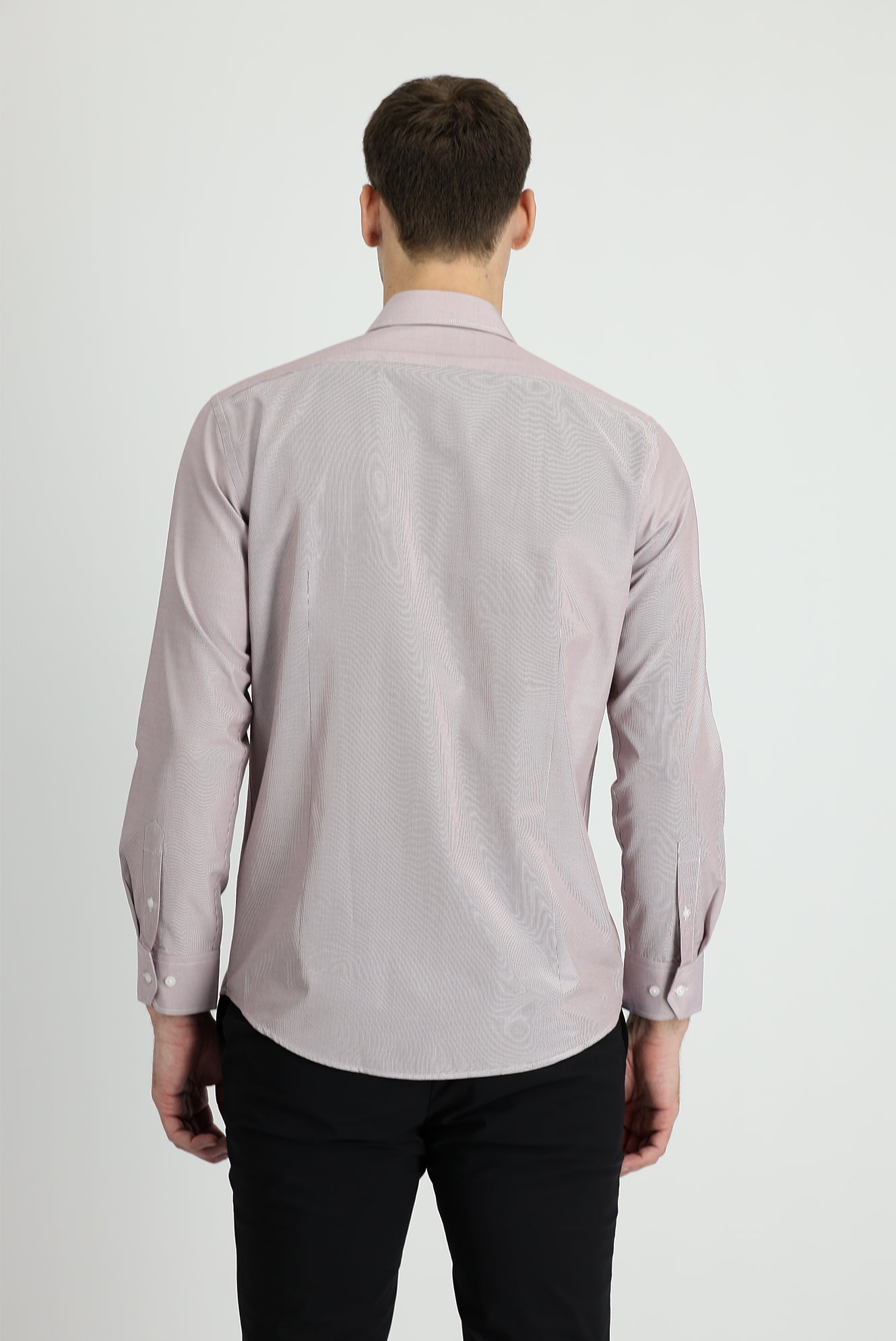 Açık Bordo Uzun Kol Slim Fit Dar Kesim Klasik Çizgili Pamuklu Kolay Ütülenebilir Gömlek