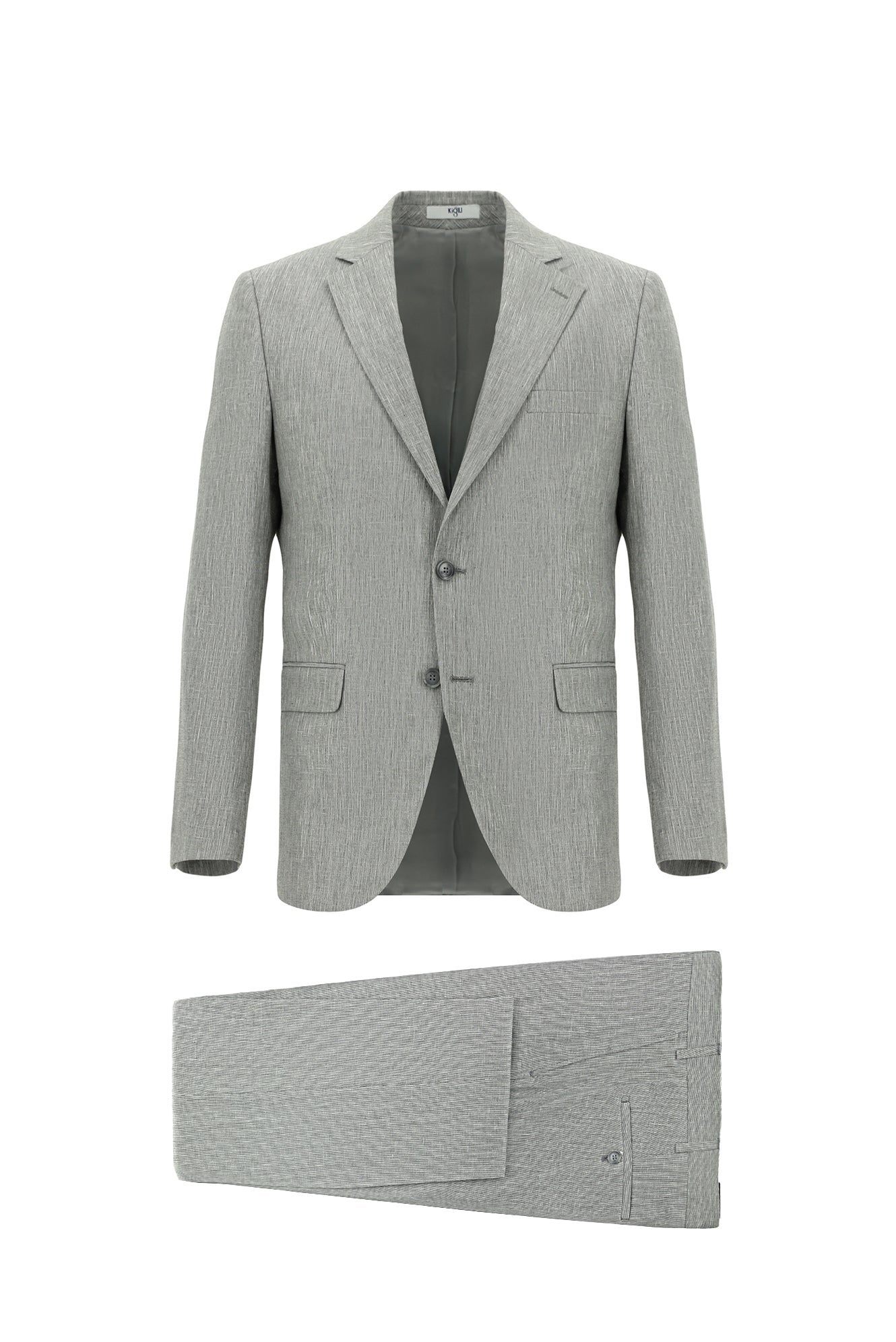 Açık Füme 7 Drop Slim Fit Dar Kesim Keten Karışımlı Takım Elbise