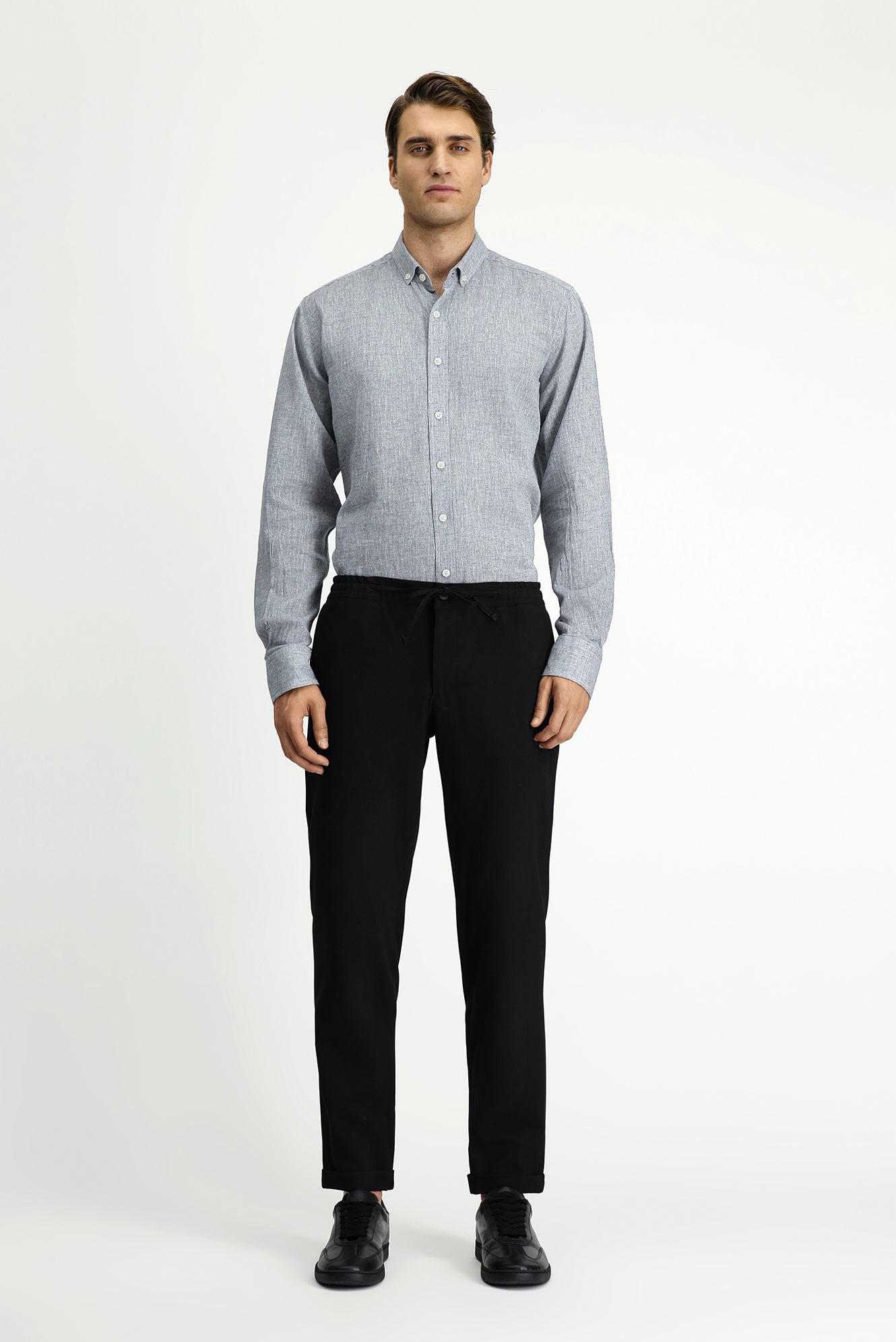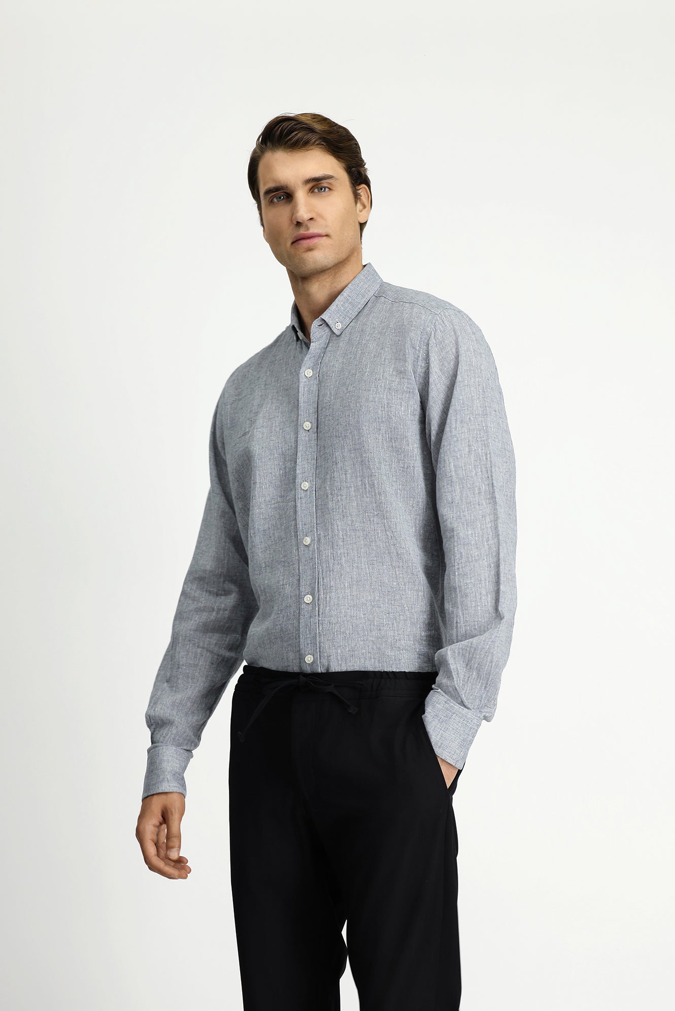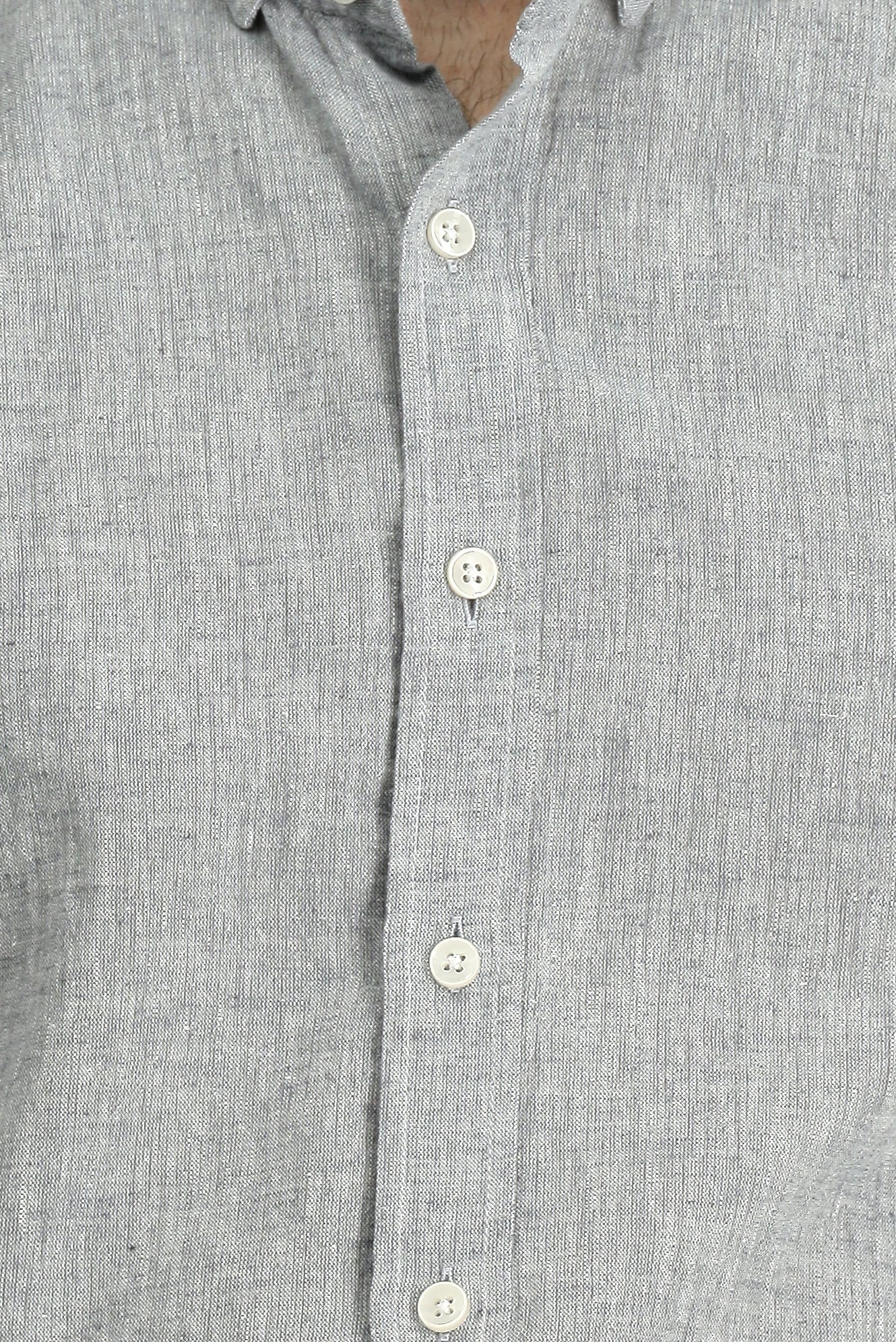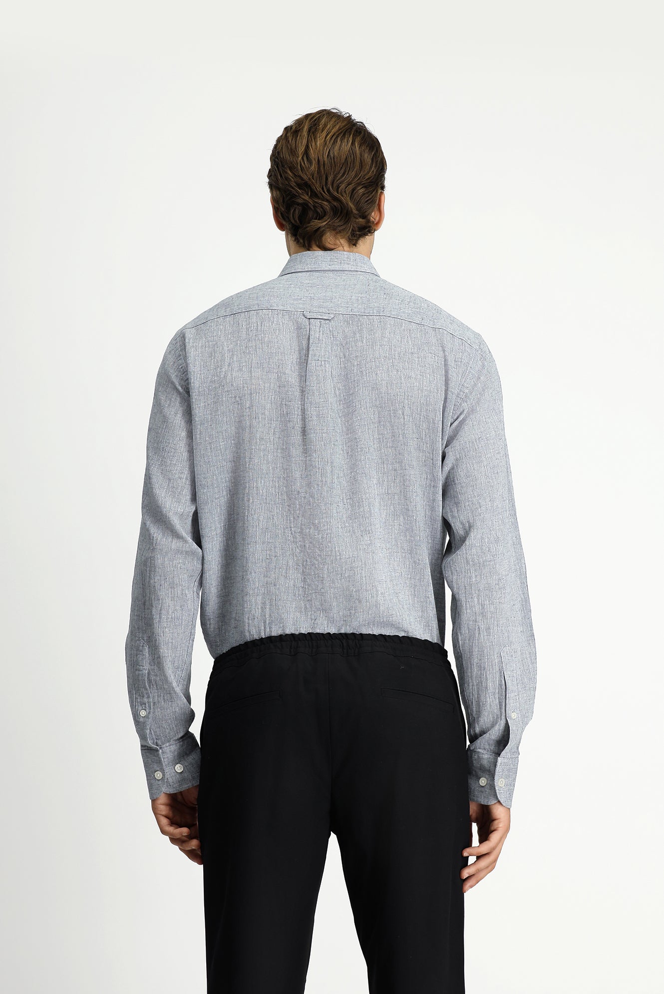 Açık Füme Uzun Kol Regular Fit Düğmeli Yaka Pamuklu Keten Gömlek