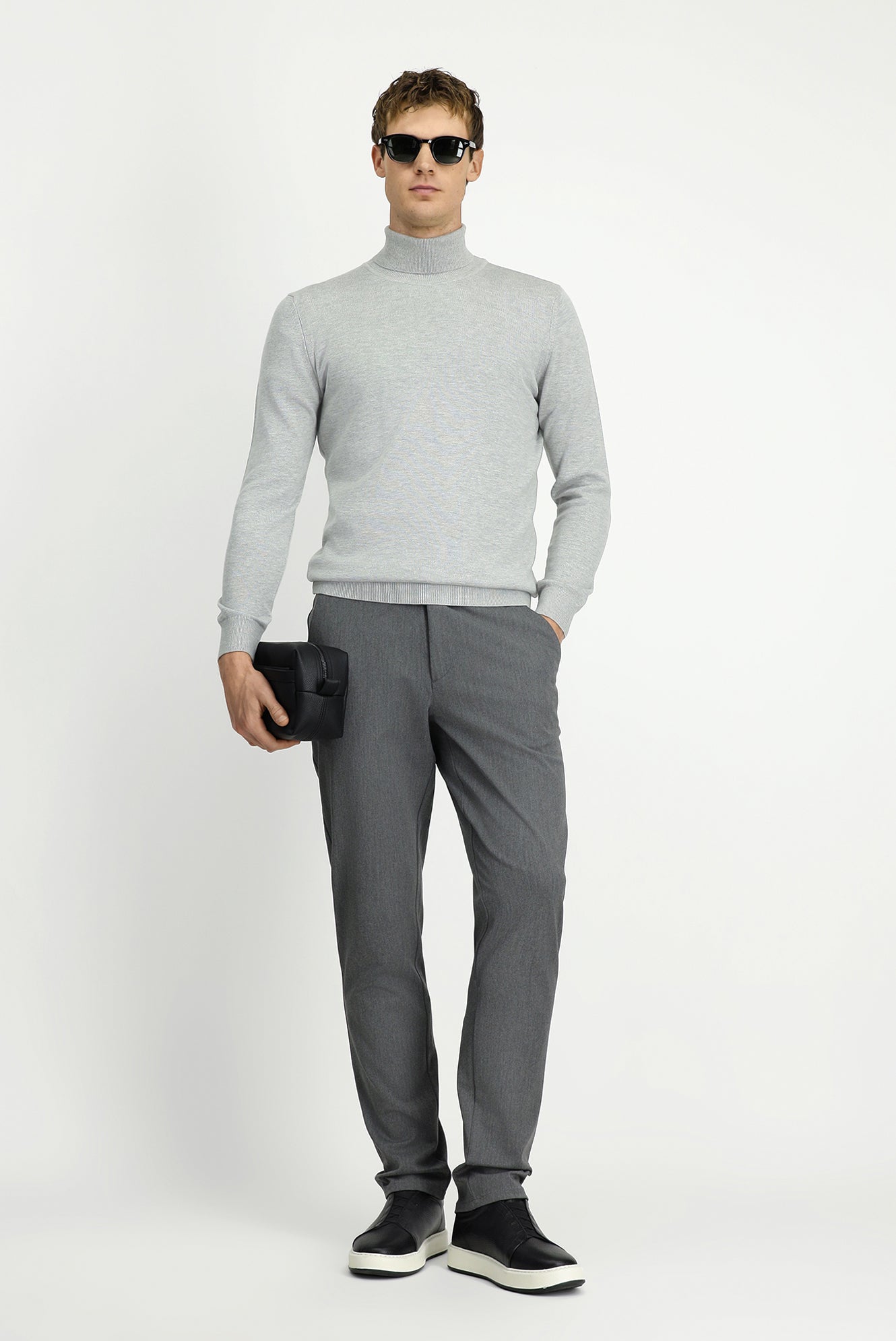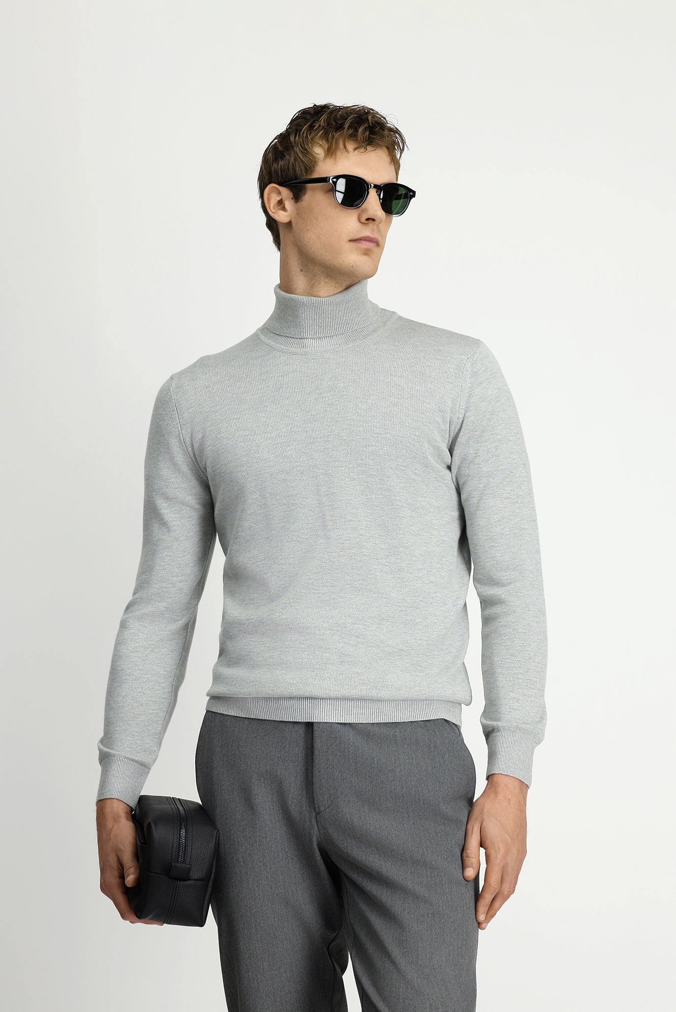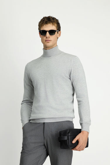 Açık Gri Balıkçı Yaka Regular Fit Pamuklu Örme Triko Kazak