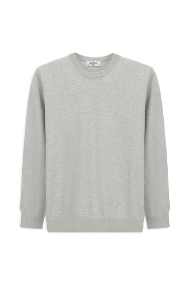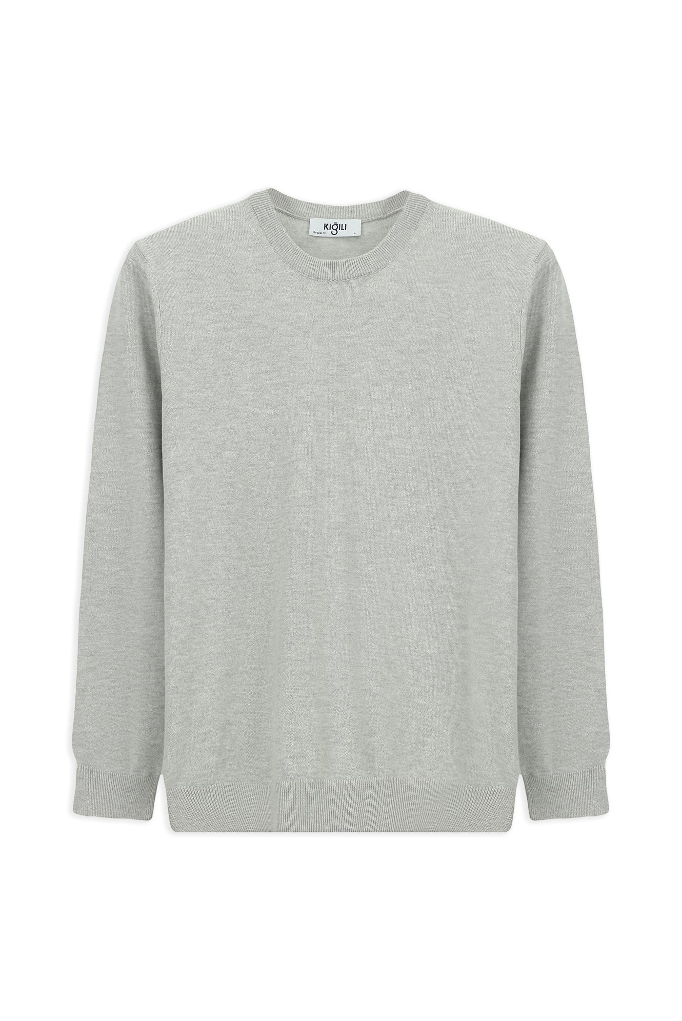 Açık Gri Bisiklet Yaka Regular Fit Pamuklu Triko Kazak