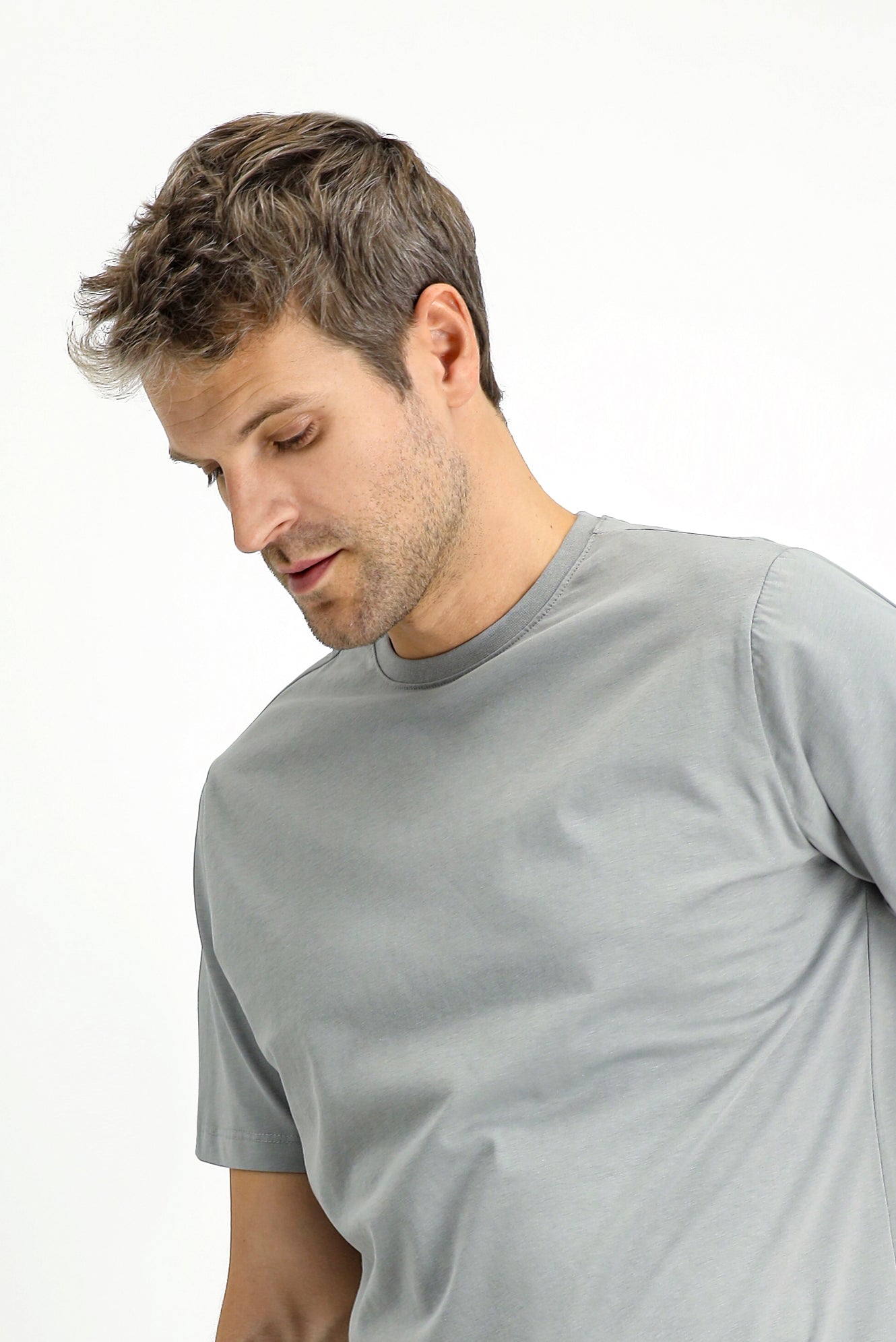 Açık Gri Melanj Bisiklet Yaka Regular Fit Süprem Pamuk Tişört