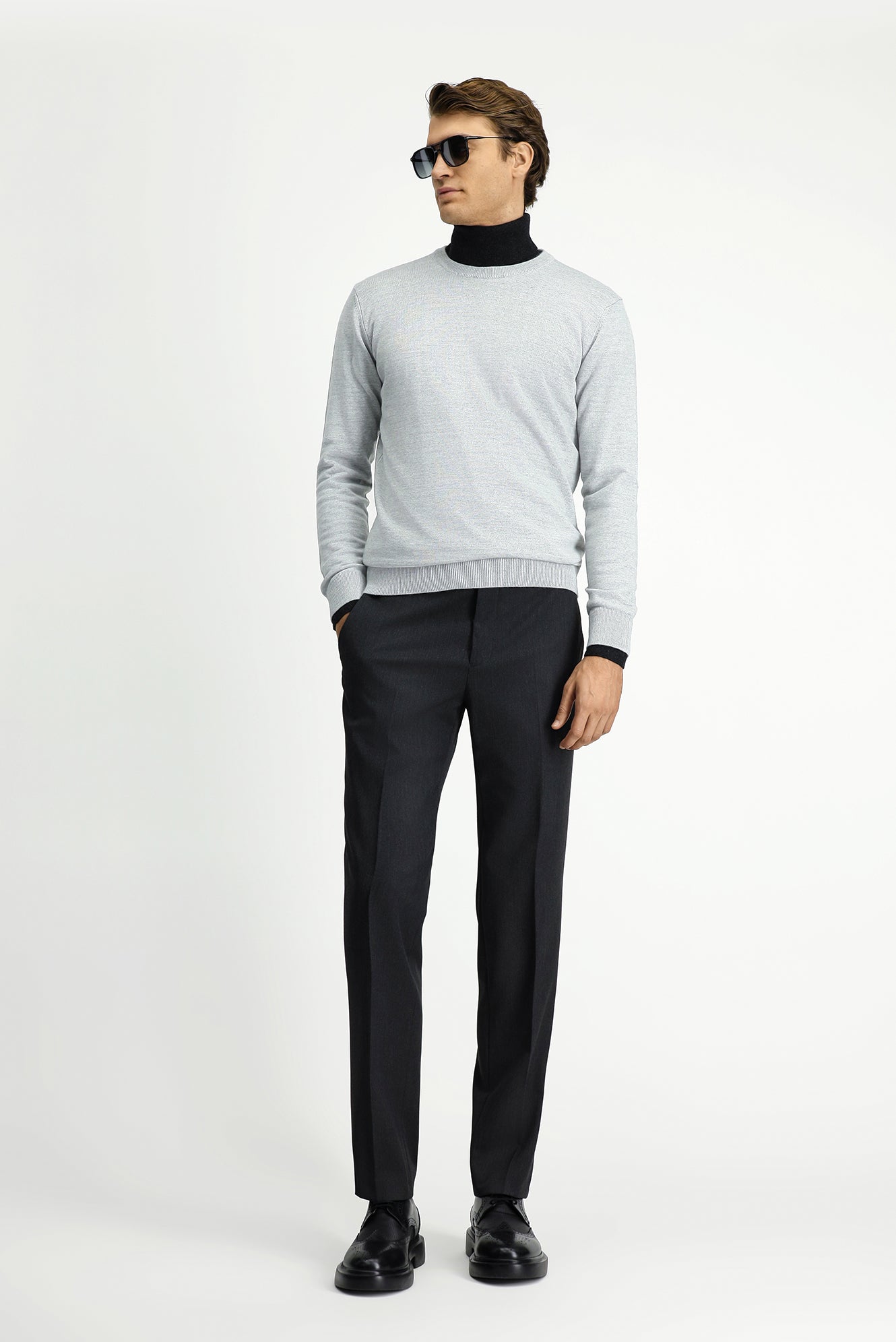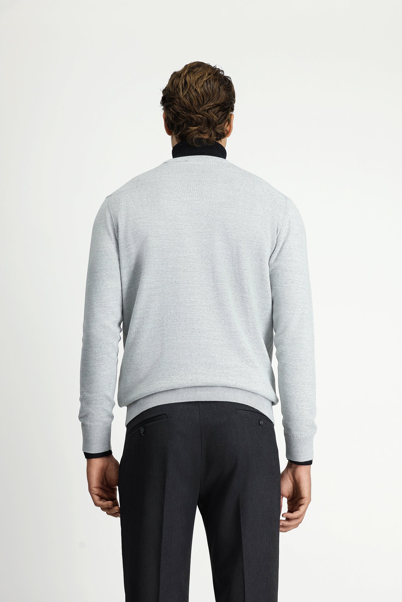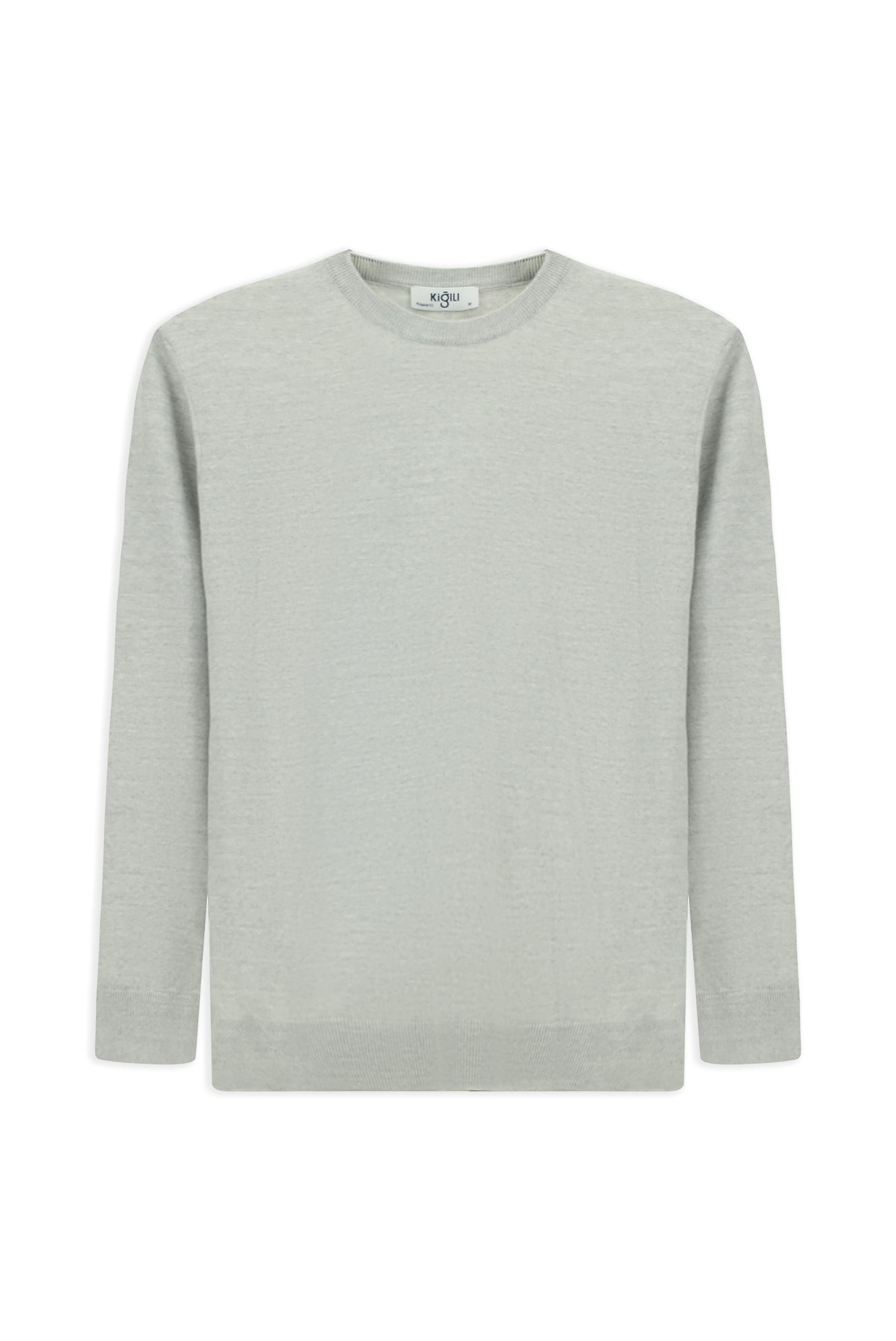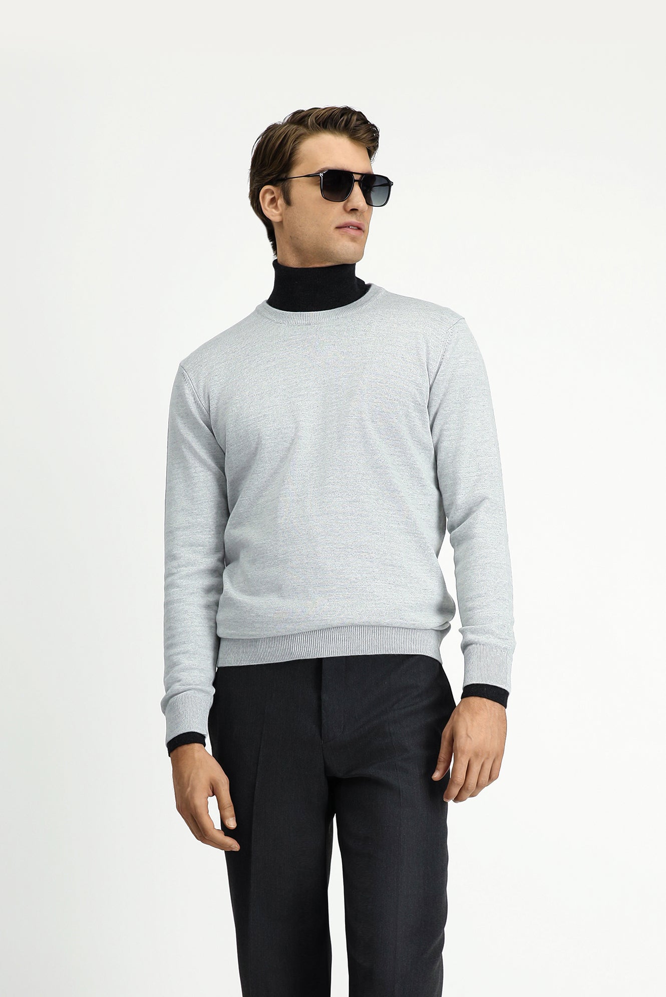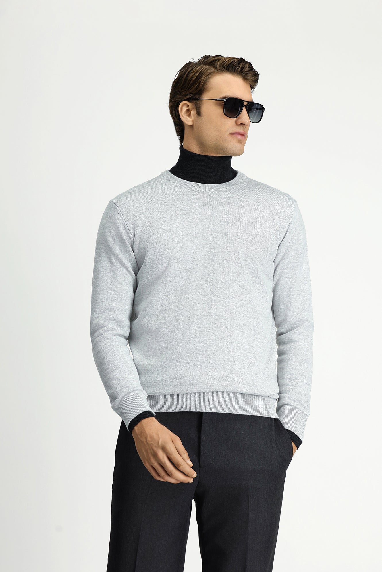 Açık Gri Melanj Bisiklet Yaka Regular Fit Yünlü Triko Kazak