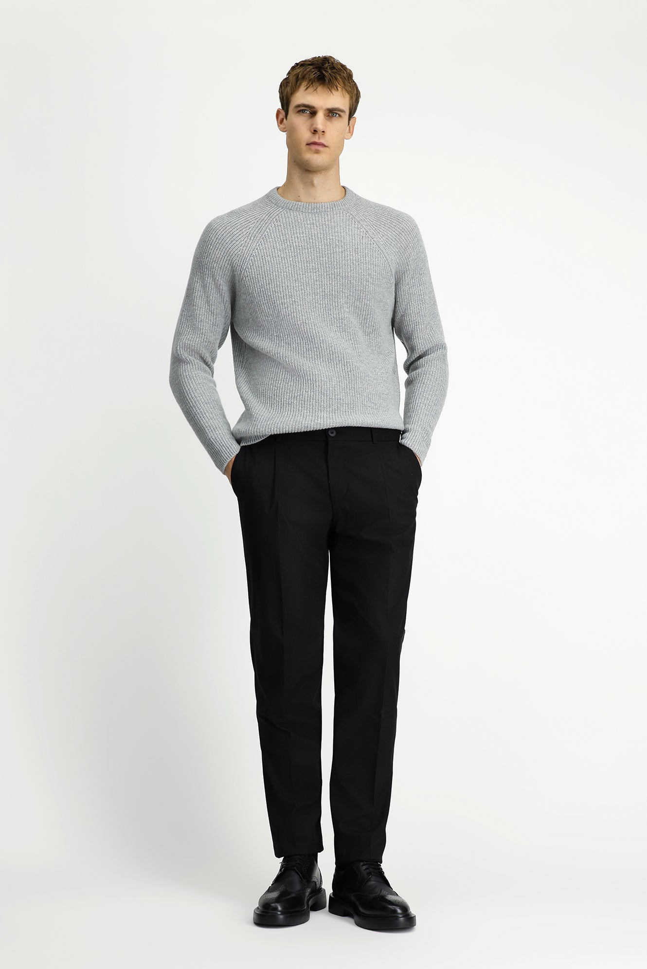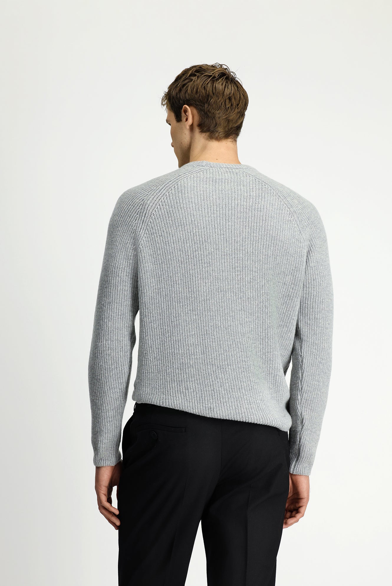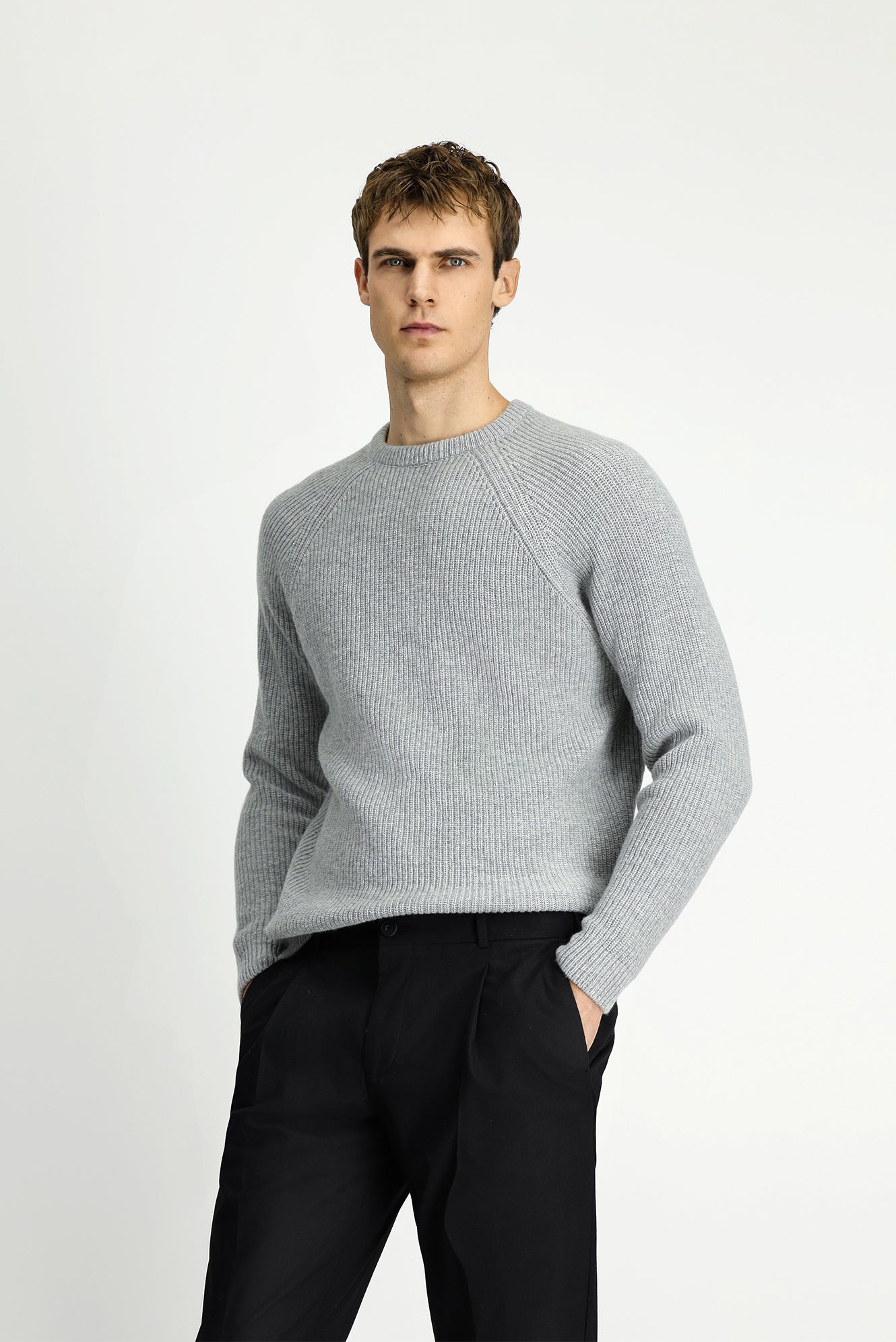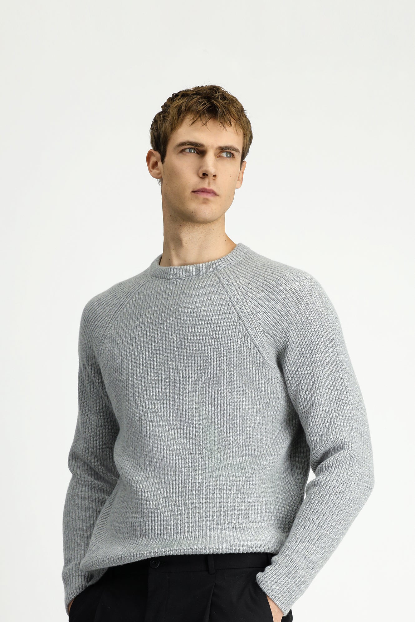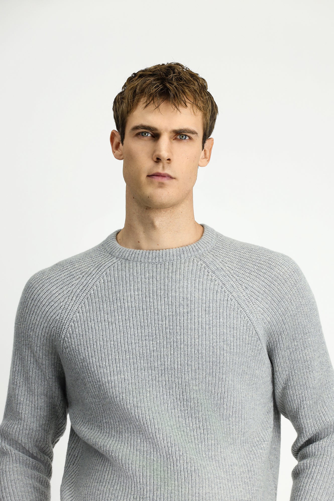 Açık Gri Melanj Bisiklet Yaka Regular Fit Yünlü Triko Kazak