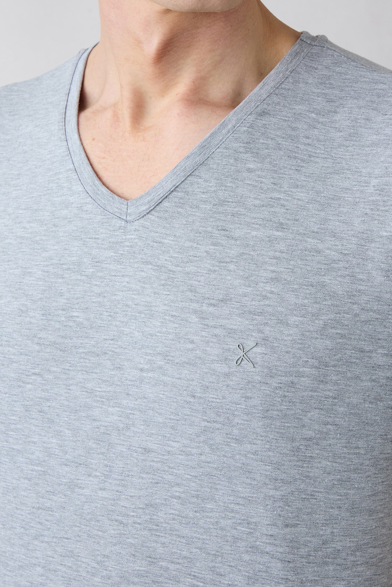 Açık Gri Melanj V Yaka Slim Fit Süprem Pamuklu Basic Tişört