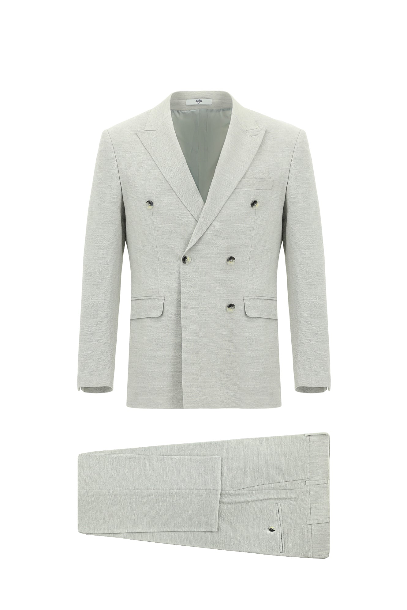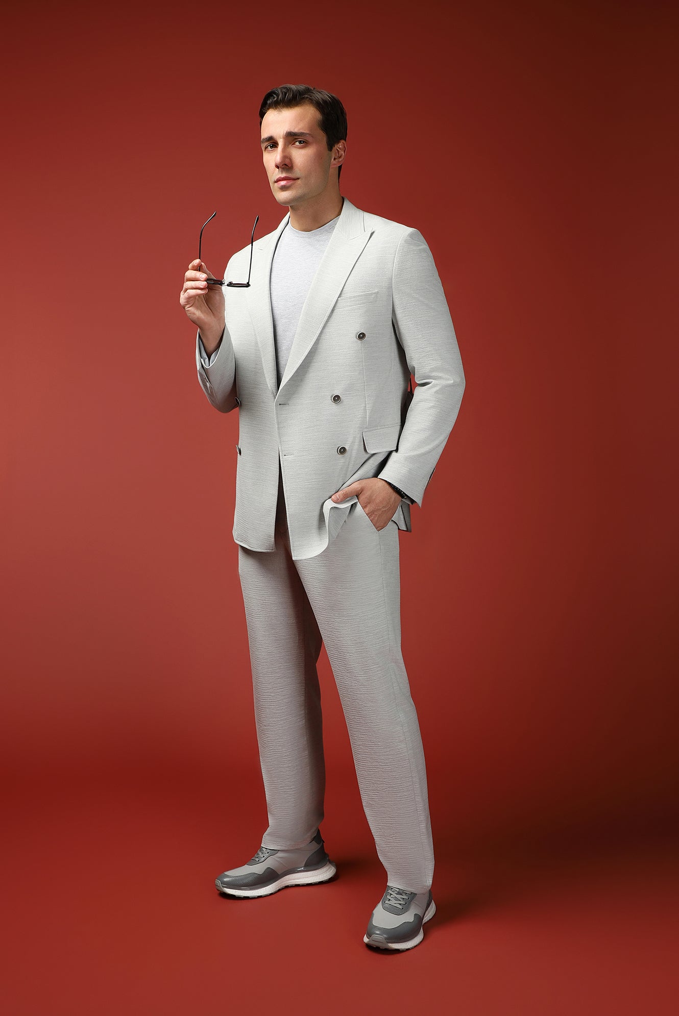 Açık Gri Regular Fit Keten Karışımlı Kruvaze Takım Elbise