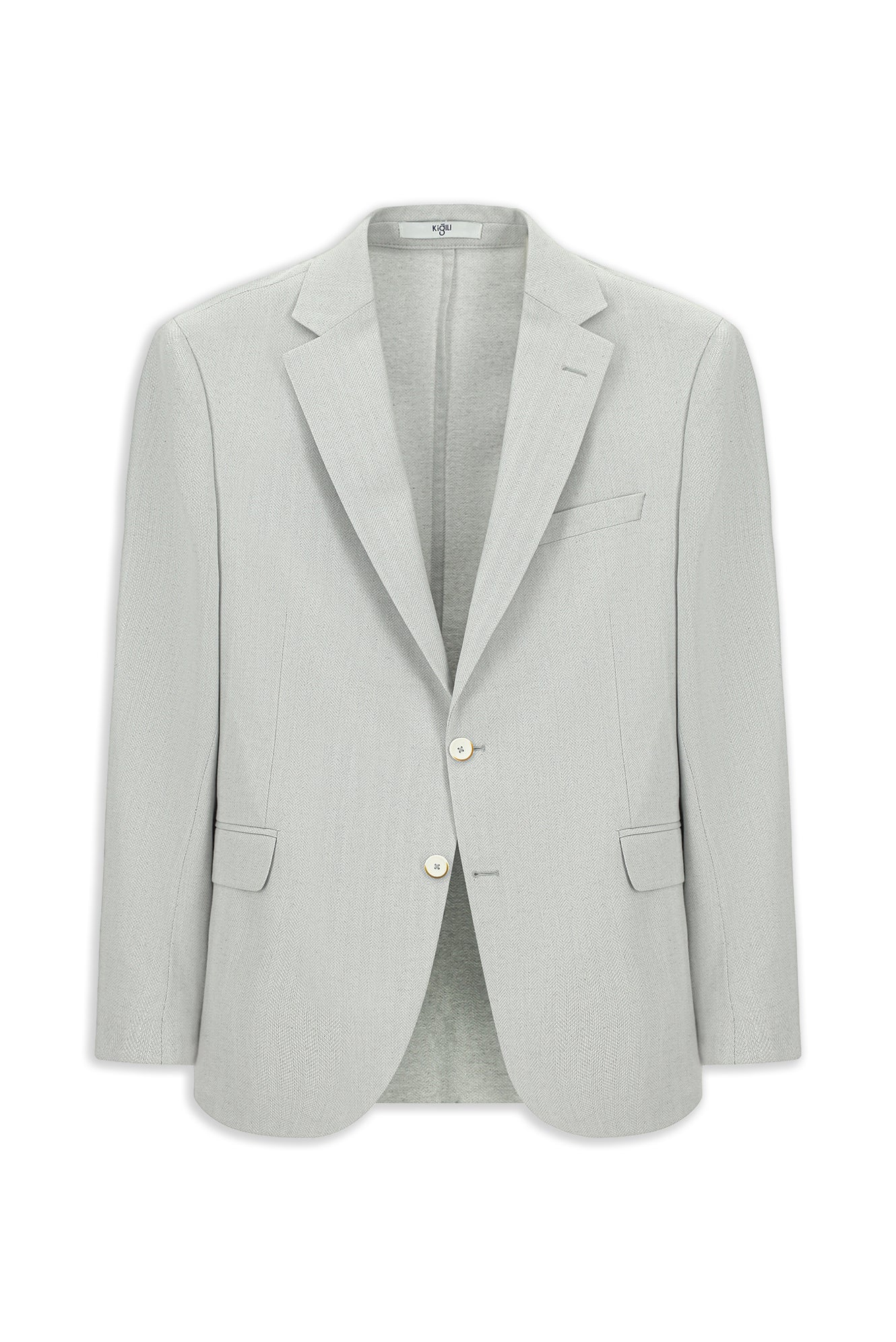 Açık Gri Regular Fit Klasik Desenli Keten Karışımlı Ceket