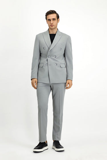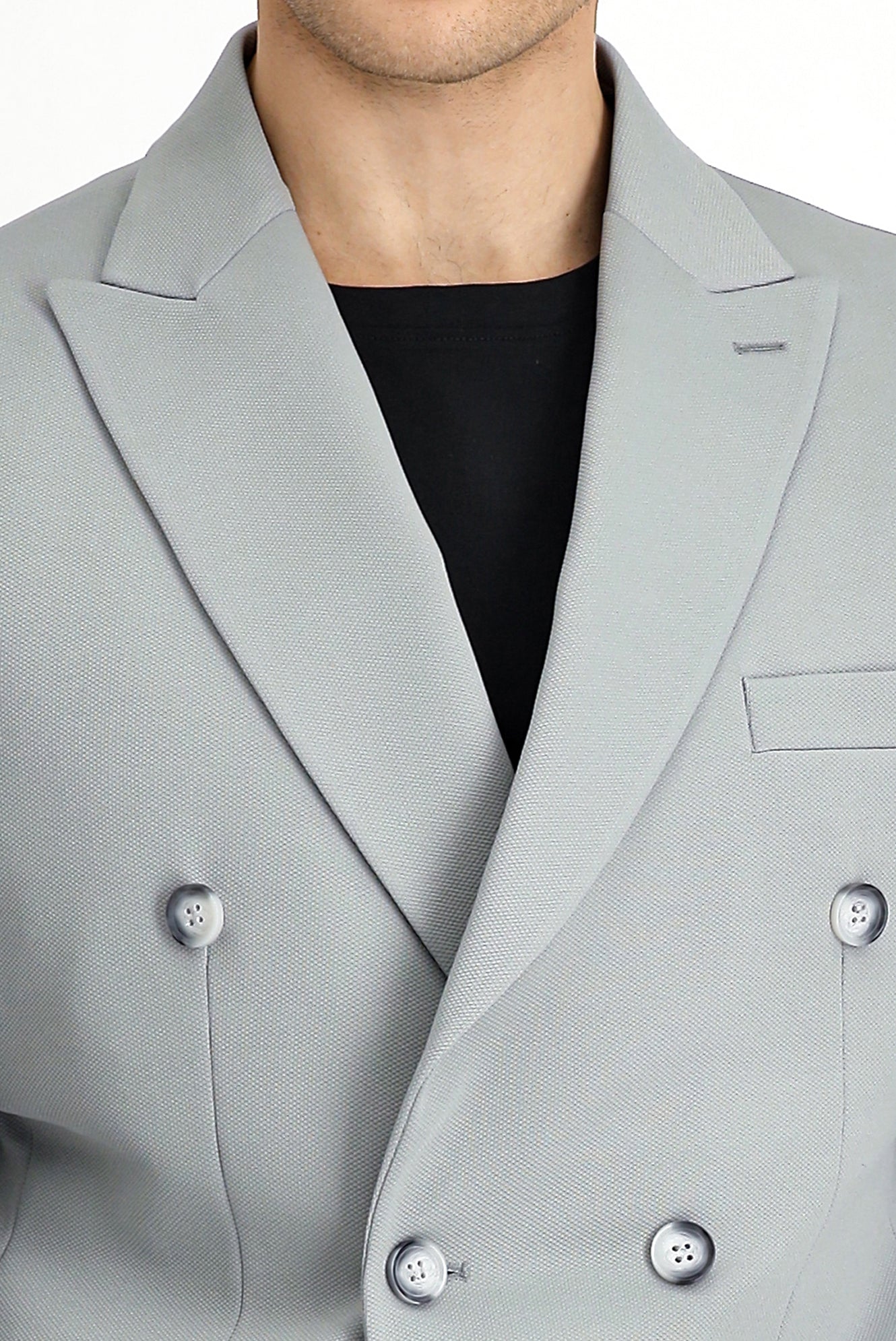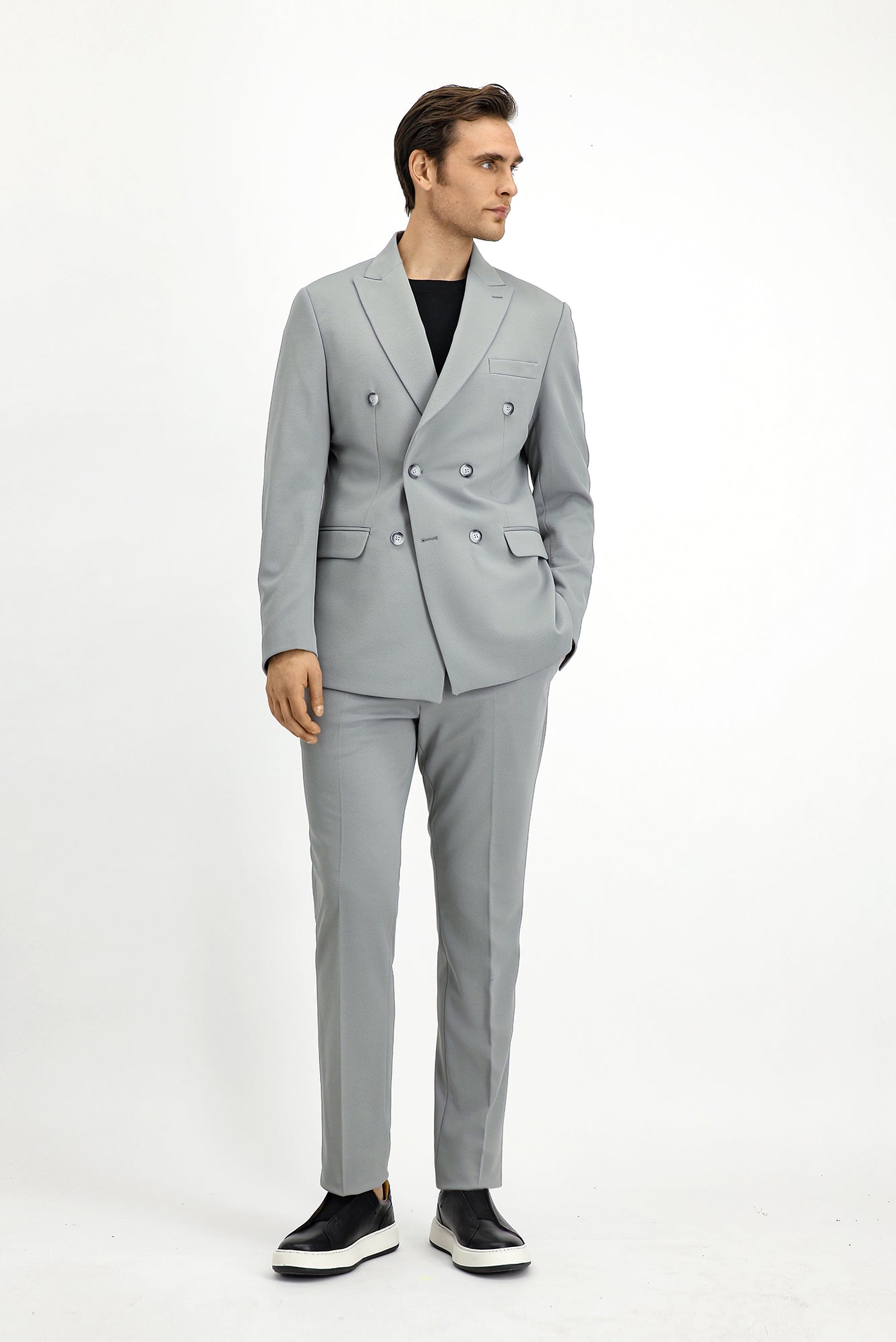 Açık Gri 6 Drop Regular Fit Standart Kesim Mevsimlik Kruvaze Takım Elbise