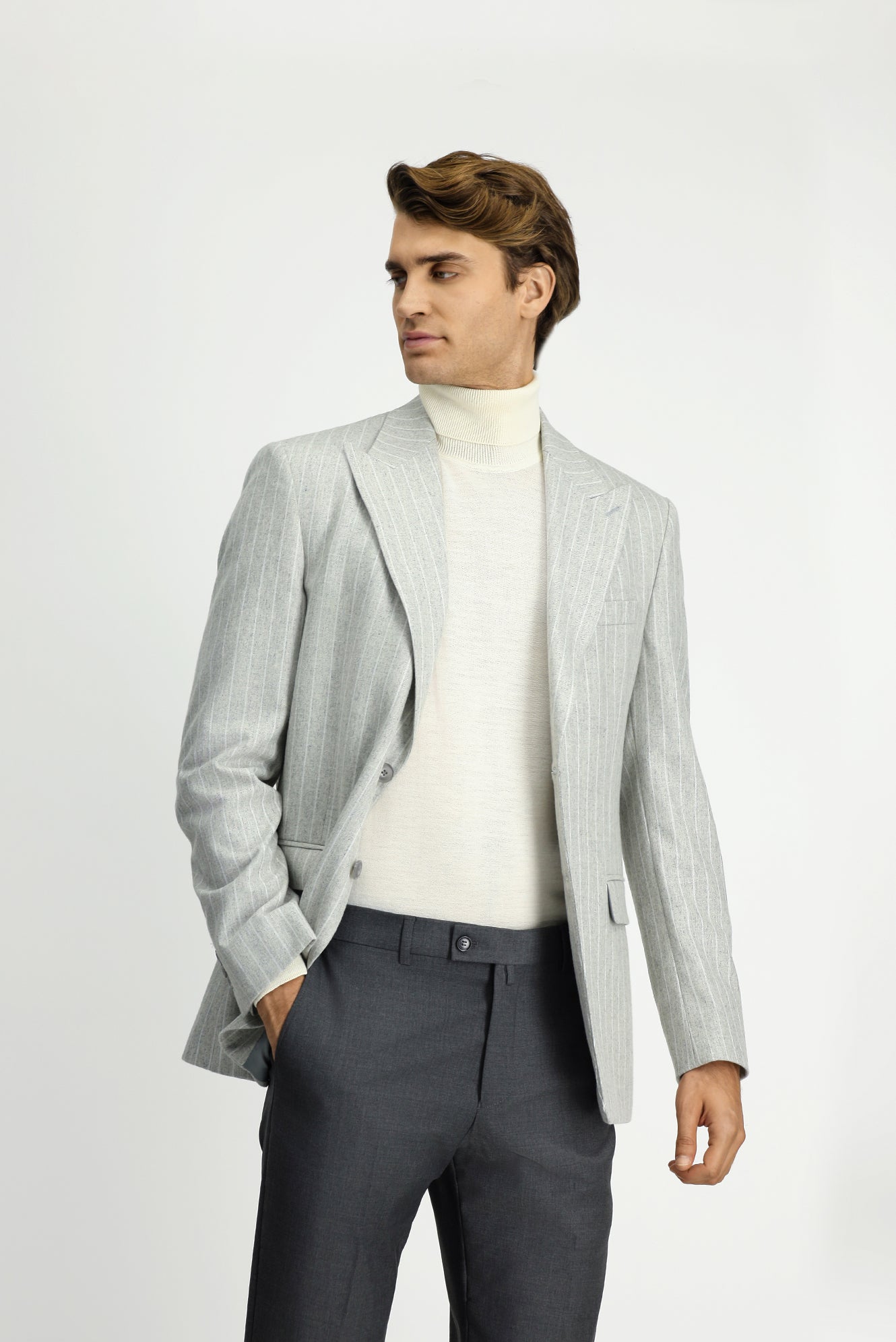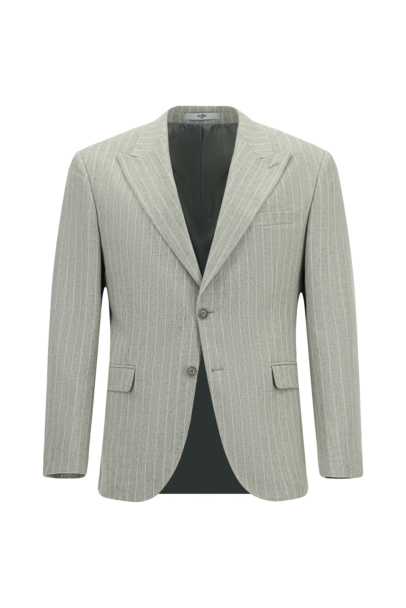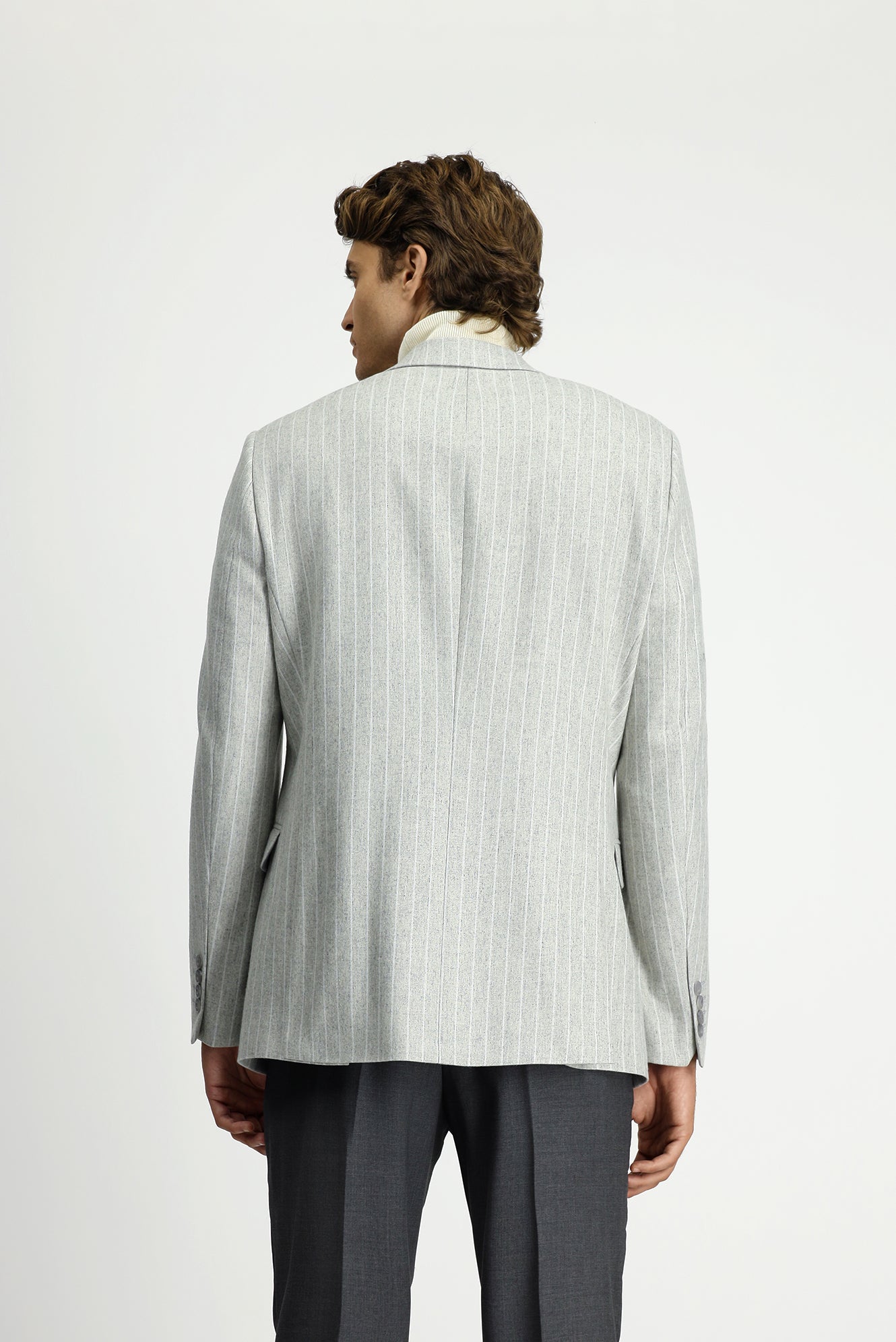 Açık Gri Regular Fit Çizgili Yünlü Klasik Ceket