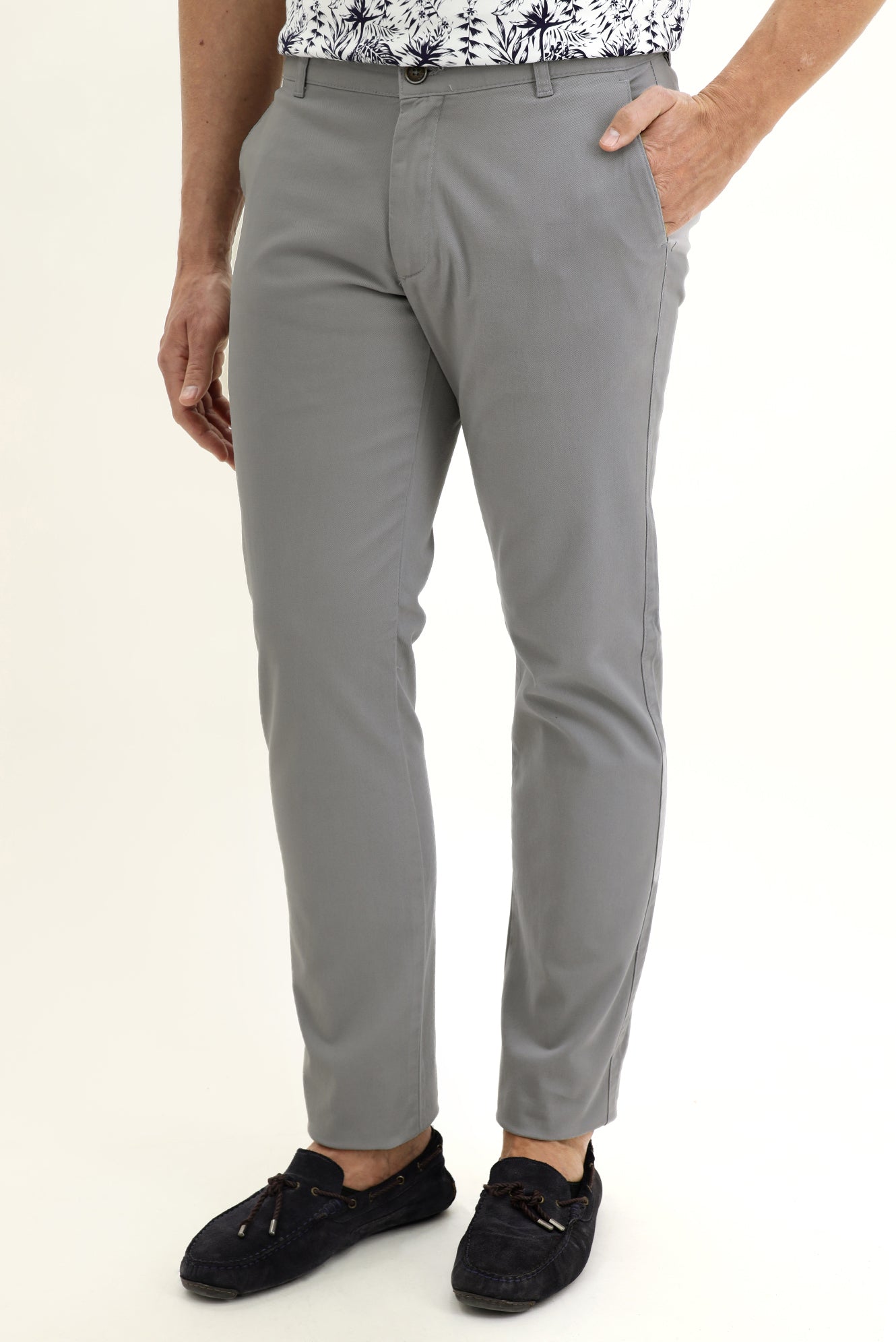 Açık Gri Relaxed Fit Rahat Kesim Likralı Kanvas / Chino Pantolon