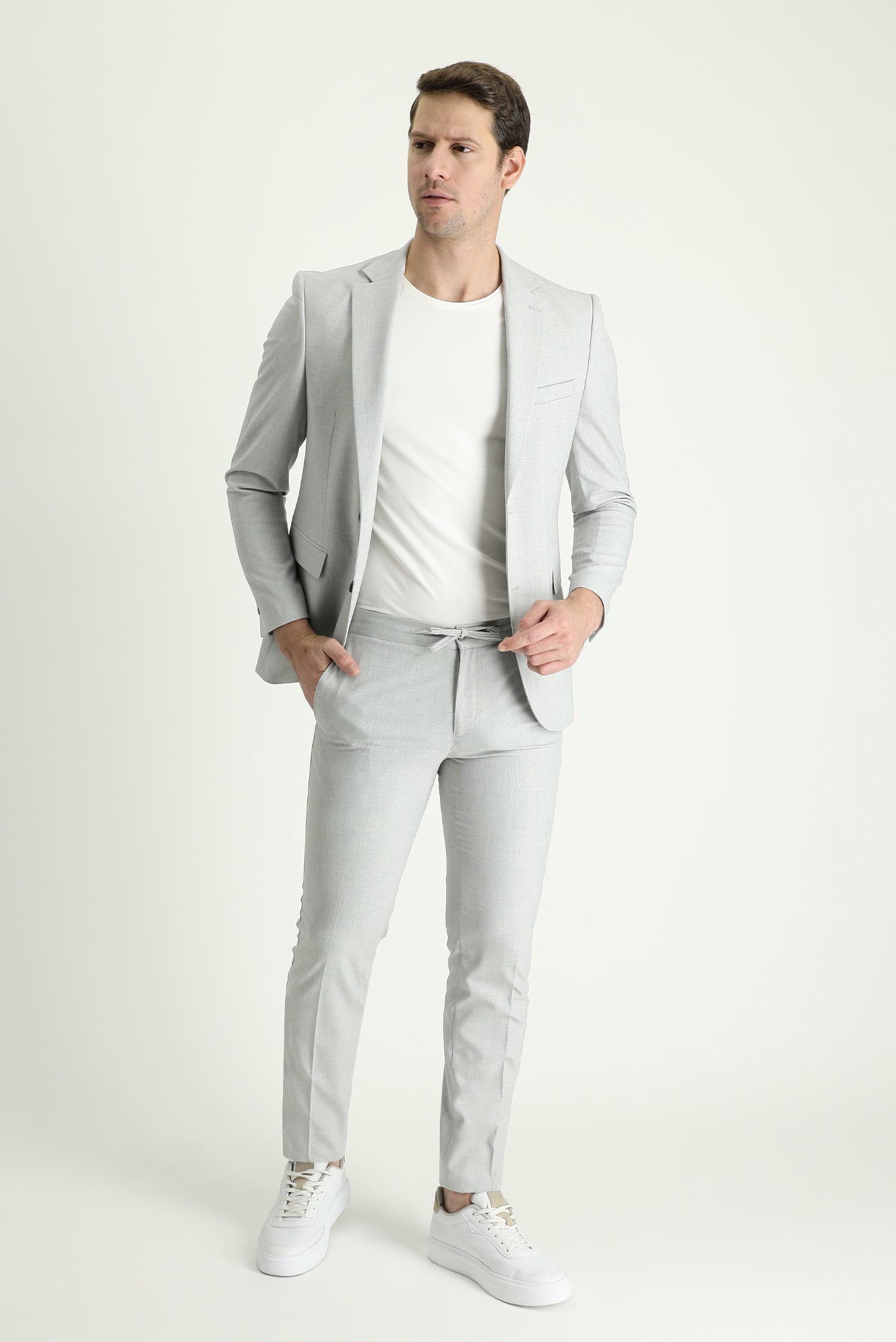 Açık Gri 7 Drop Slim Fit Dar Kesim Beli Lastikli İpli Takım Elbise